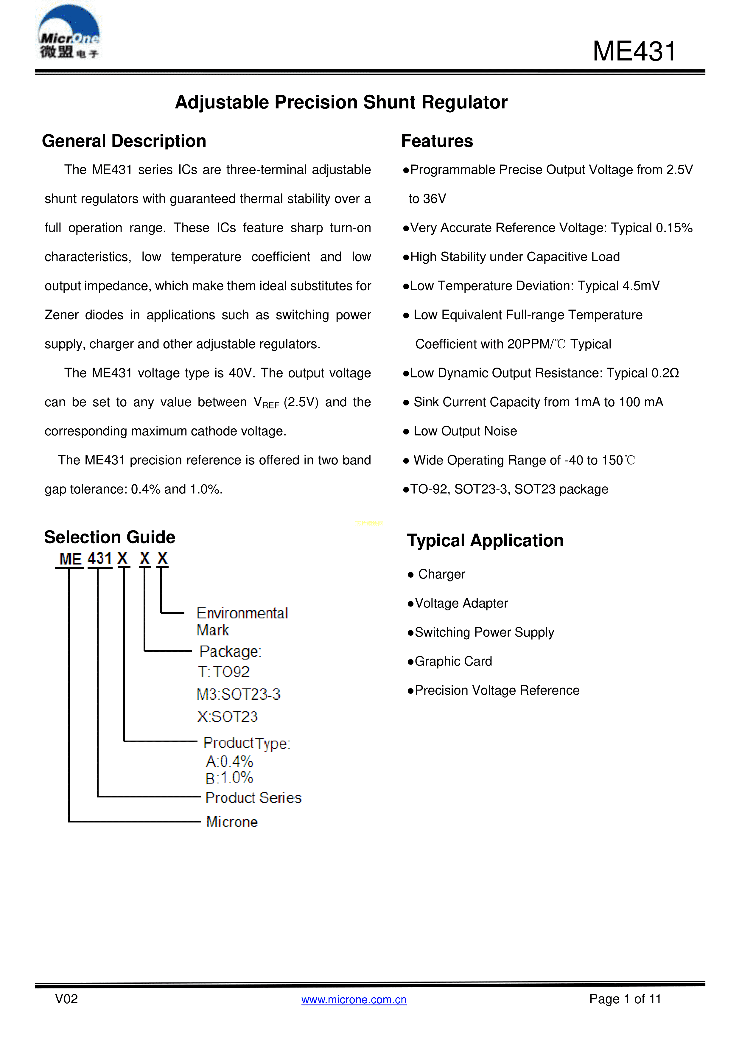 ME431ATG数据手册TO-92封装MICRONE(南京微盟)PDF规格书,中英文下载