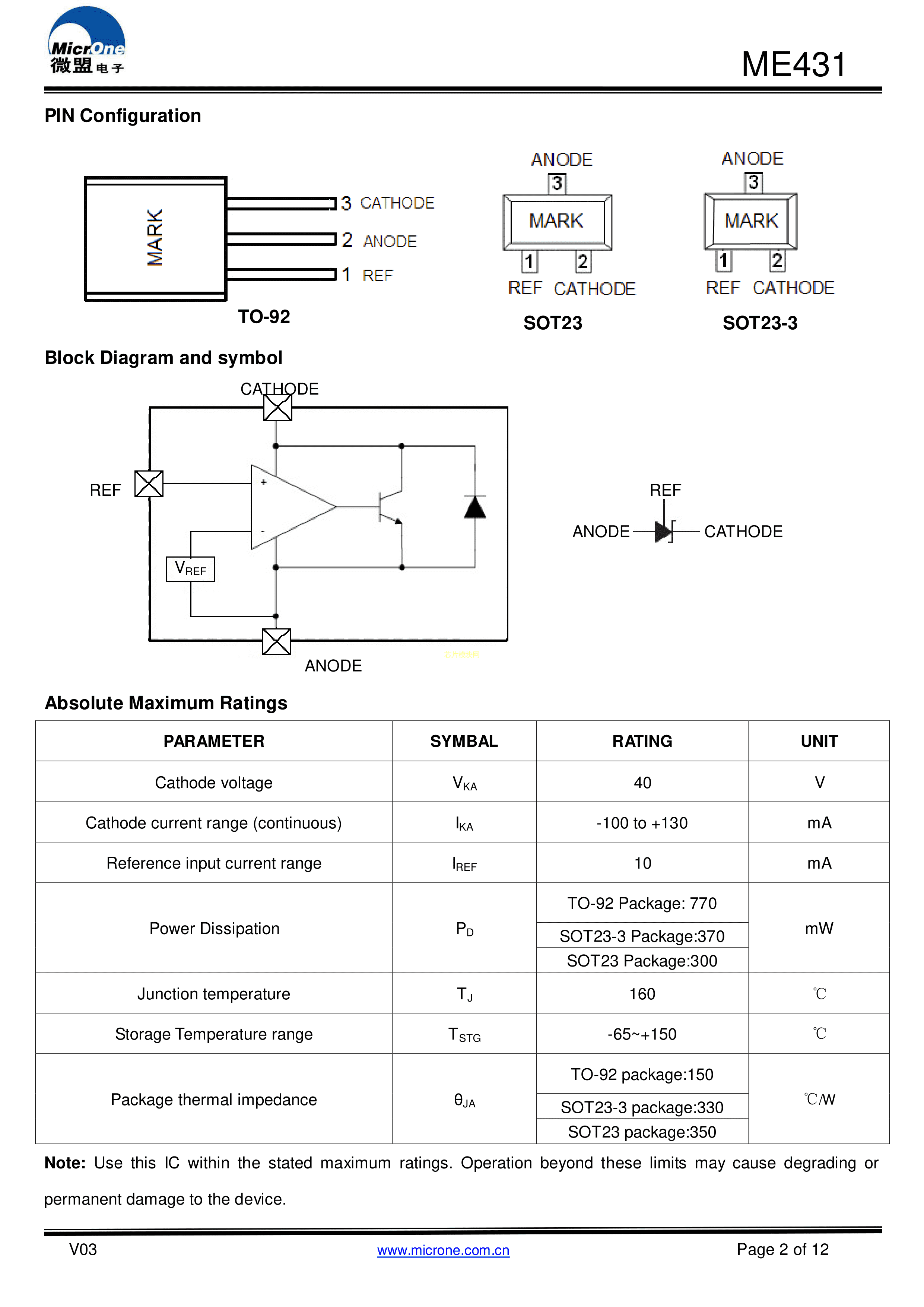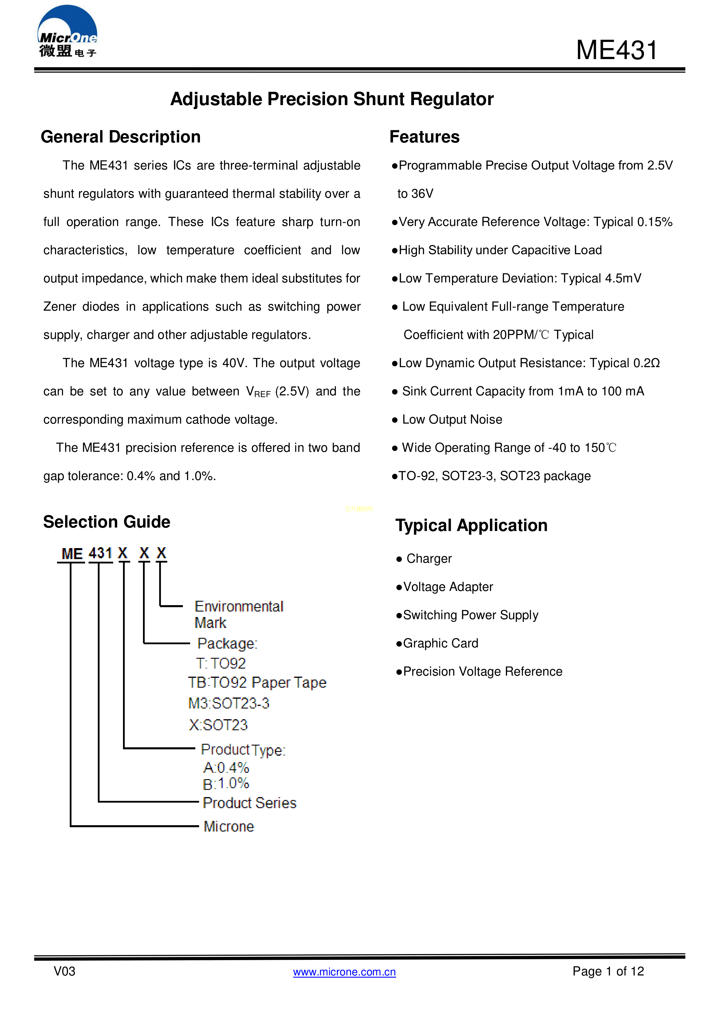ME431AXG数据手册SOT-23(SOT-23-3)封装MICRONE(南京微盟)PDF规格书,