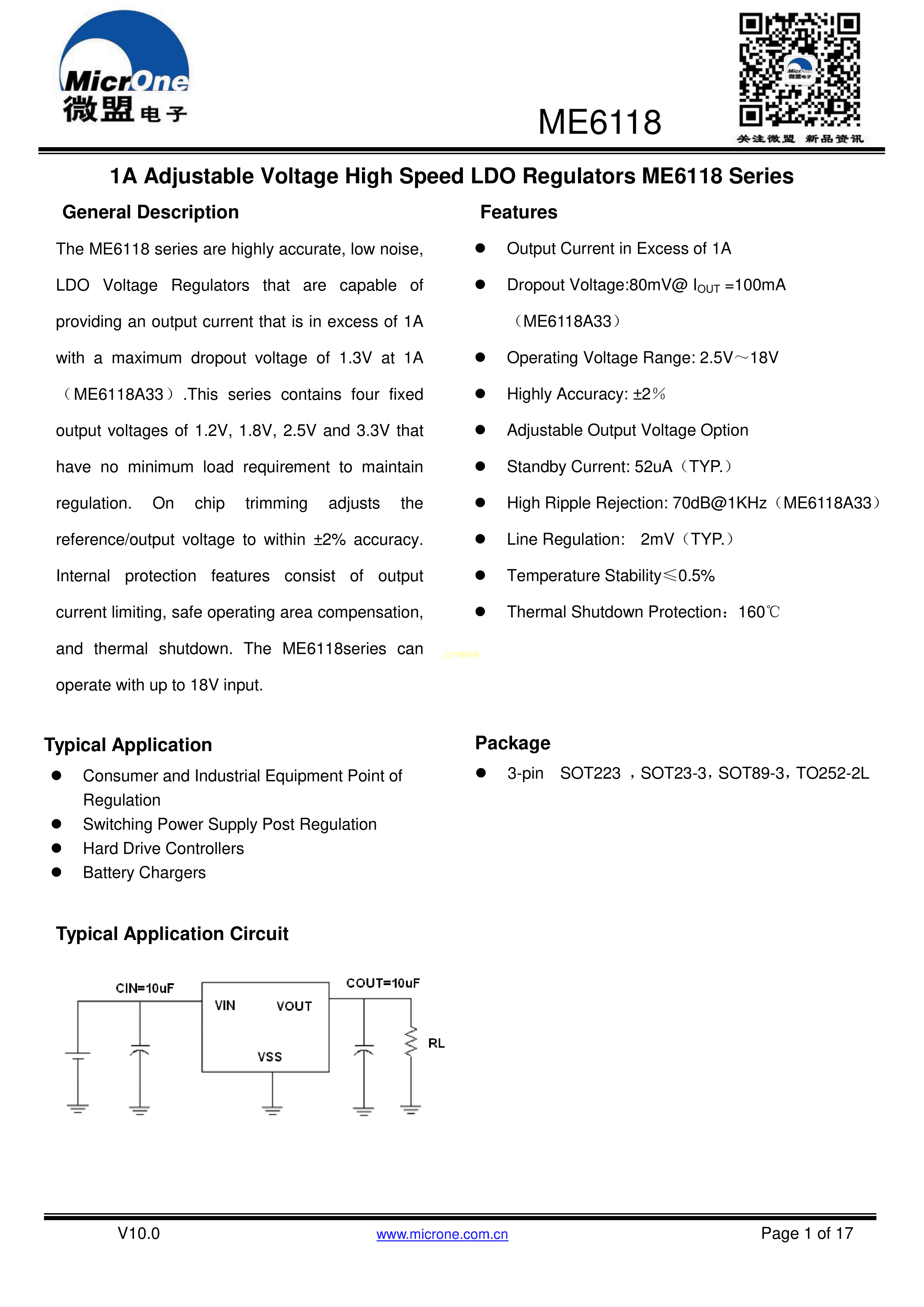 ME6118A12B3G数据手册SOT-223封装MICRONE(南京微盟)PDF规格书,中英文下载