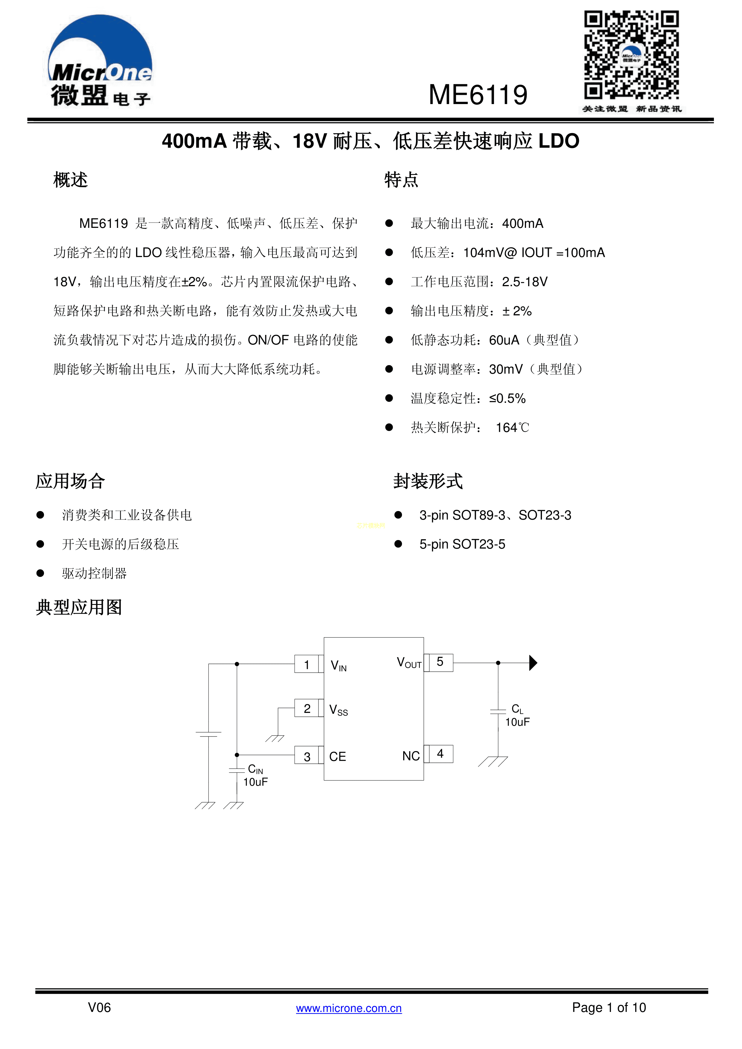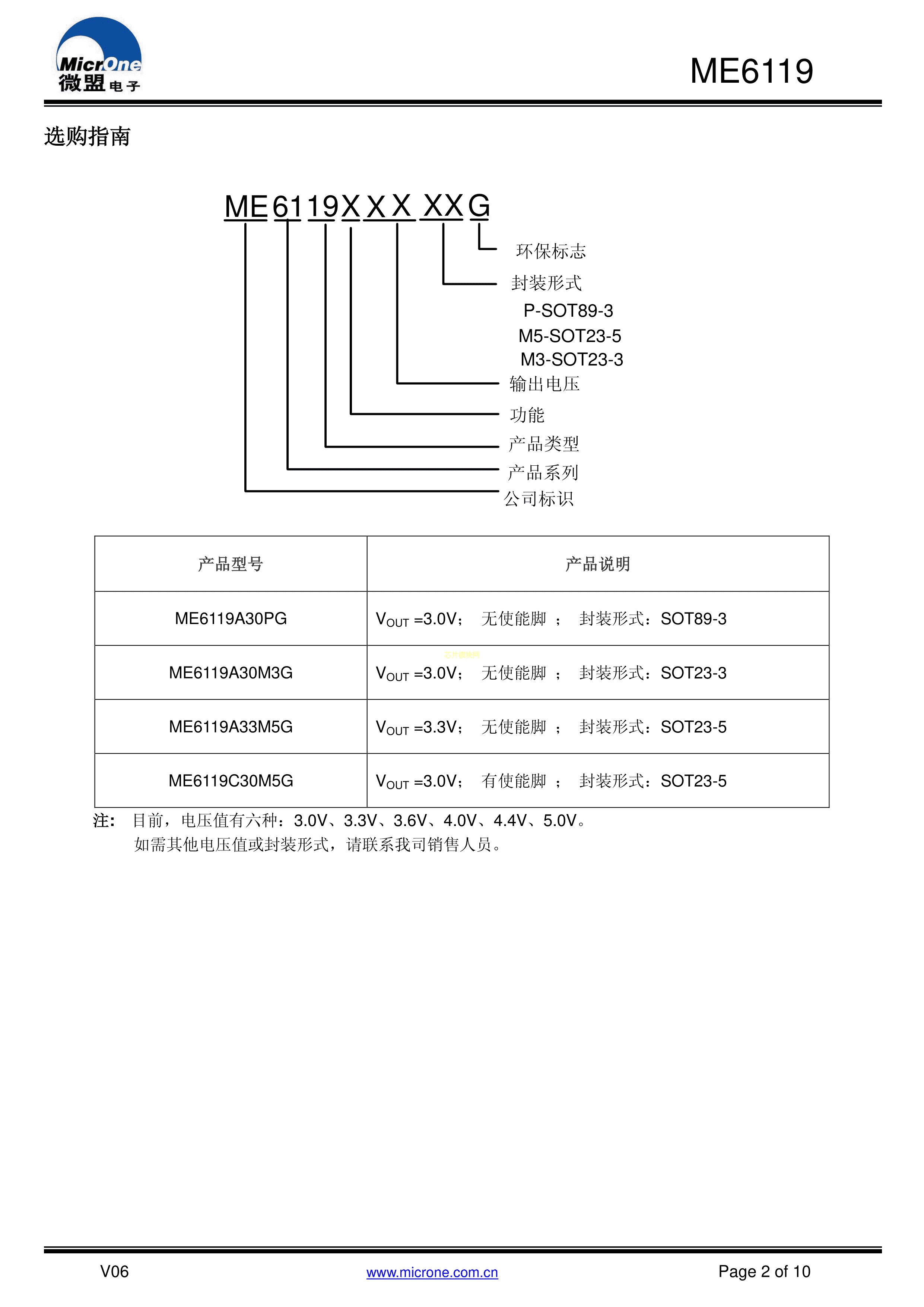 ME6119C50M5G数据手册SOT-23-5封装MICRONE(南京微盟)PDF规格书,中英文下载