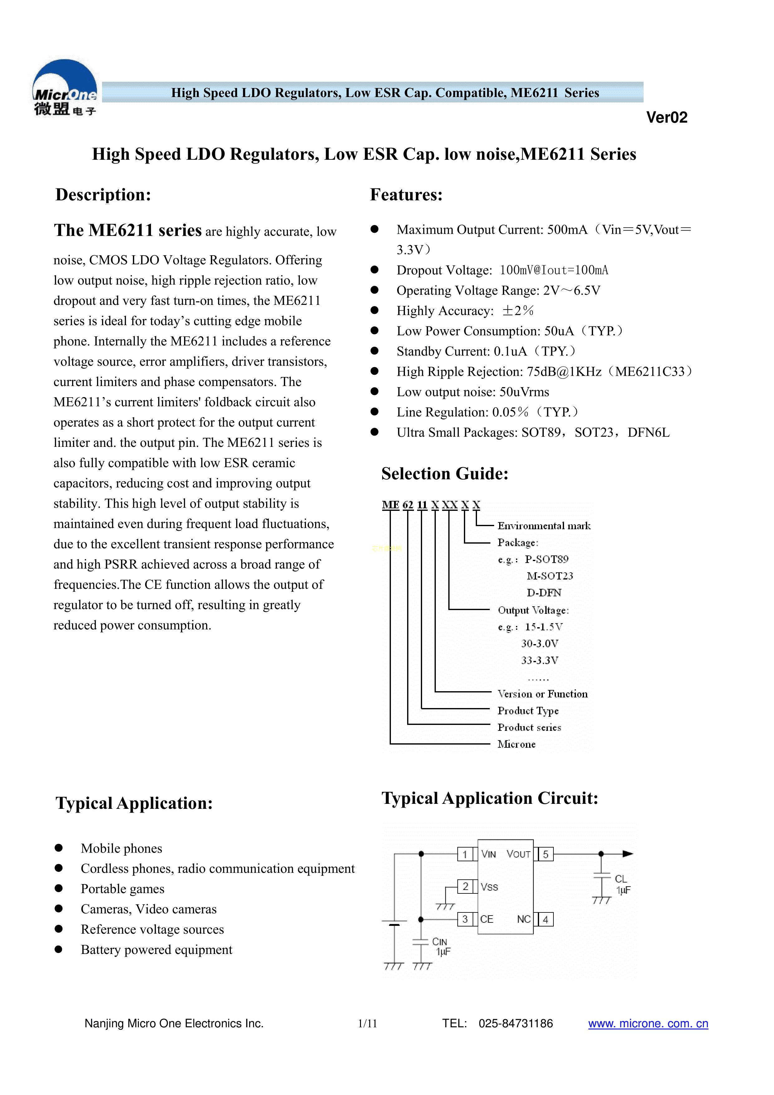 ME6211C25M5G数据手册SOT-23-5封装MICRONE(南京微盟)PDF规格书,中英文下载