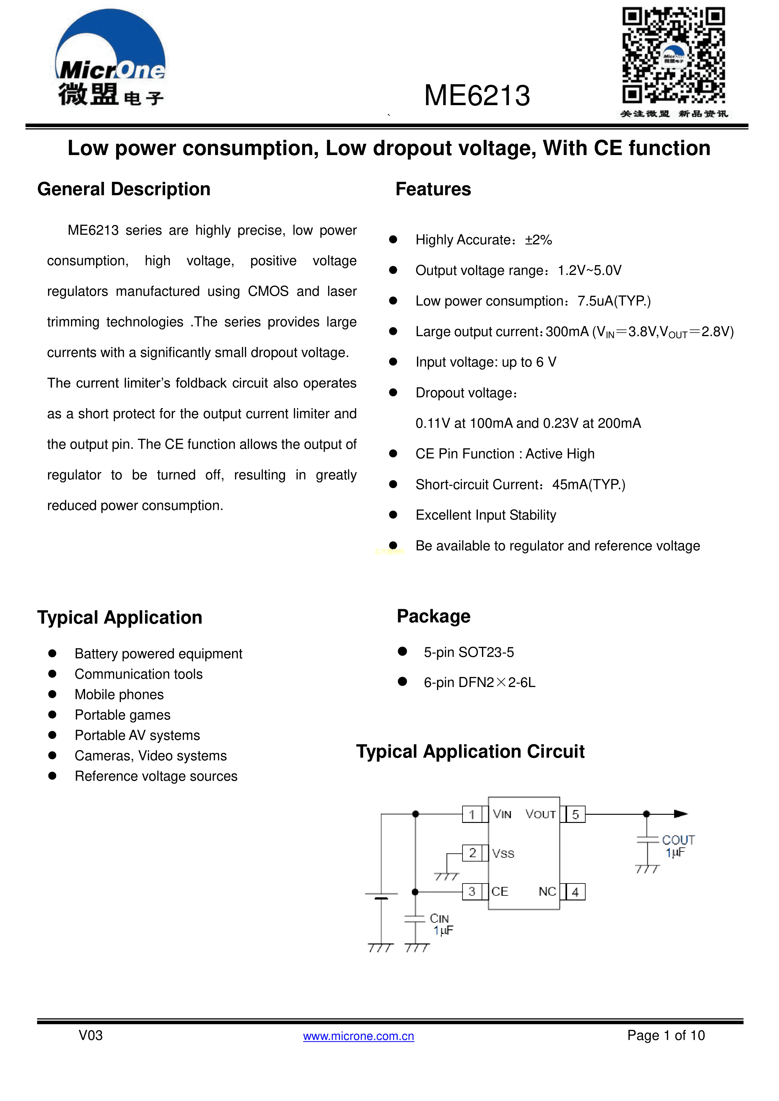ME6213C33N6AG数据手册DFN22-6封装MICRONE(南京微盟)PDF规格书,中英文下