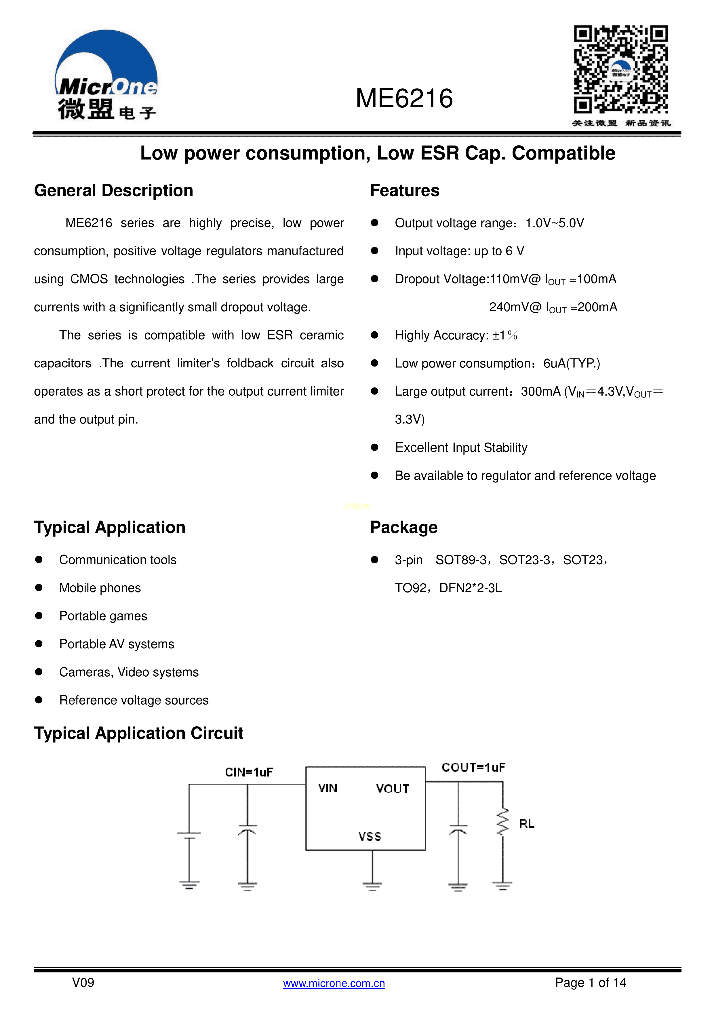 ME6216A36M3G数据手册SOT-23-3封装MICRONE(南京微盟)PDF规格书,中英文下载