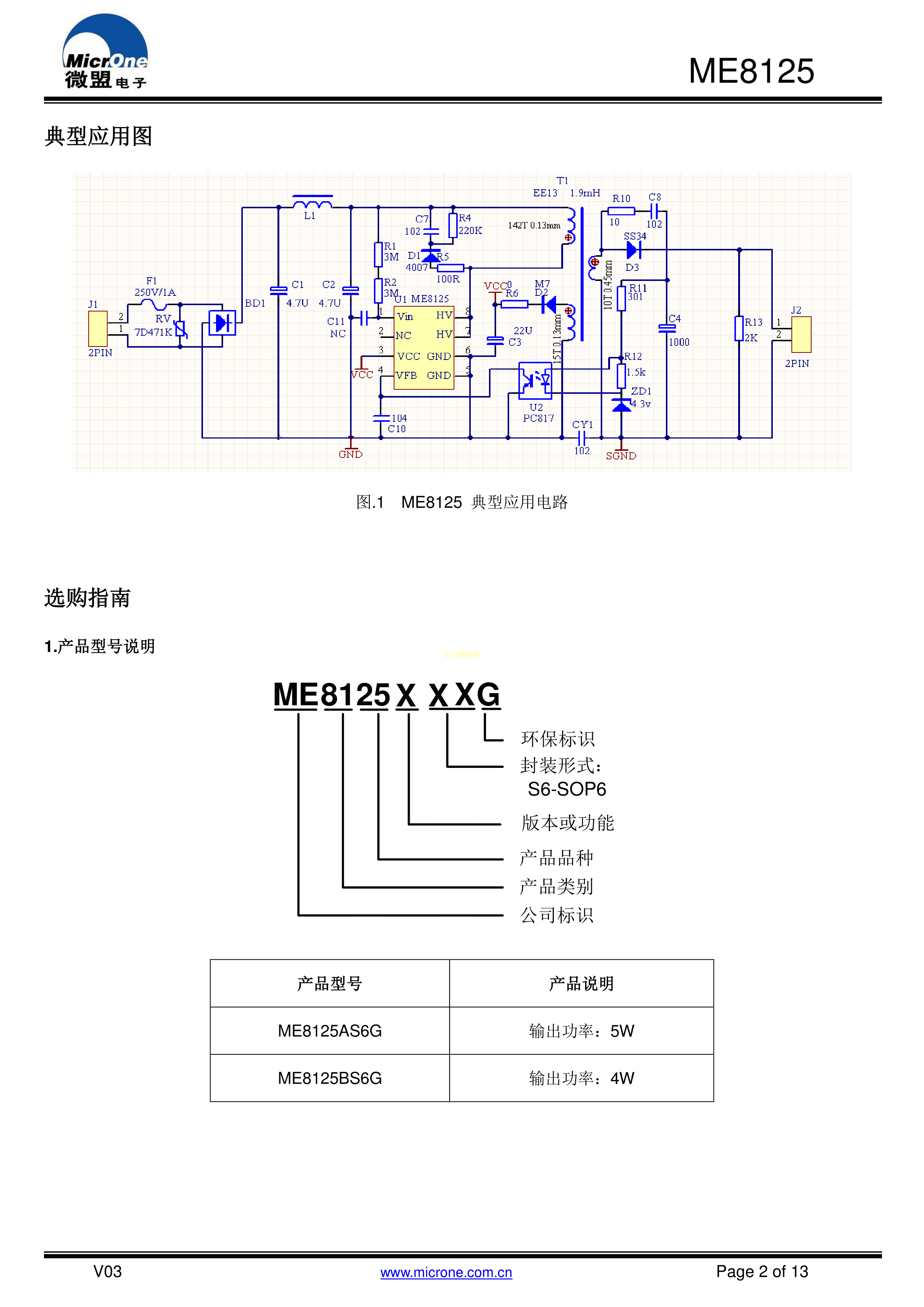 ME8125AS6G数据手册SOP-6封装MICRONE(南京微盟)PDF规格书,中英文下载