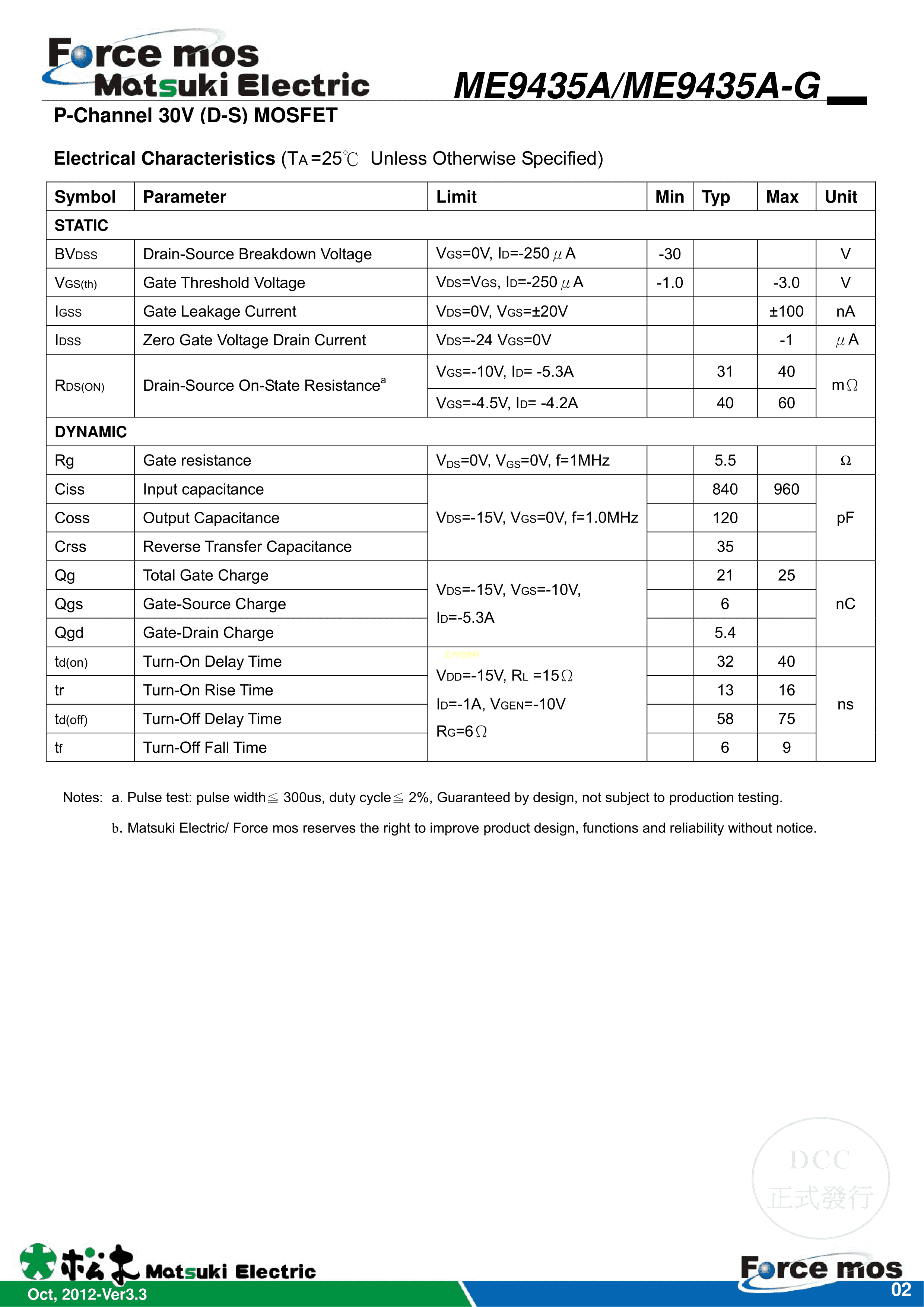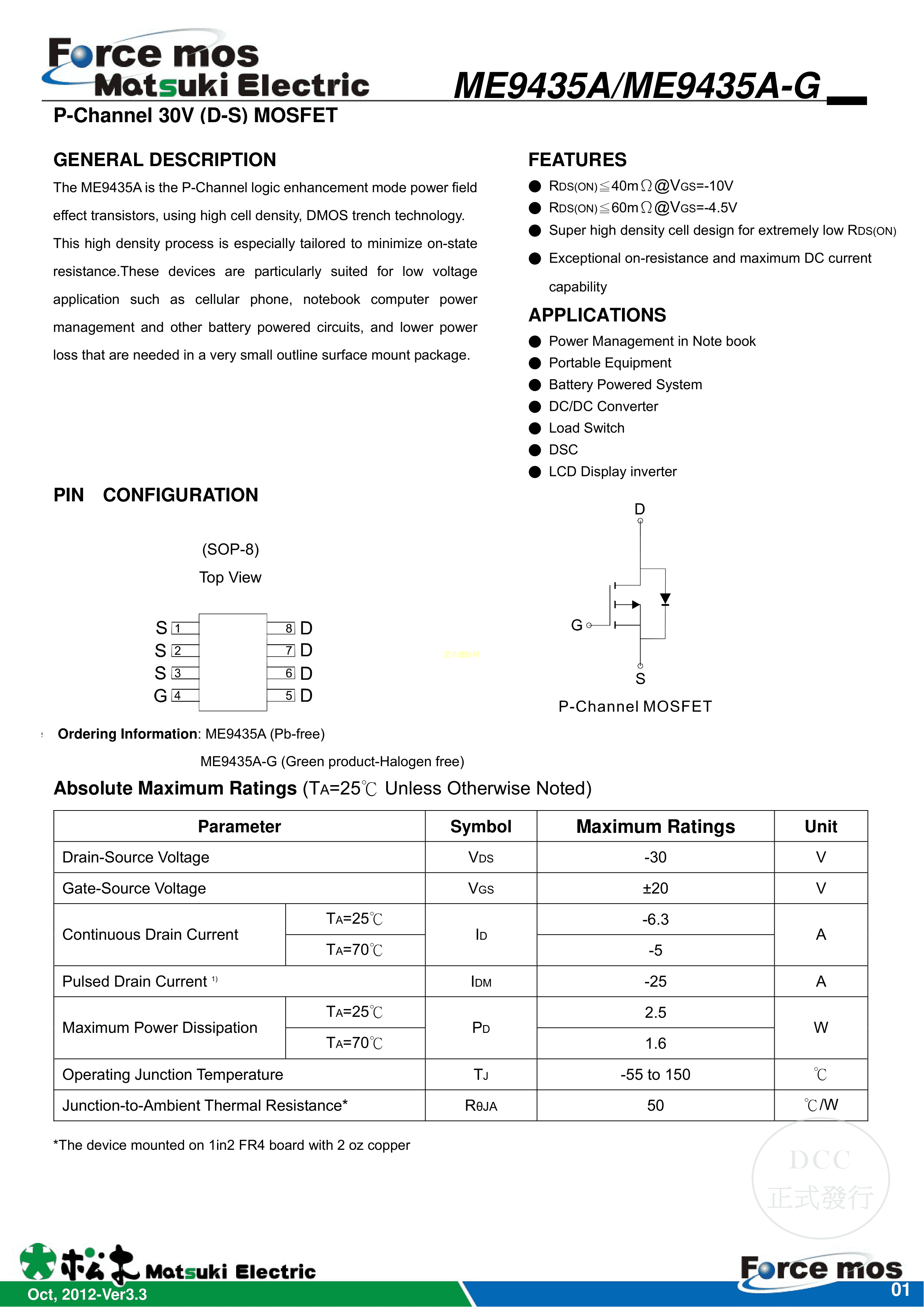 ME9435A数据手册SOP-8封装MATSUKI(松木)PDF规格书,中英文下载