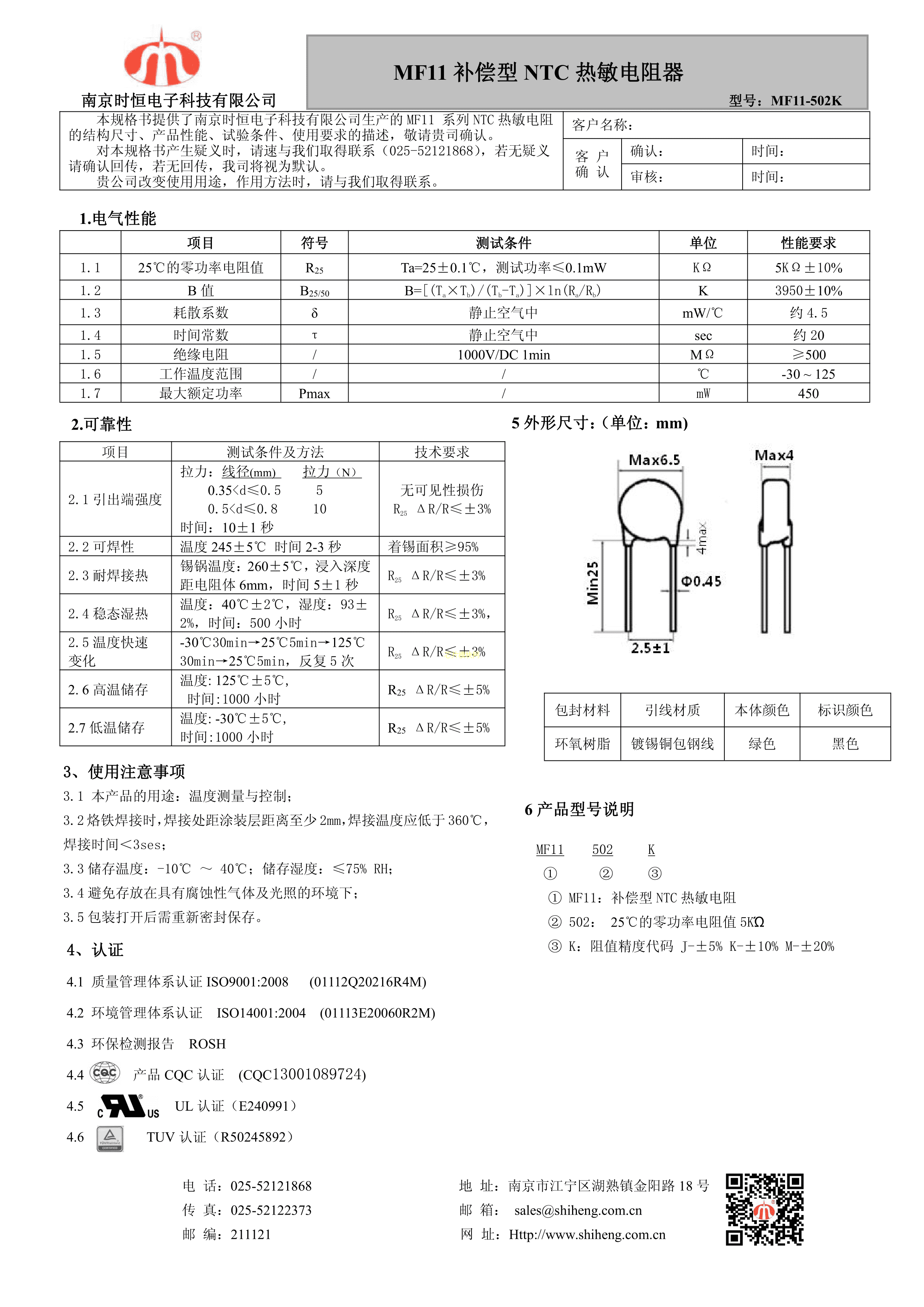 MF11502K数据手册径向引线P2.5mm封装时恒PDF规格书,中英文下载