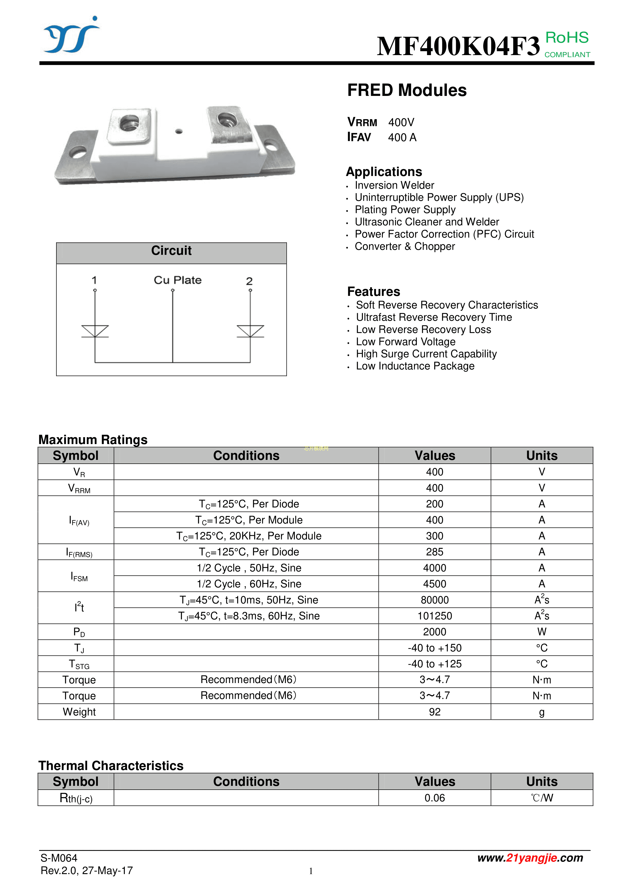 MF400K04F3数据手册F3封装YANGJIE(扬杰)PDF规格书,中英文下载