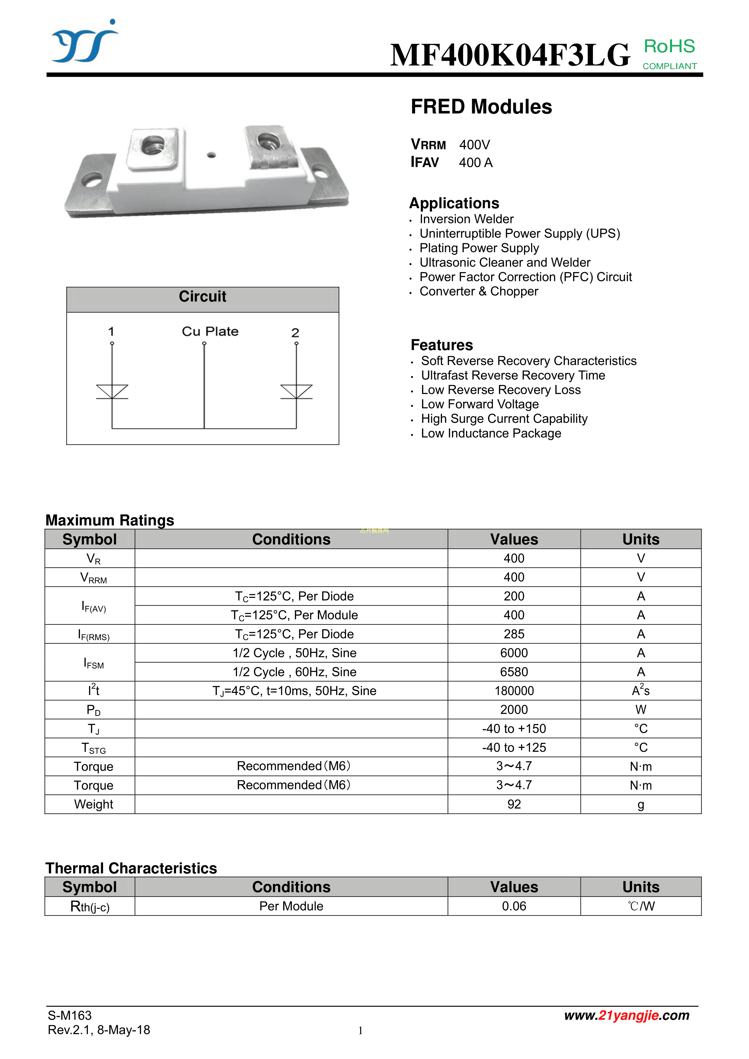 MF400K04F3LG数据手册F3封装YANGJIE(扬杰)PDF规格书,中英文下载