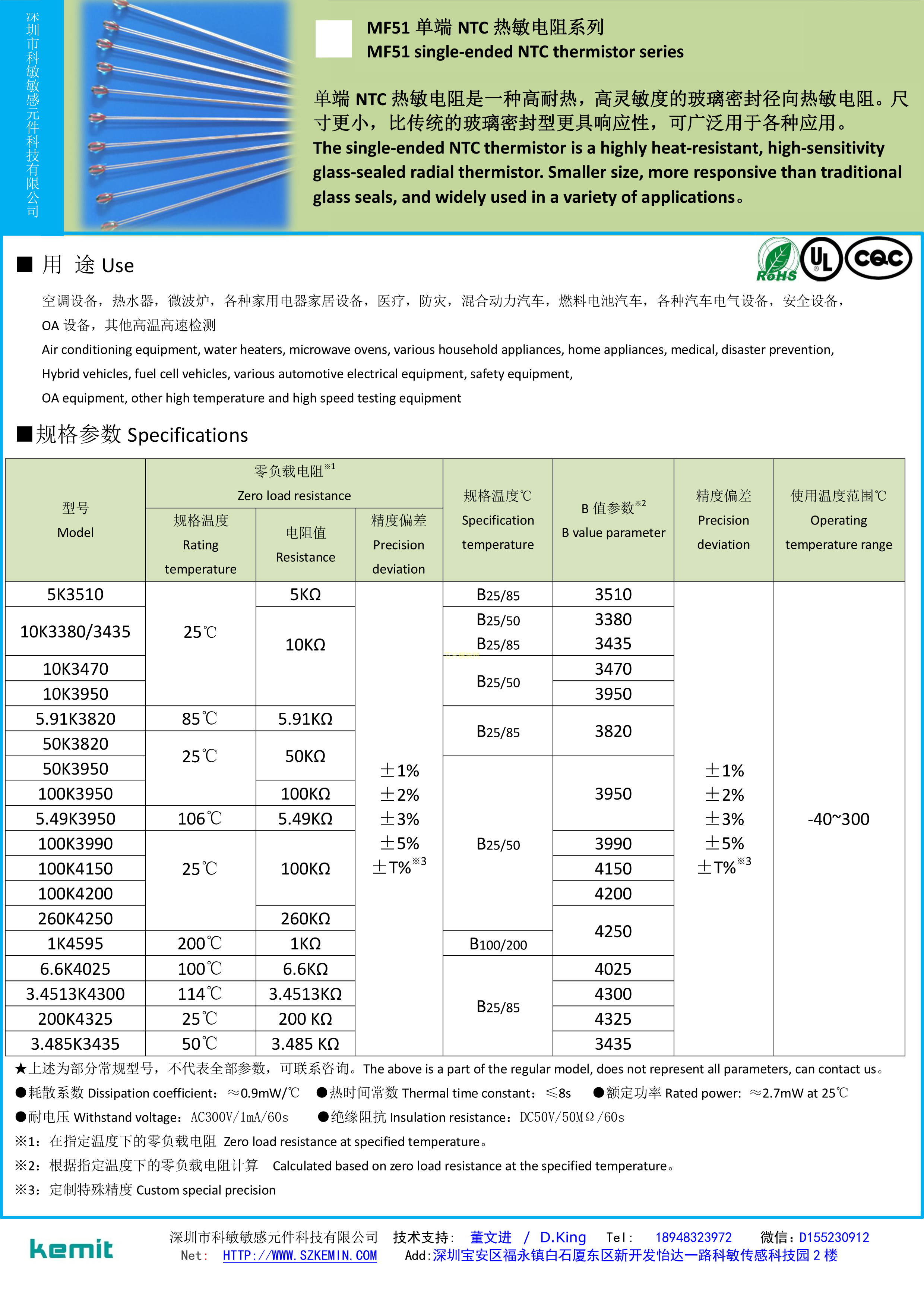 MF51-260KF4250-B1数据手册-封装Kemit(科敏)PDF规格书,中英文下载