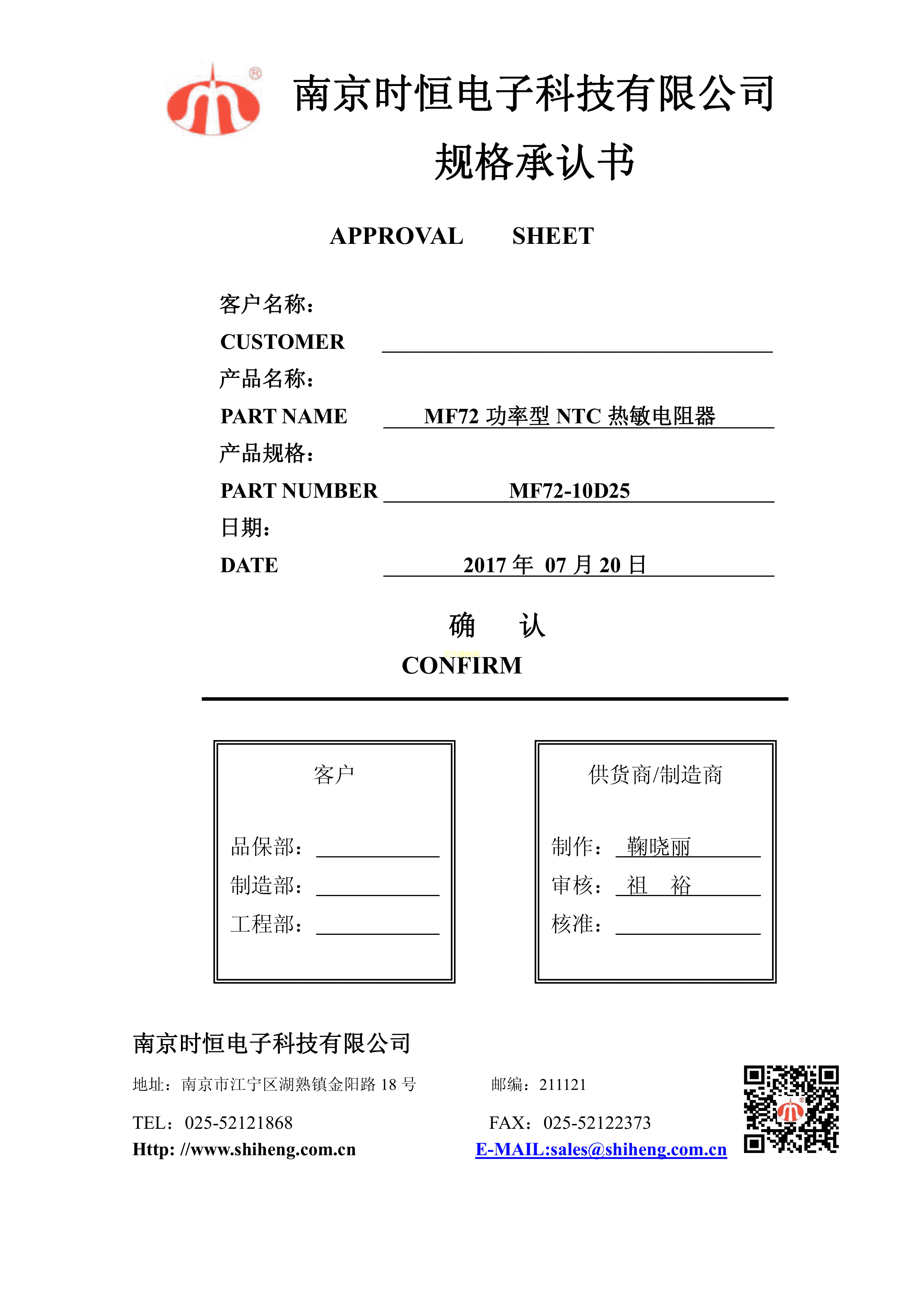 MF7210D25数据手册径向引线P10mm封装时恒PDF规格书,中英文下载