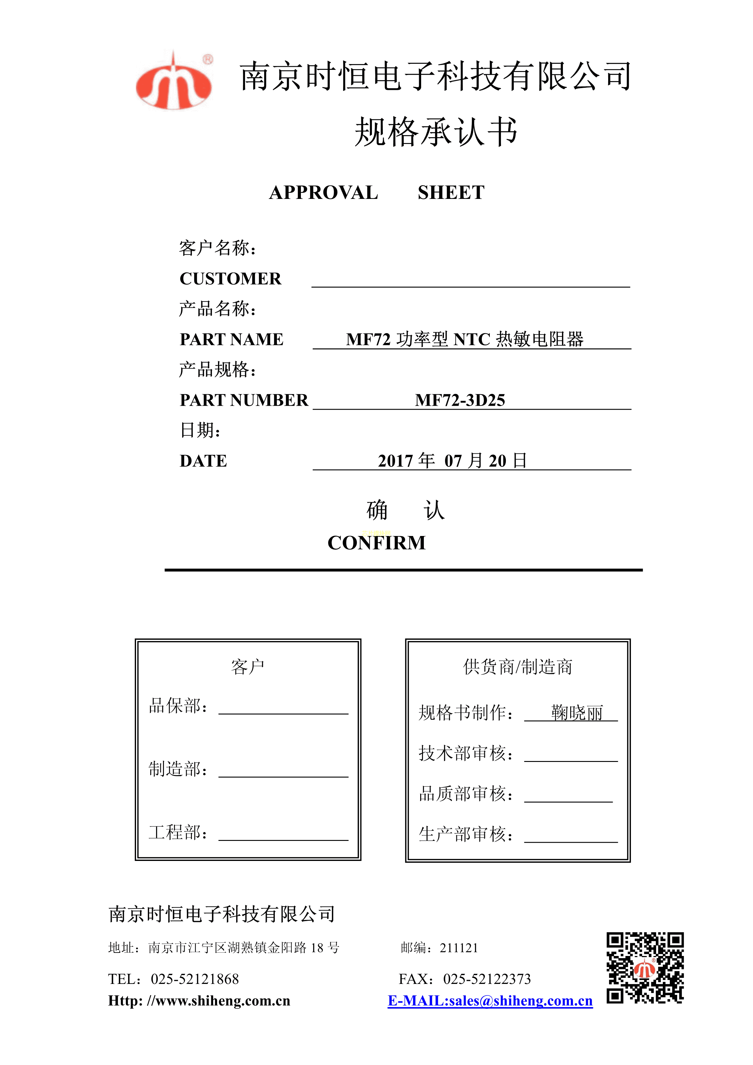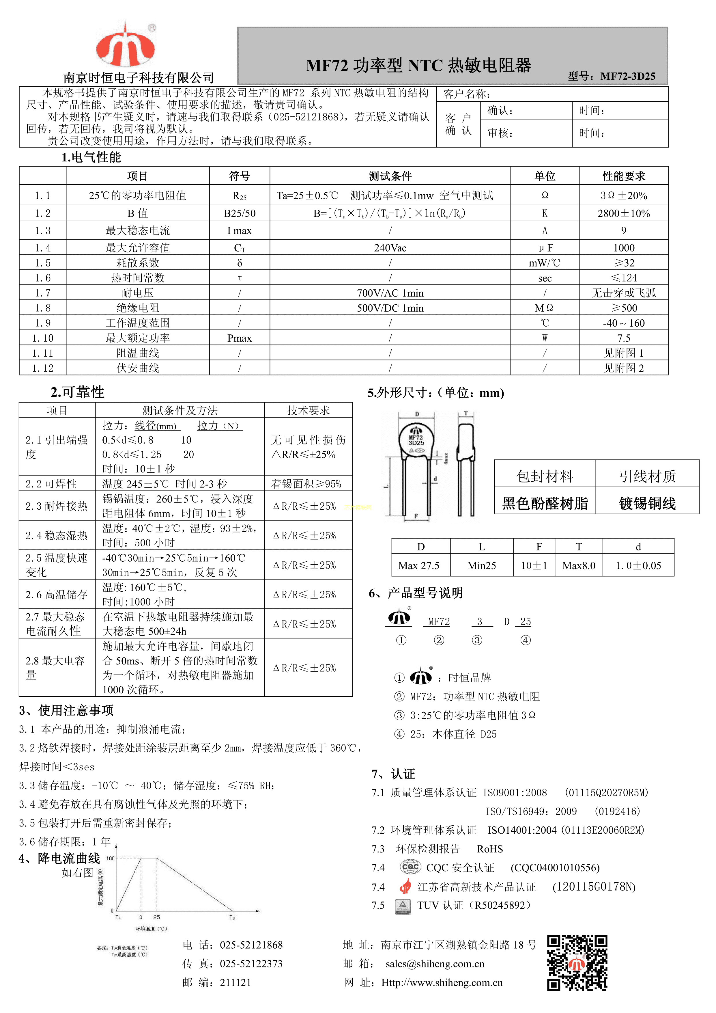 MF723D25数据手册径向引线P10mm封装时恒PDF规格书,中英文下载