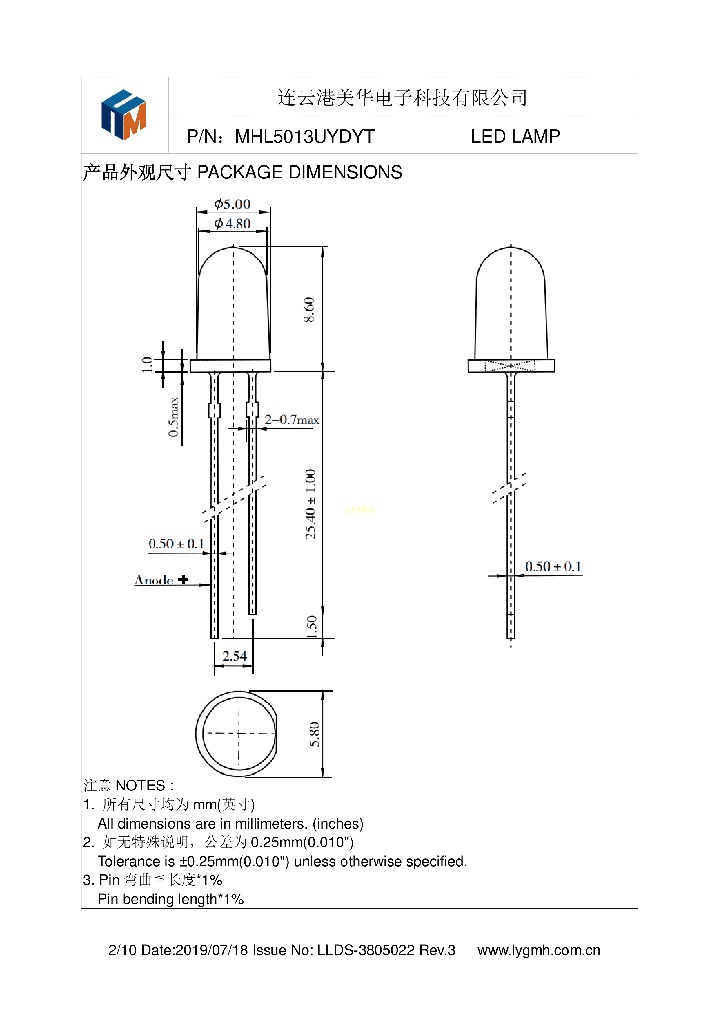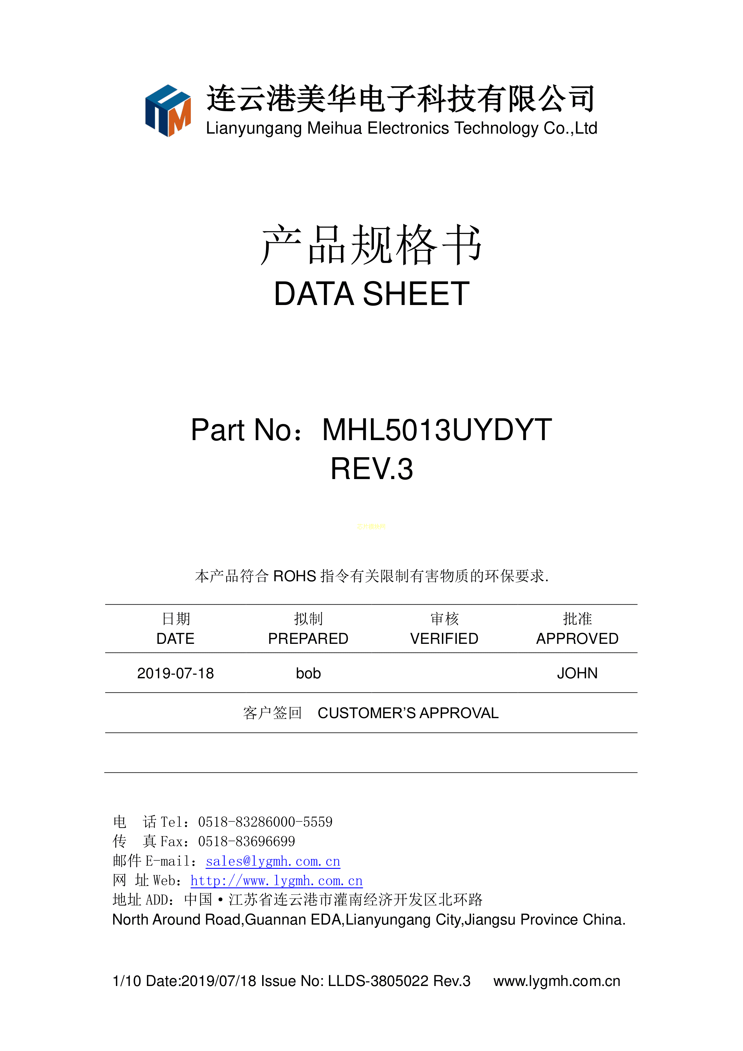 MHL5013UYDYT数据手册插件φ5mm封装MEIHUA(美华)PDF规格书,中英文下载