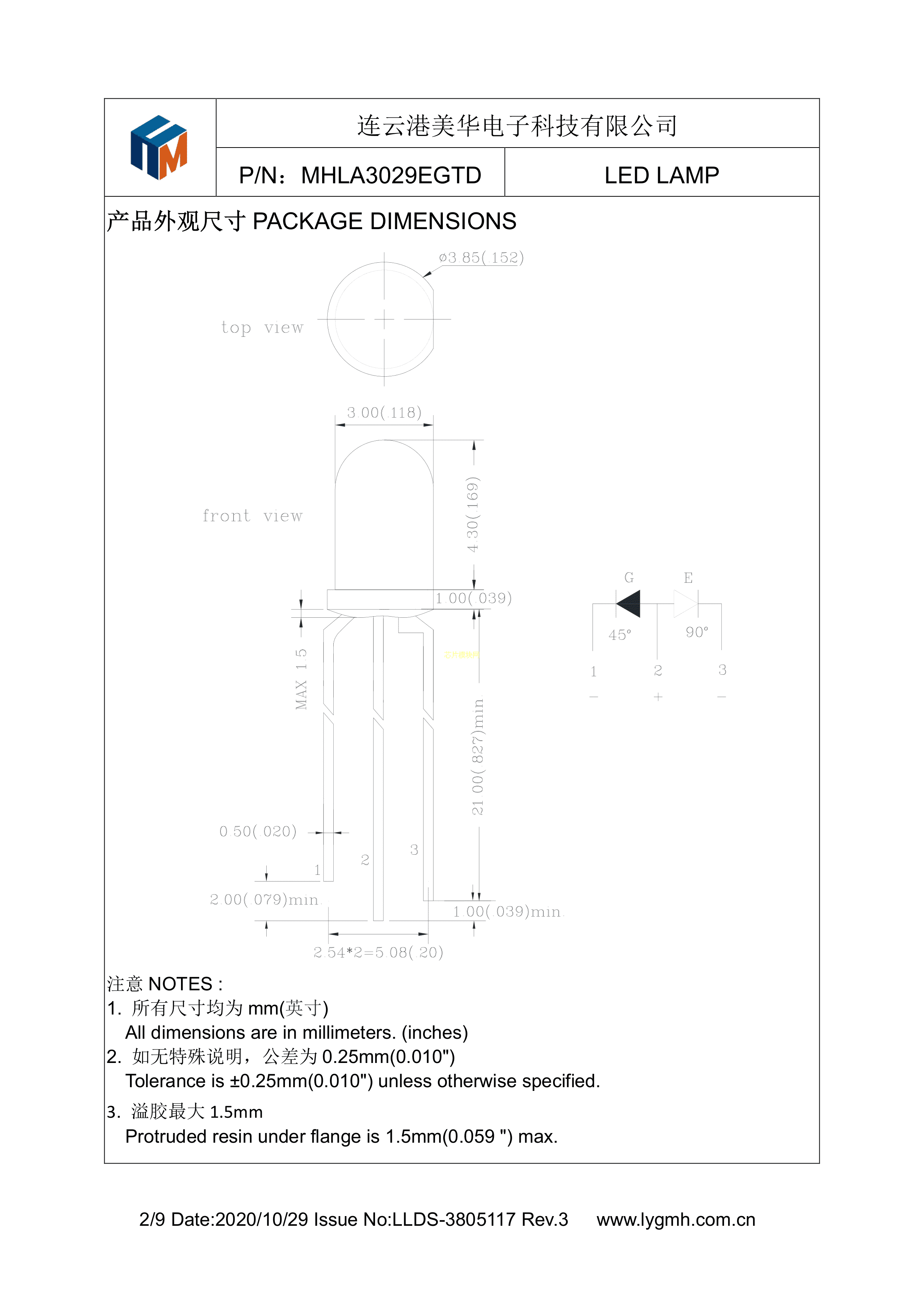 MHLA3029EGTD数据手册插件φ3mm封装MEIHUA(美华)PDF规格书,中英文下载