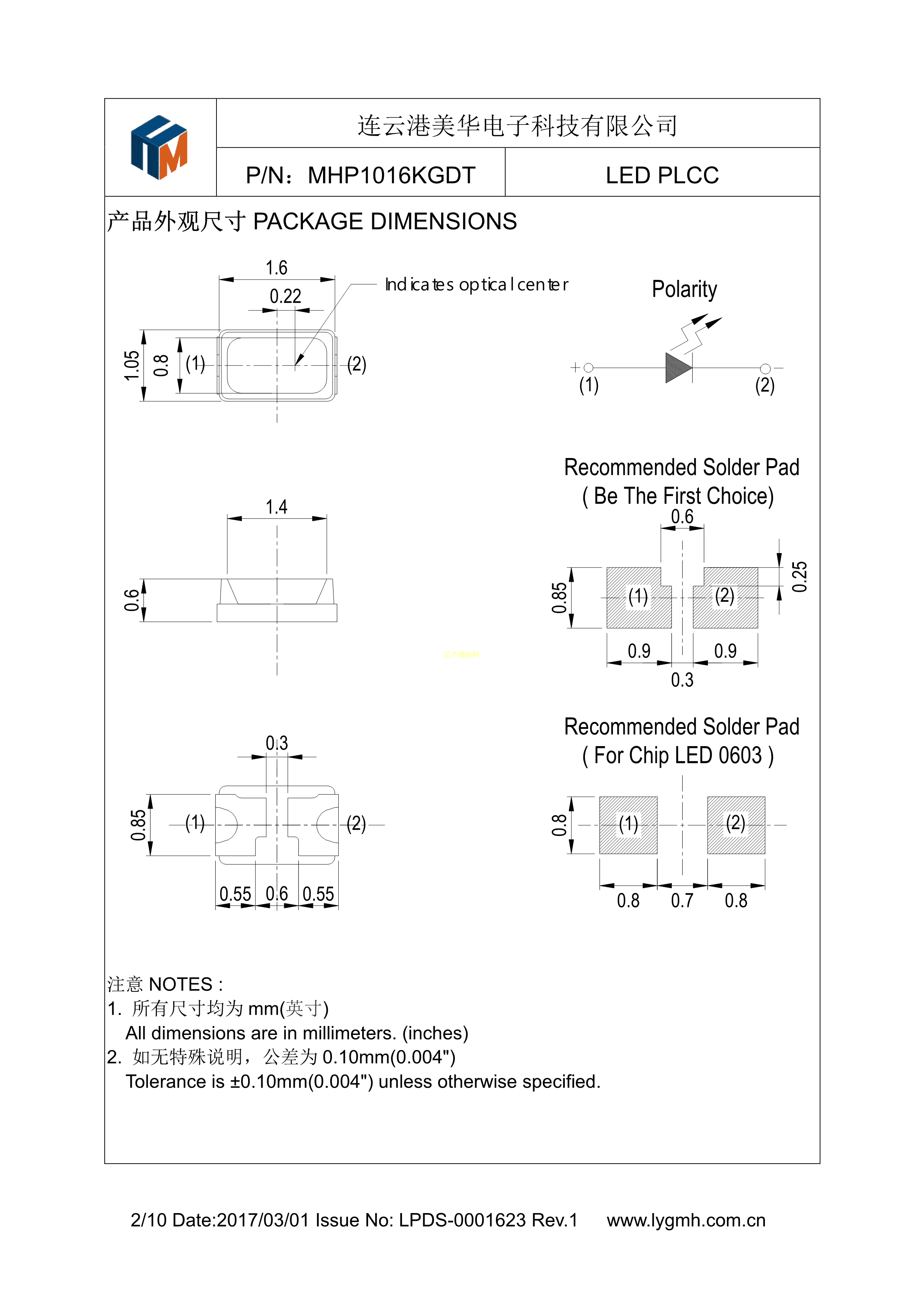 MHP1016KGDT数据手册SMD1.6x1.05x0.6mm封装MEIHUA(美华)PDF规格书