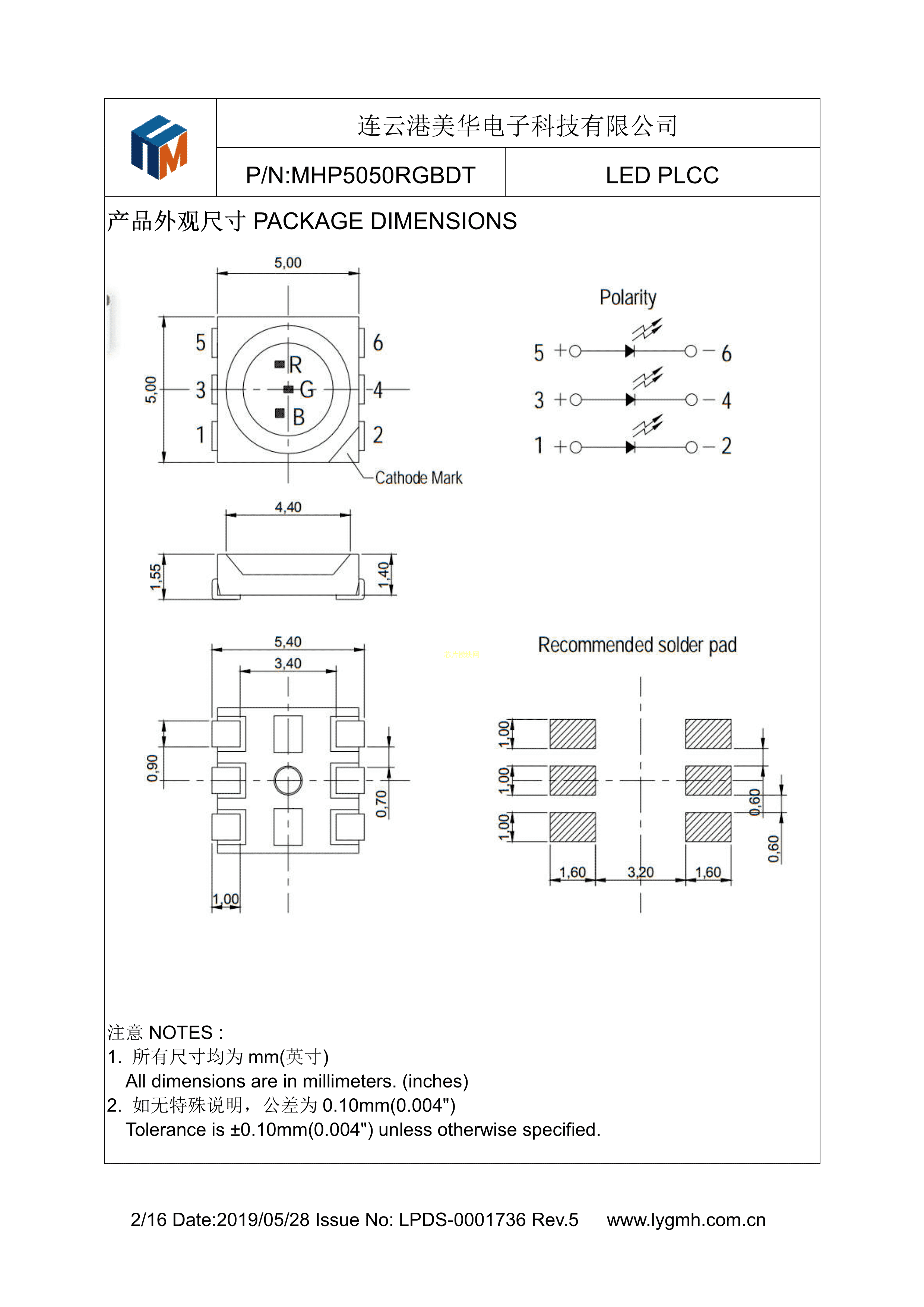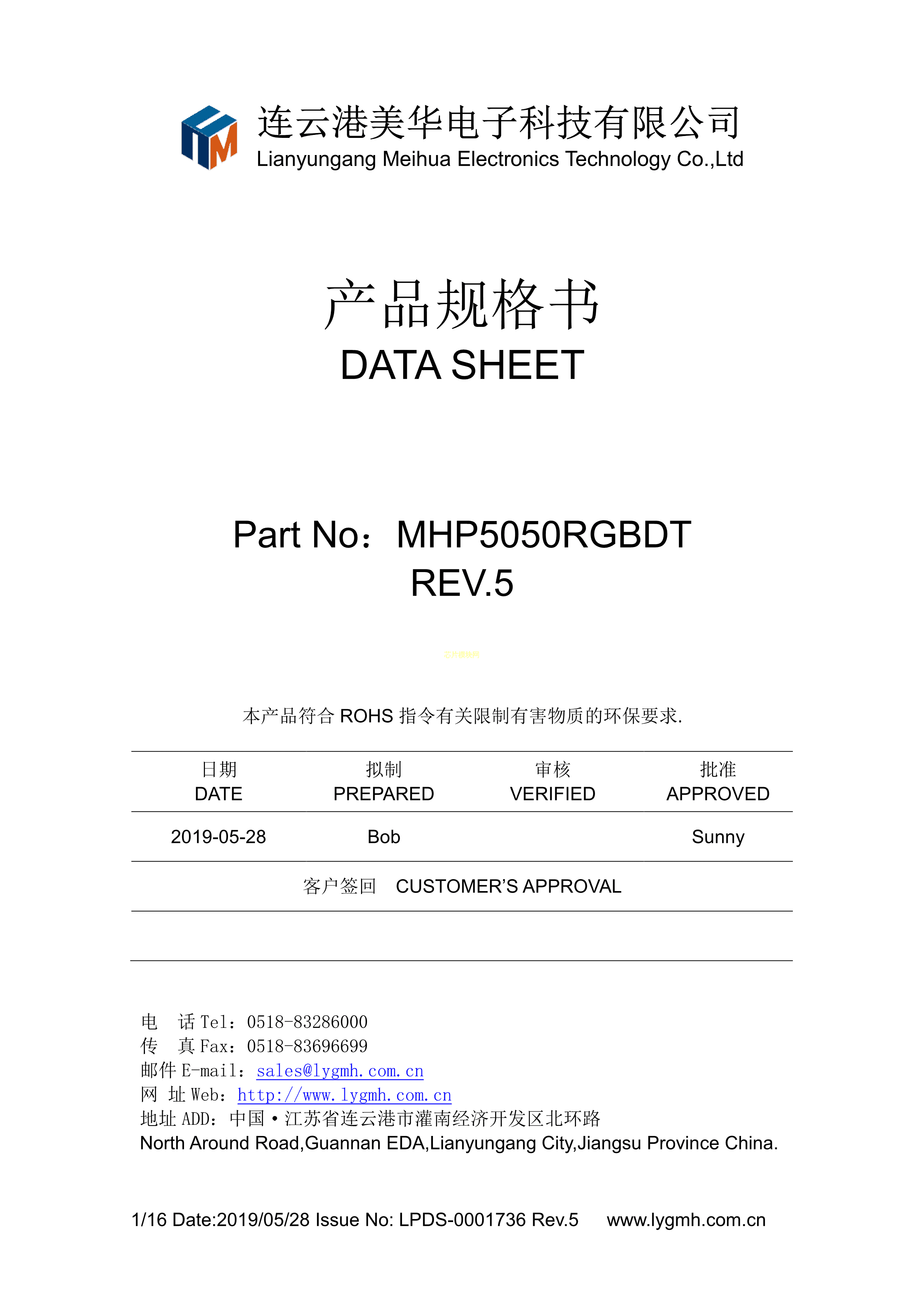 MHP5050RGBDT数据手册SMD5x5x1mm封装MEIHUA(美华)PDF规格书,中英文下载