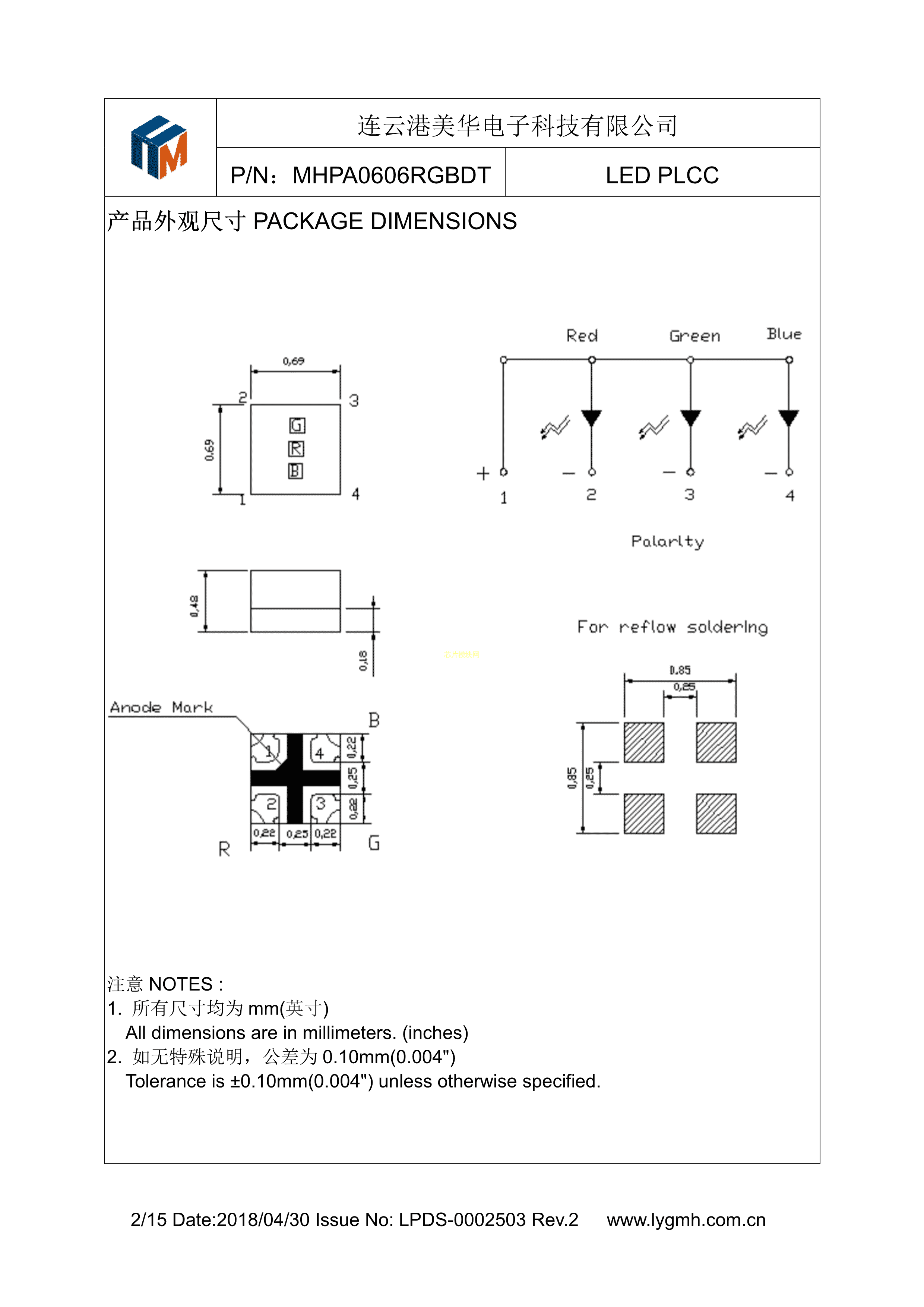 MHPA0606RGBDT数据手册SMD0.69x0.69x0.48mm封装MEIHUA(美华)PD