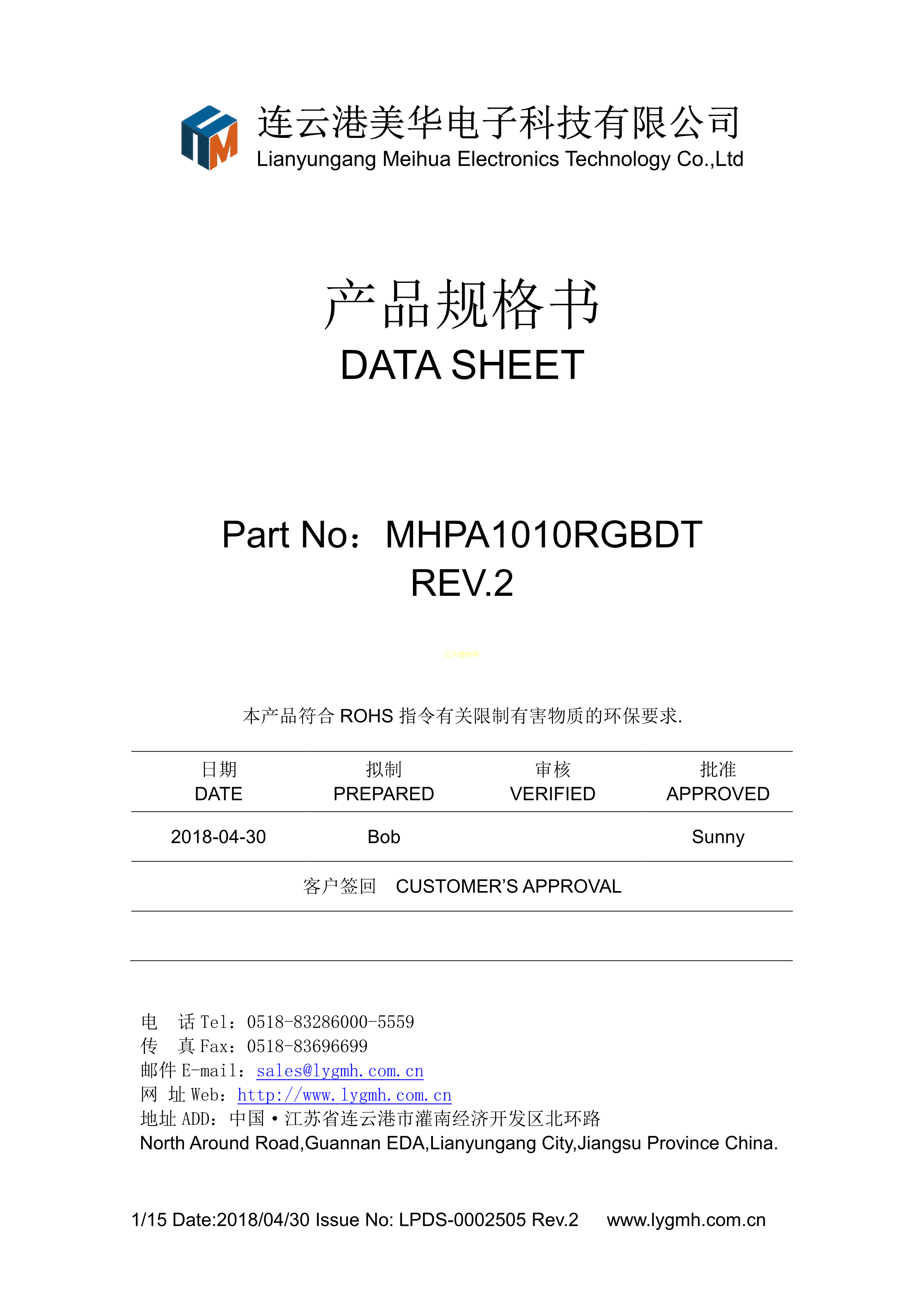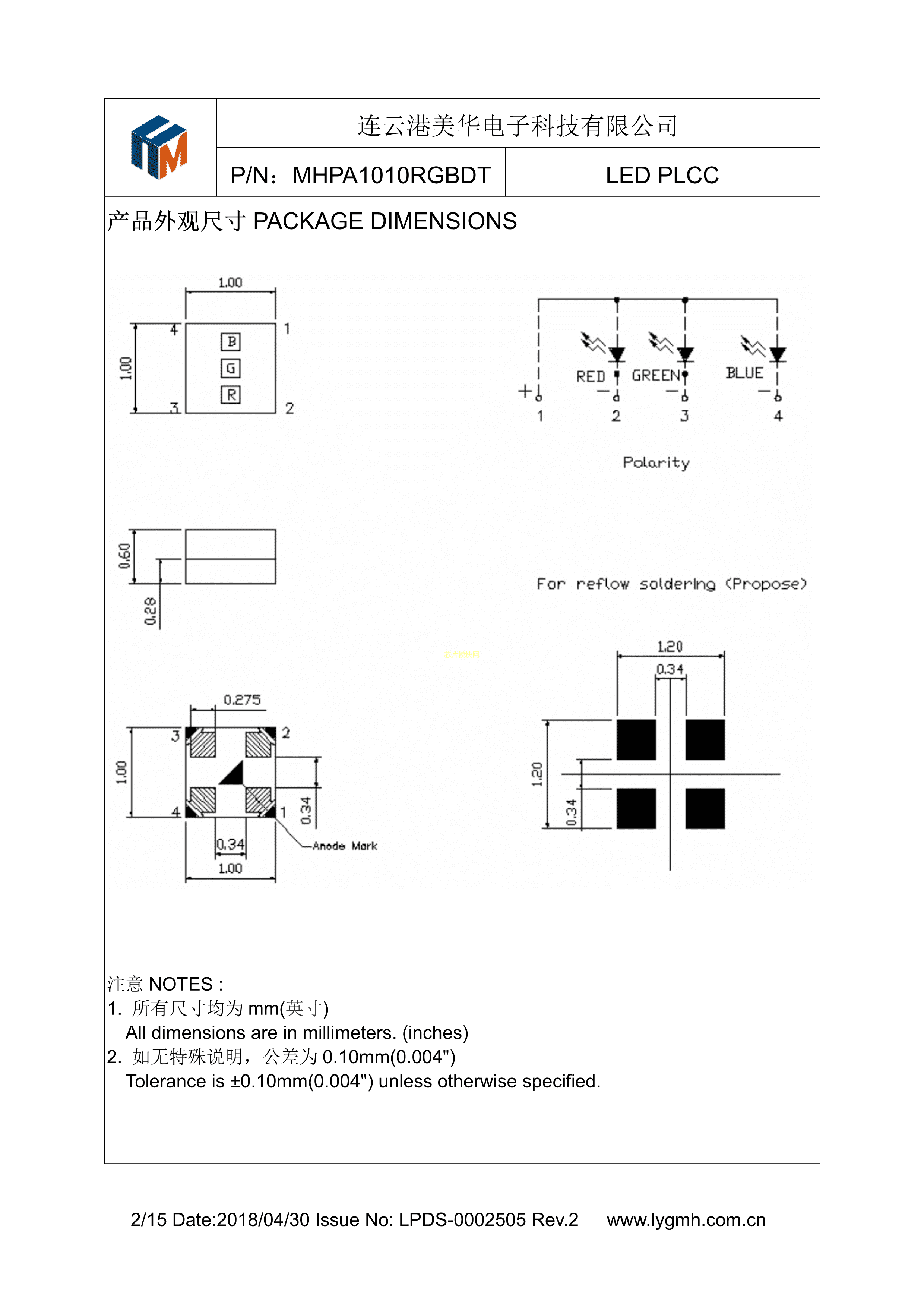 MHPA1010RGBDT数据手册SMD1x1x0.6mm封装MEIHUA(美华)PDF规格书,中英