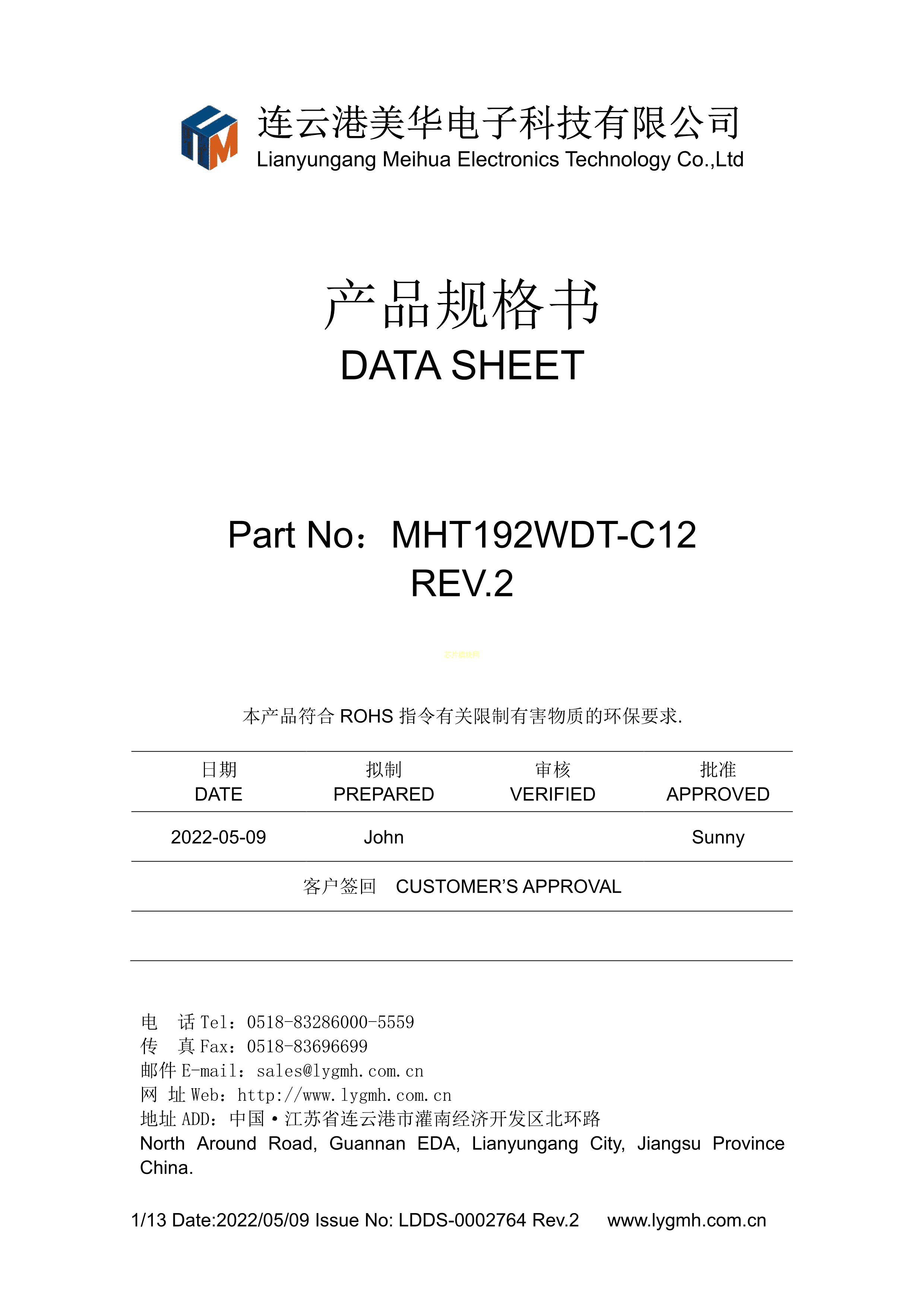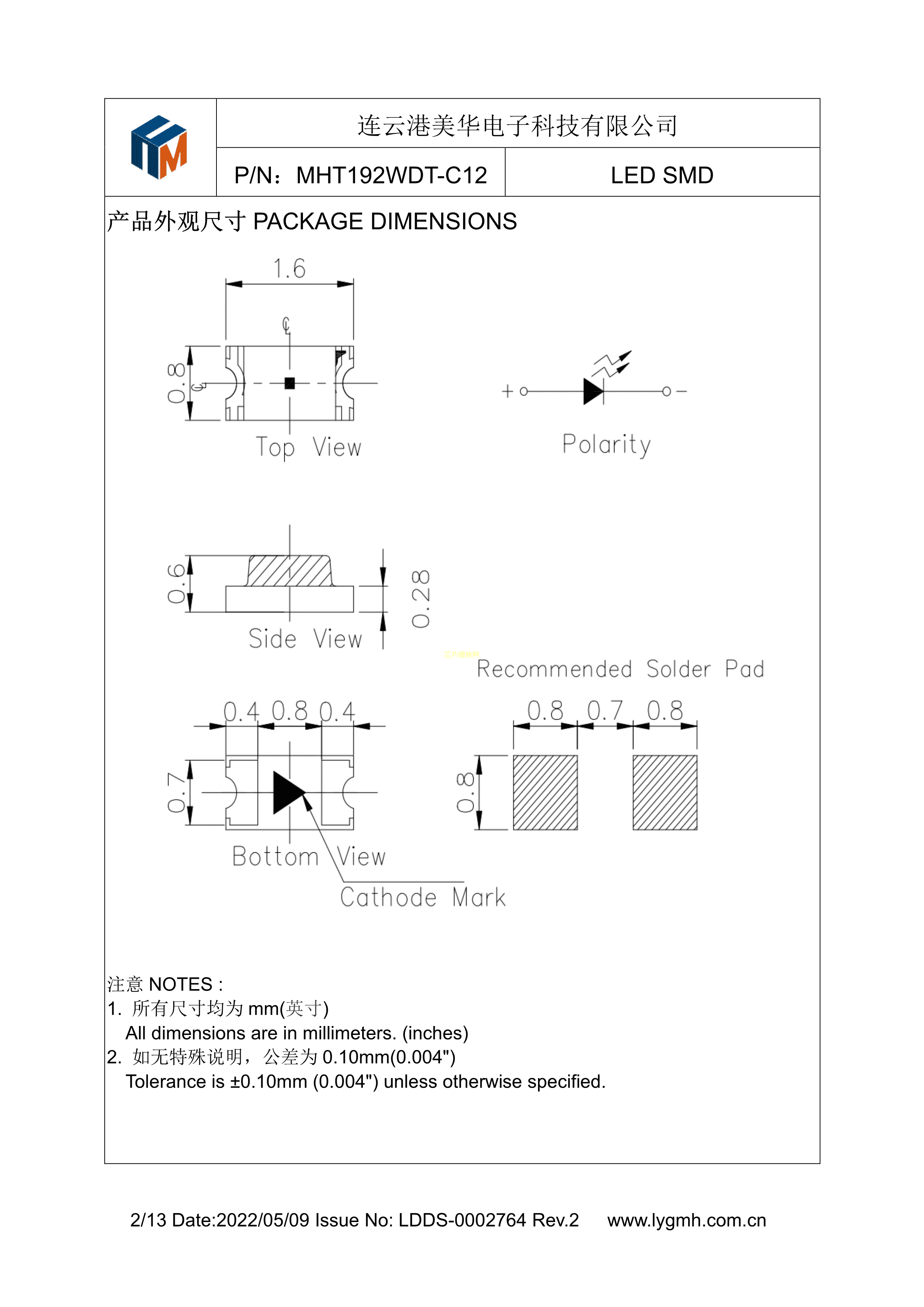 MHT192WDT-C12数据手册0603封装MEIHUA(美华)PDF规格书,中英文下载