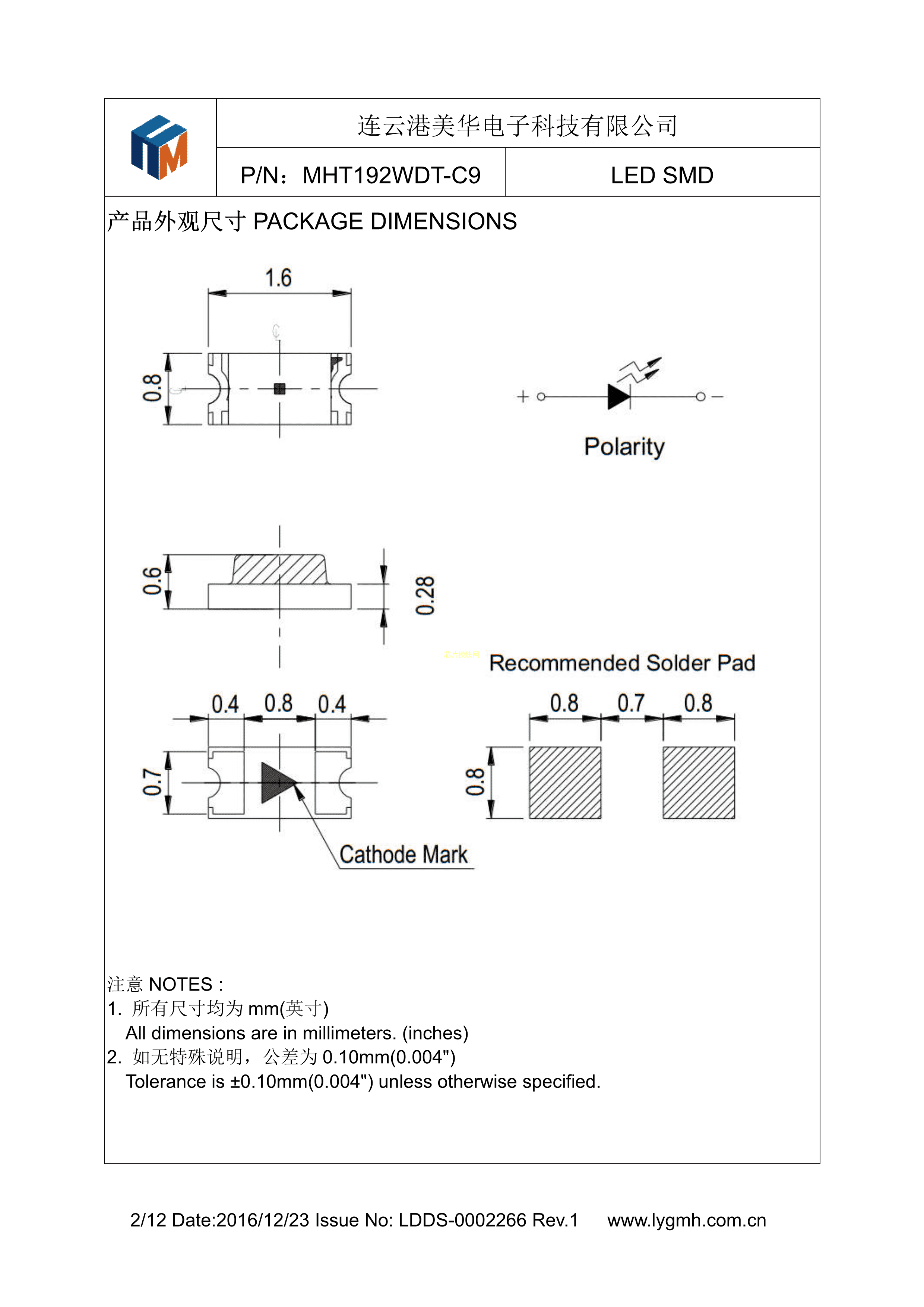 MHT192WDT-C9数据手册0603封装MEIHUA(美华)PDF规格书,中英文下载