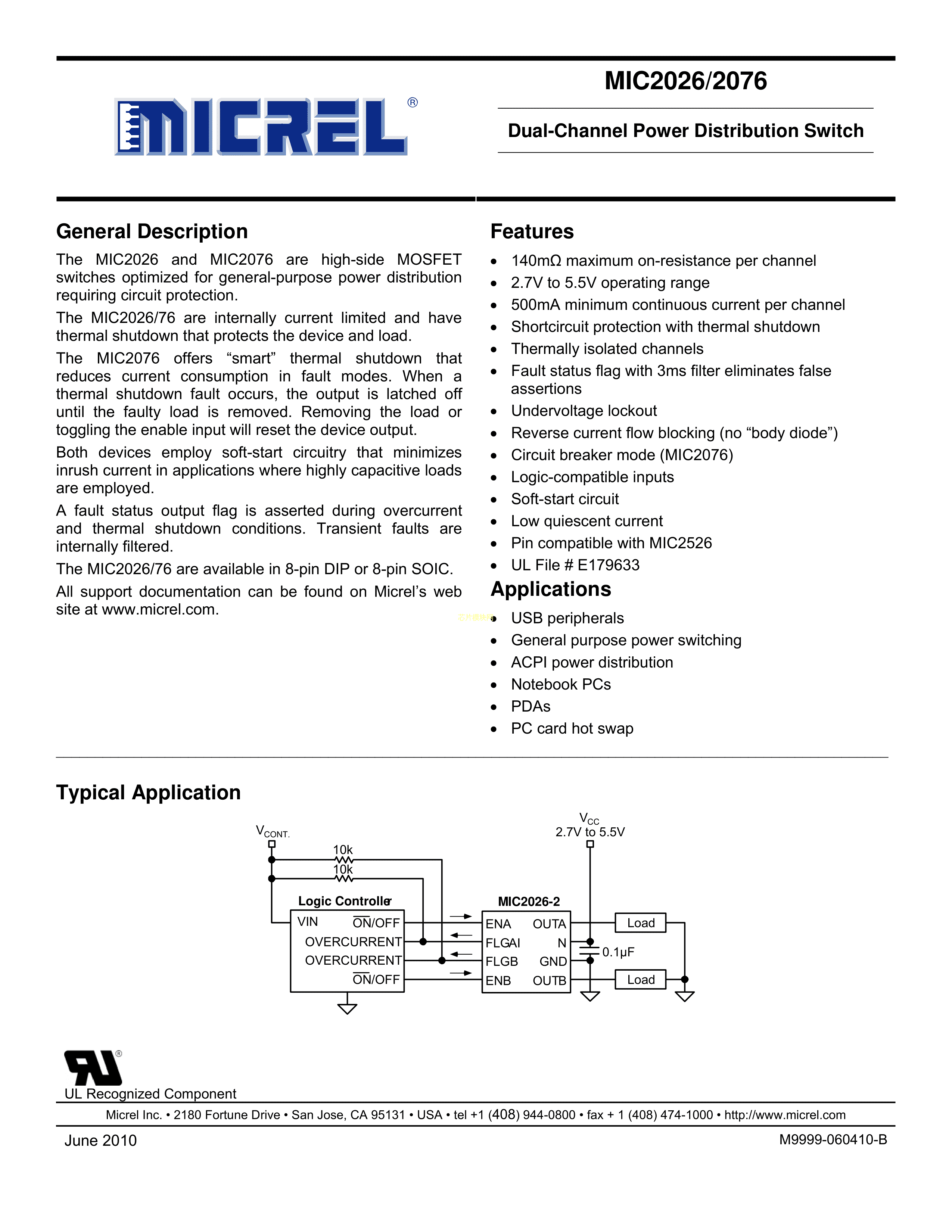 MIC2026-2YM-TR数据手册SOIC-8_150mil封装MICROCHIP(美国微芯)PD