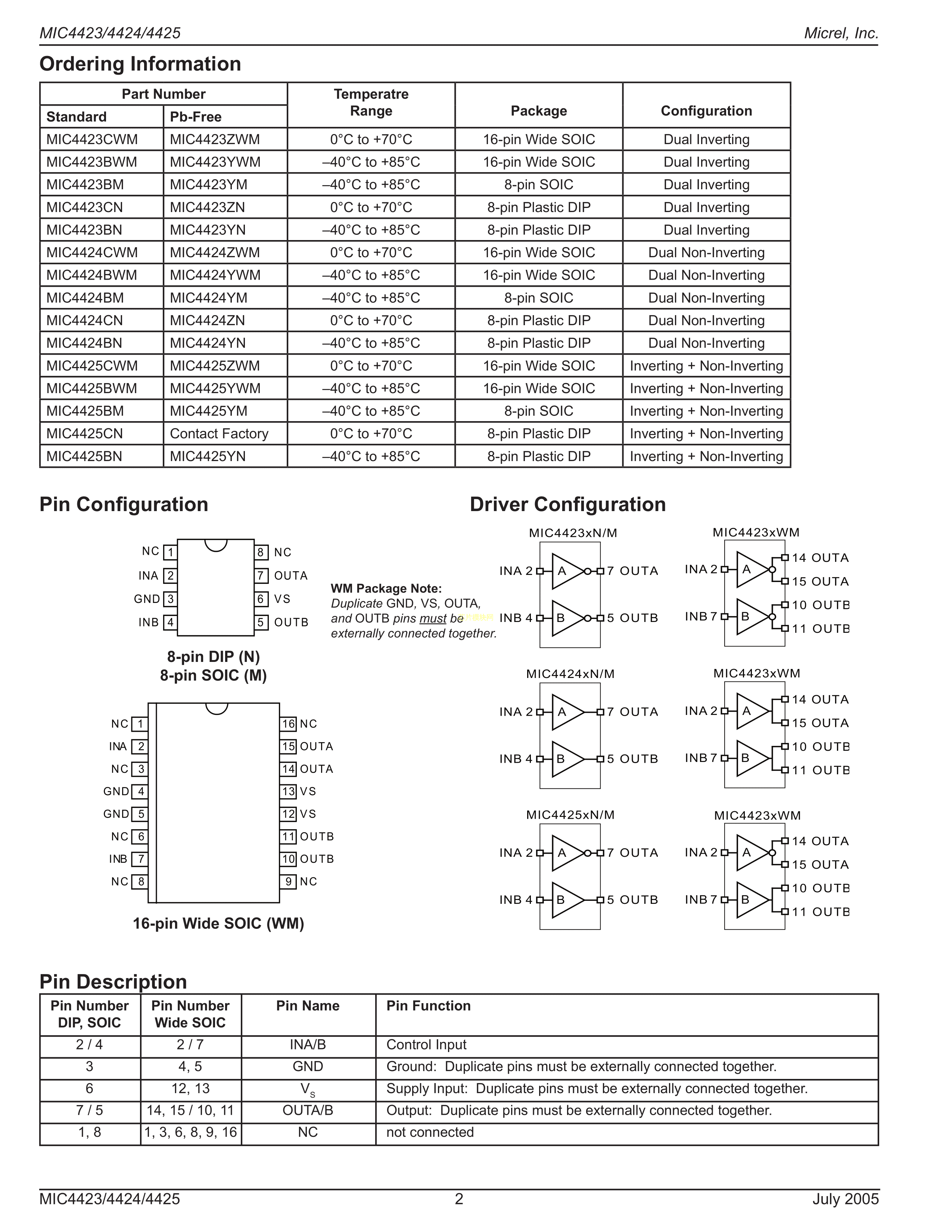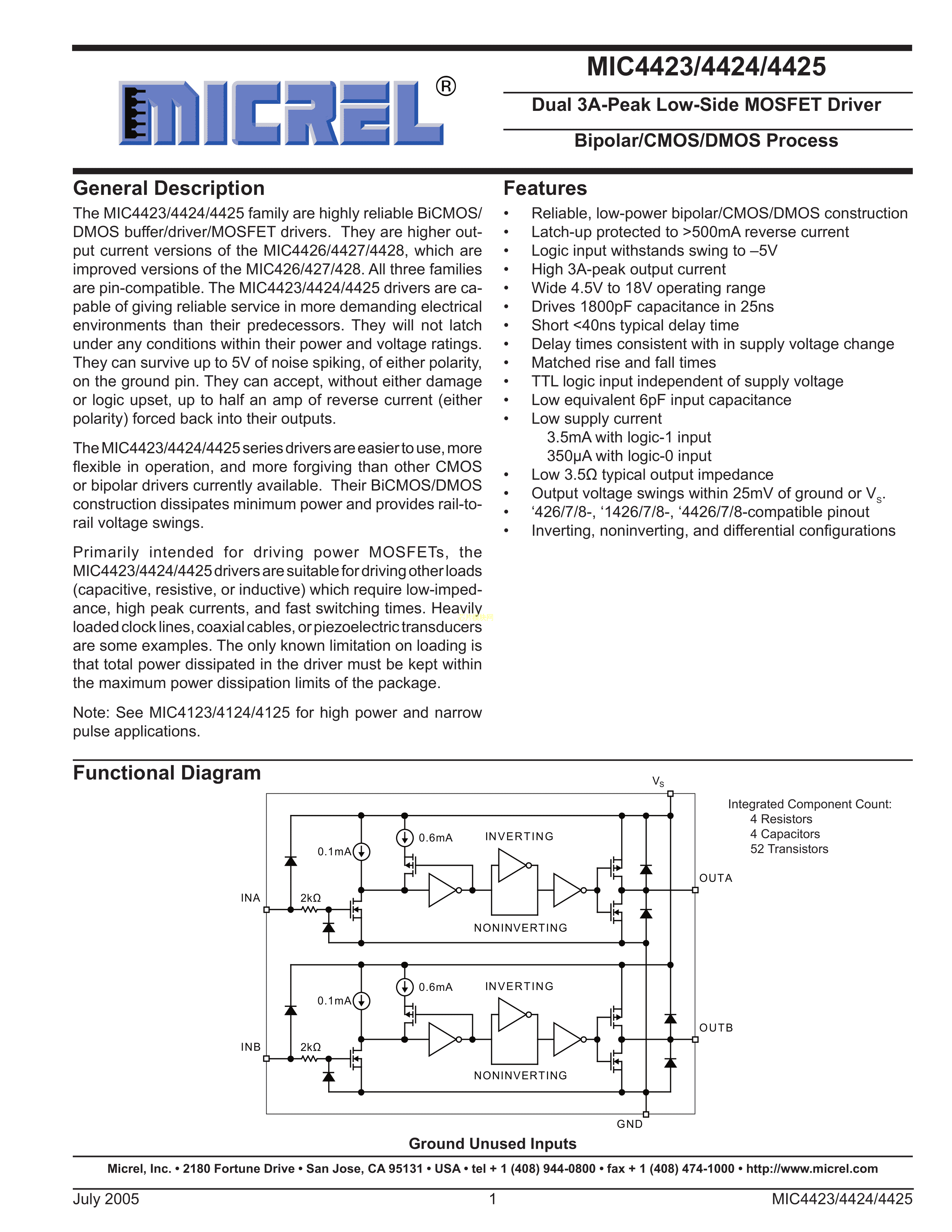 MIC4424YN数据手册DIP-8封装MICROCHIP(美国微芯)PDF规格书,中英文下载