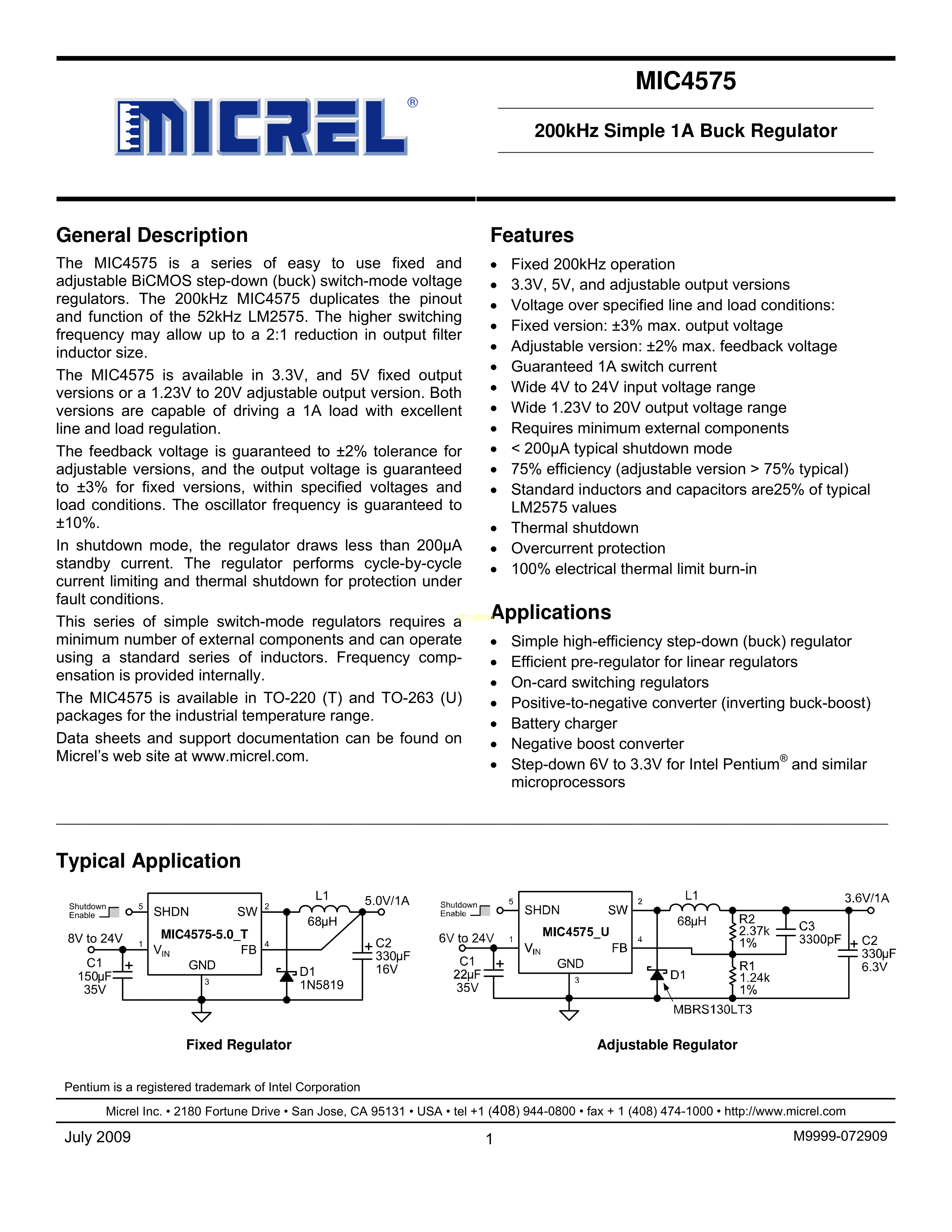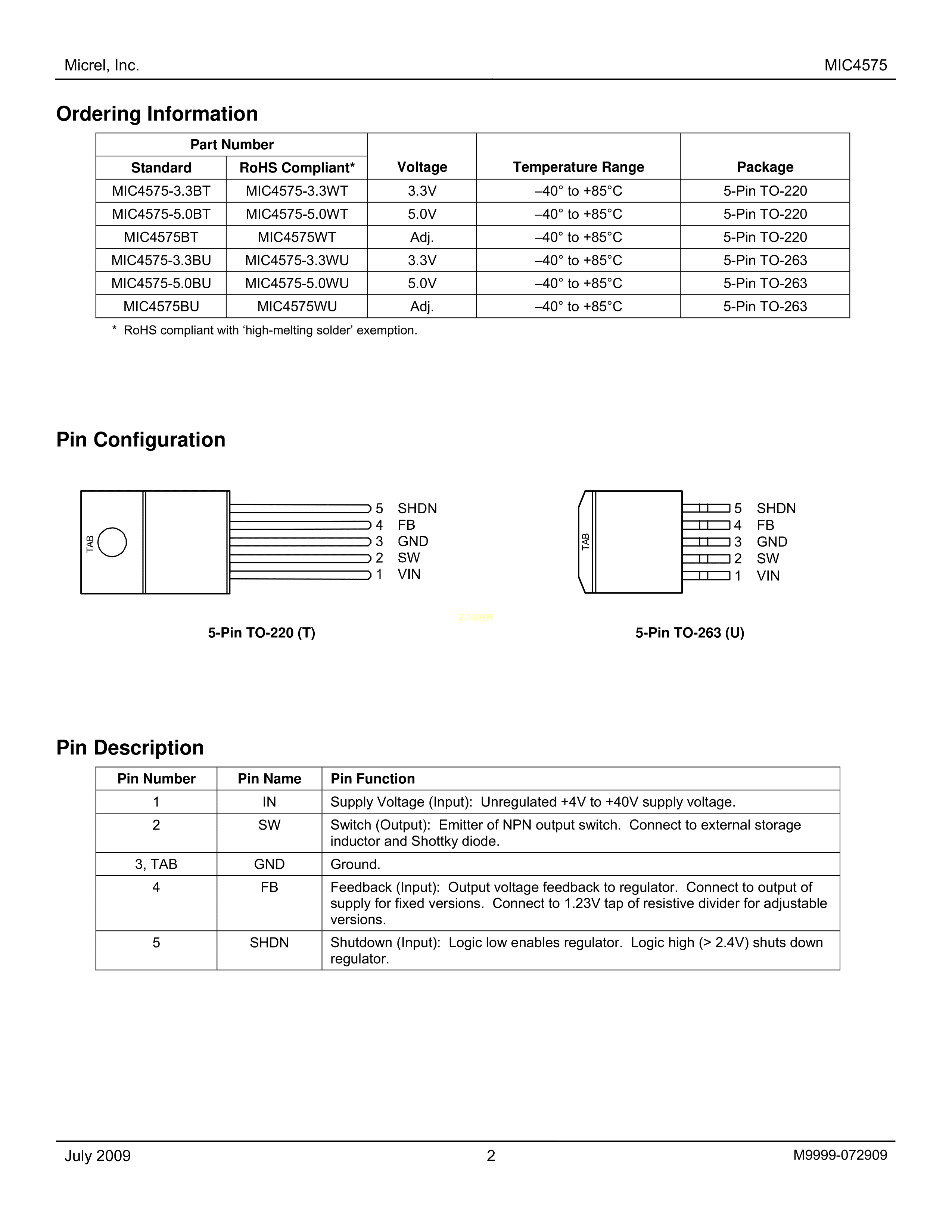 MIC4575-5.0WT数据手册TO-220-5封装MICROCHIP(美国微芯)PDF规格书,中英文下载