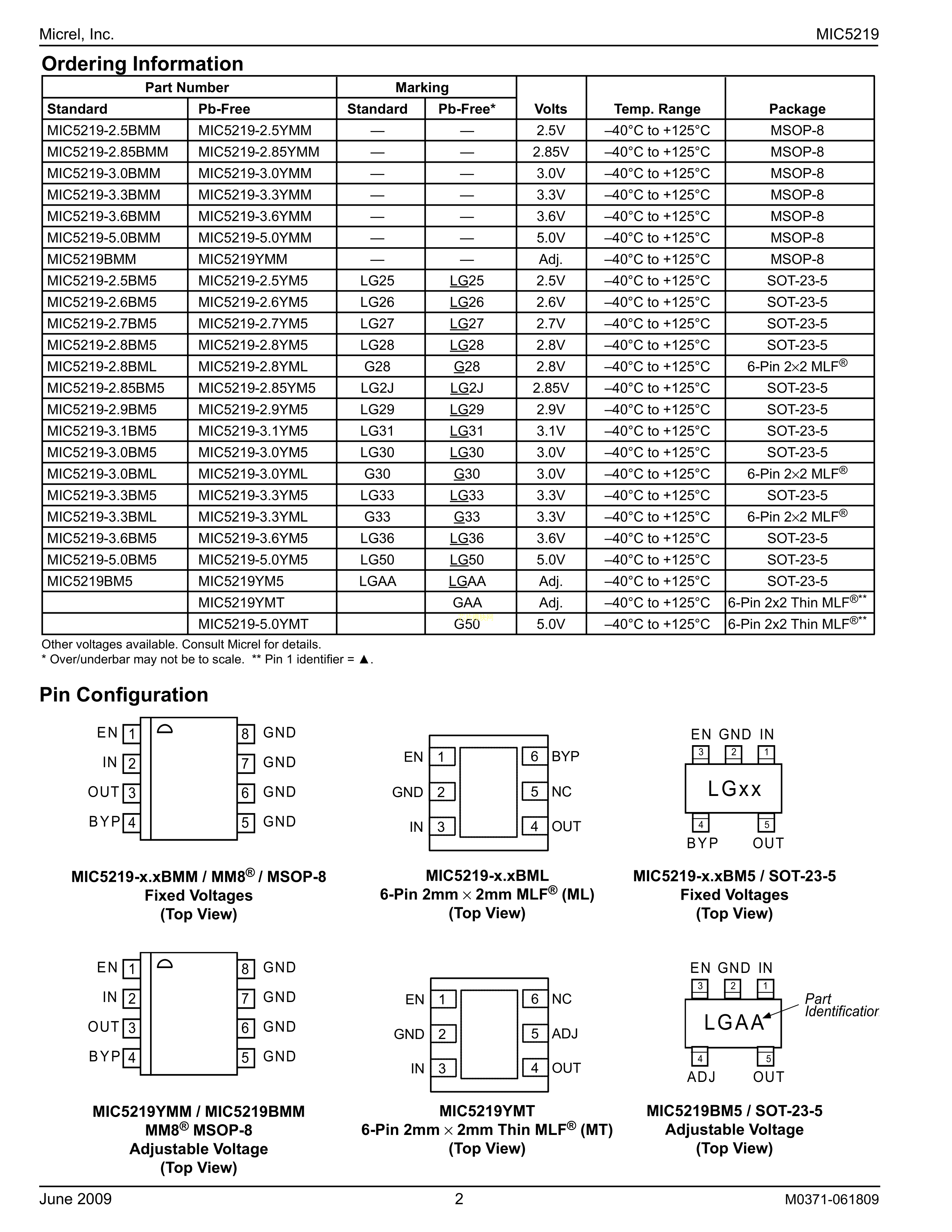 MIC5219-3.3YM5-TR数据手册SOT-23-5封装MICROCHIP(美国微芯)PDF规