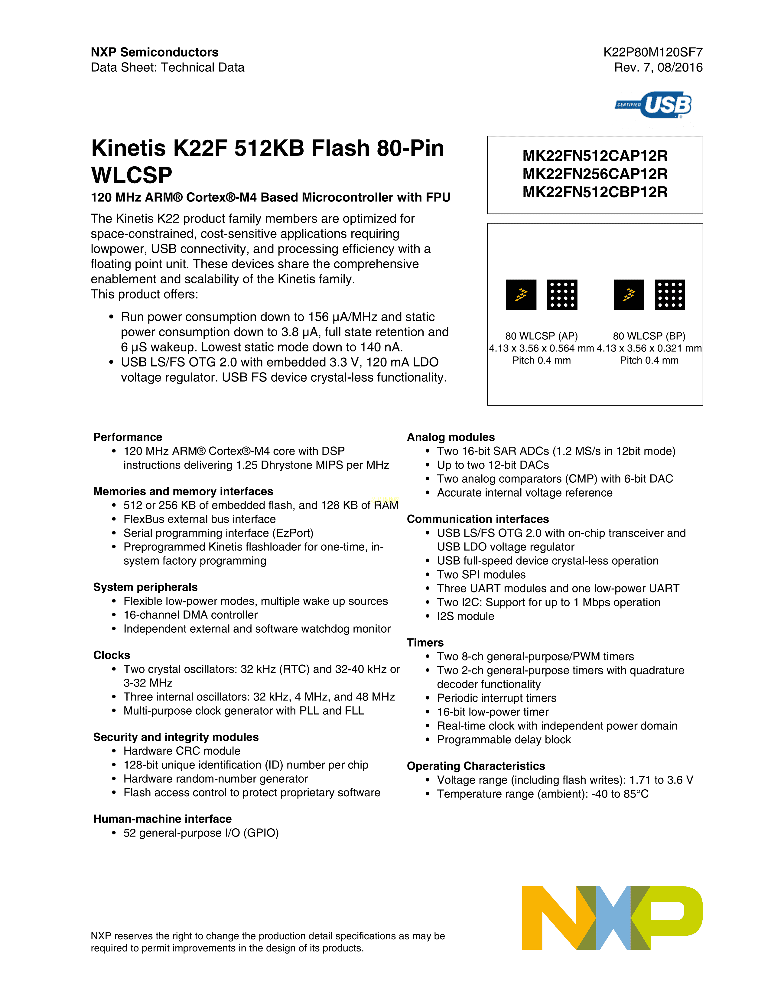 MK22FN512CBP12R数据手册WLCSP-80(4.13x3.56)封装NXP(恩智浦)PD