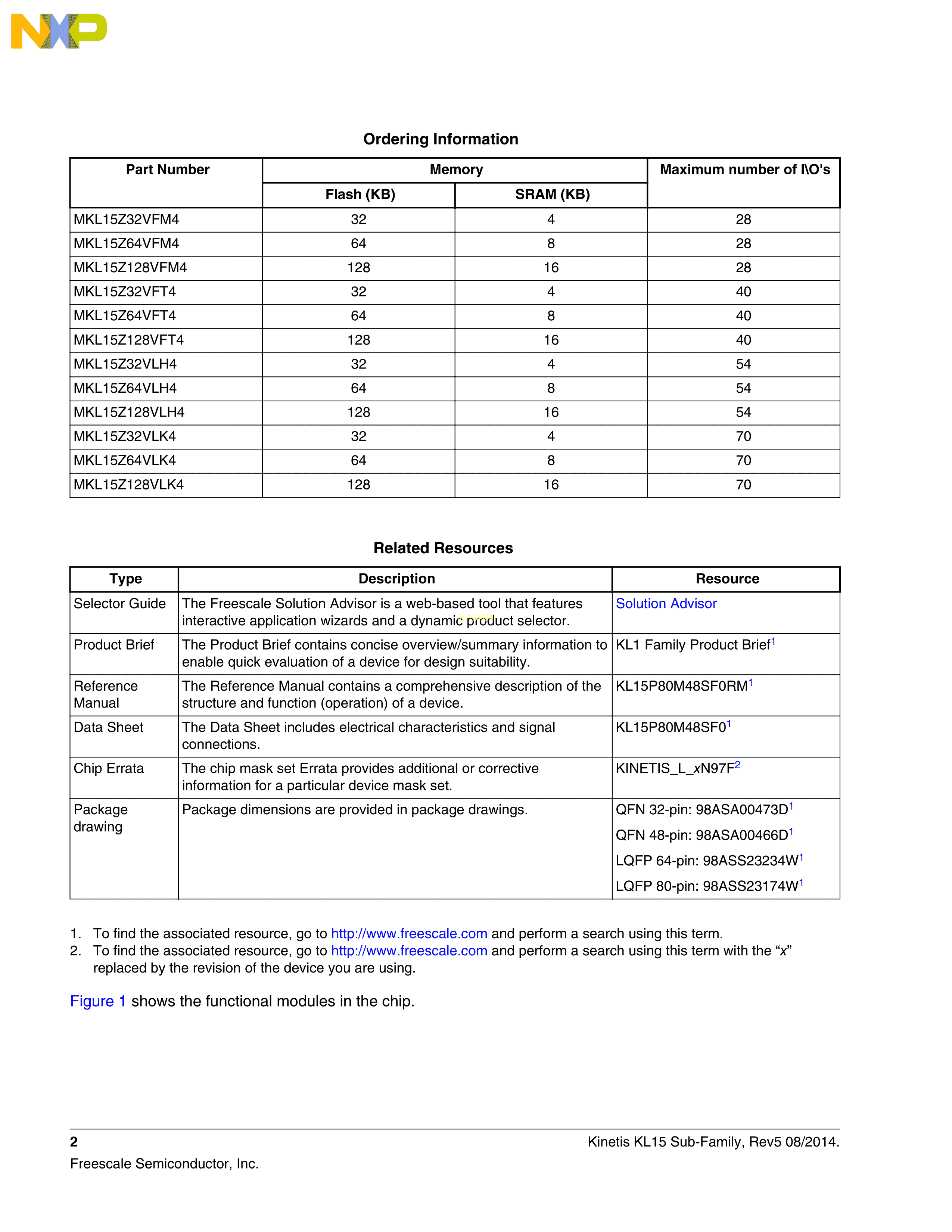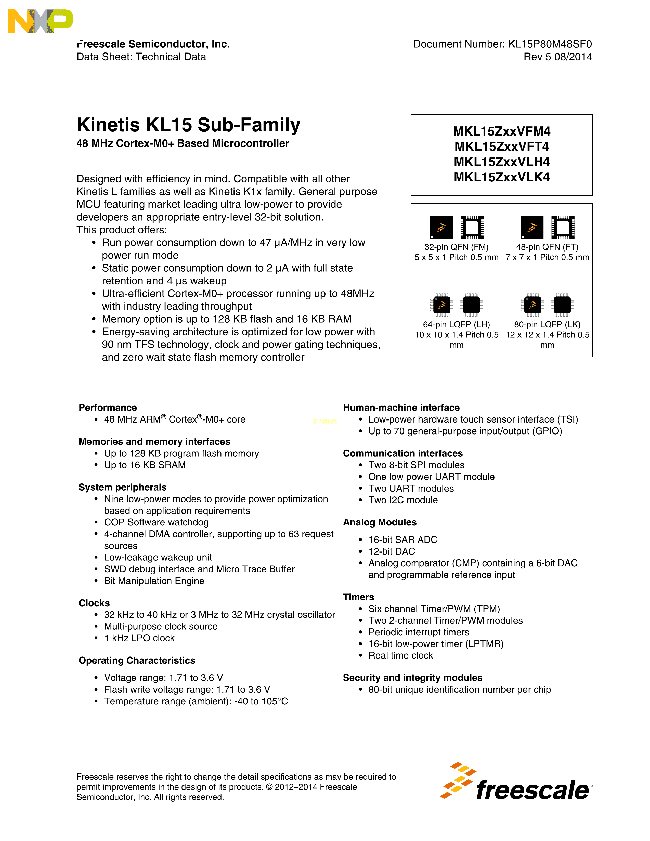 MKL15Z128VFT4数据手册QFN-48(7x7)封装NXP(恩智浦)PDF规格书,中英文下载