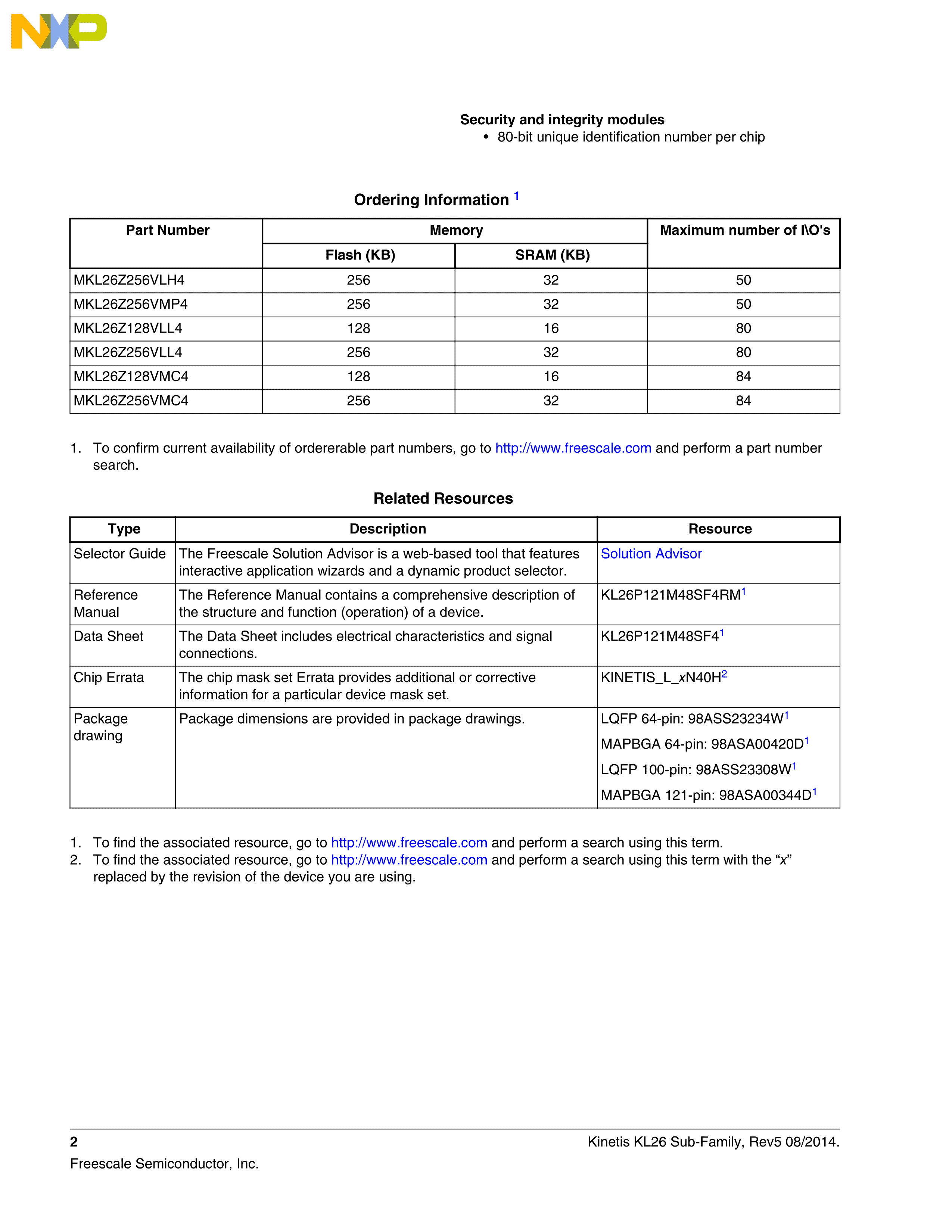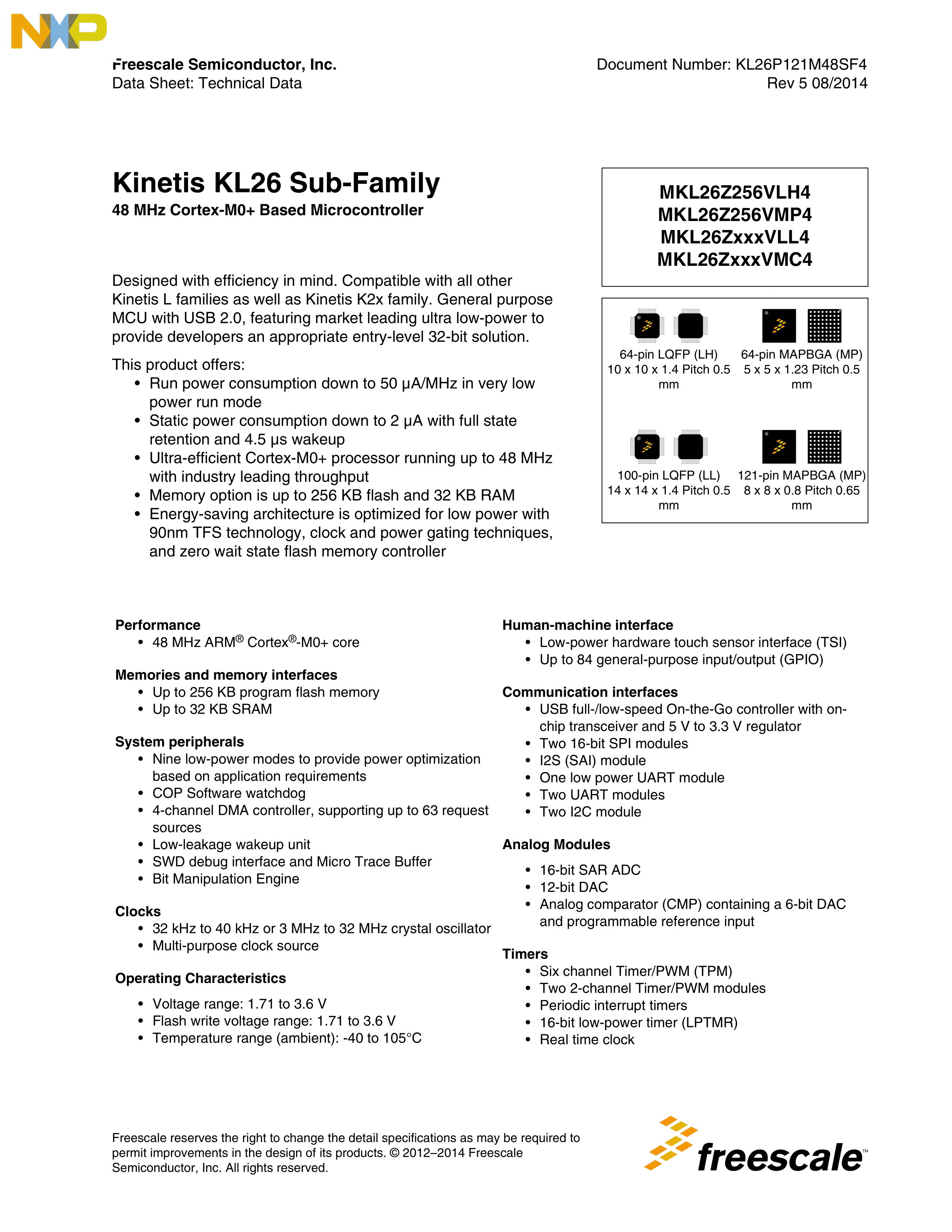MKL26Z256VLH4数据手册LQFP-64(10x10)封装NXP(恩智浦)PDF规格书,中英