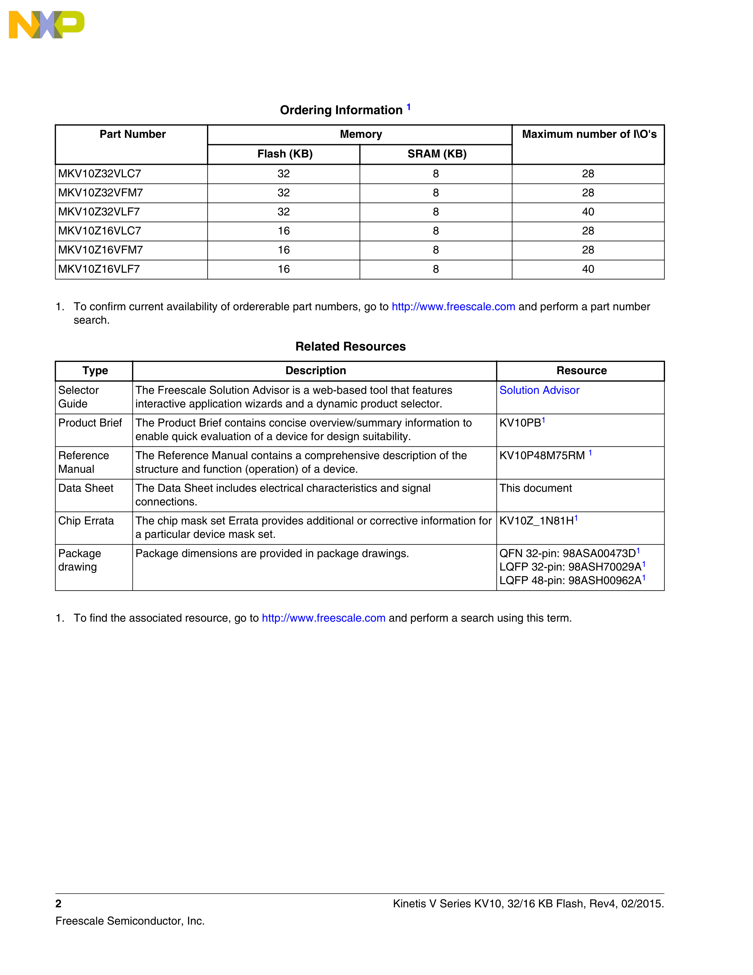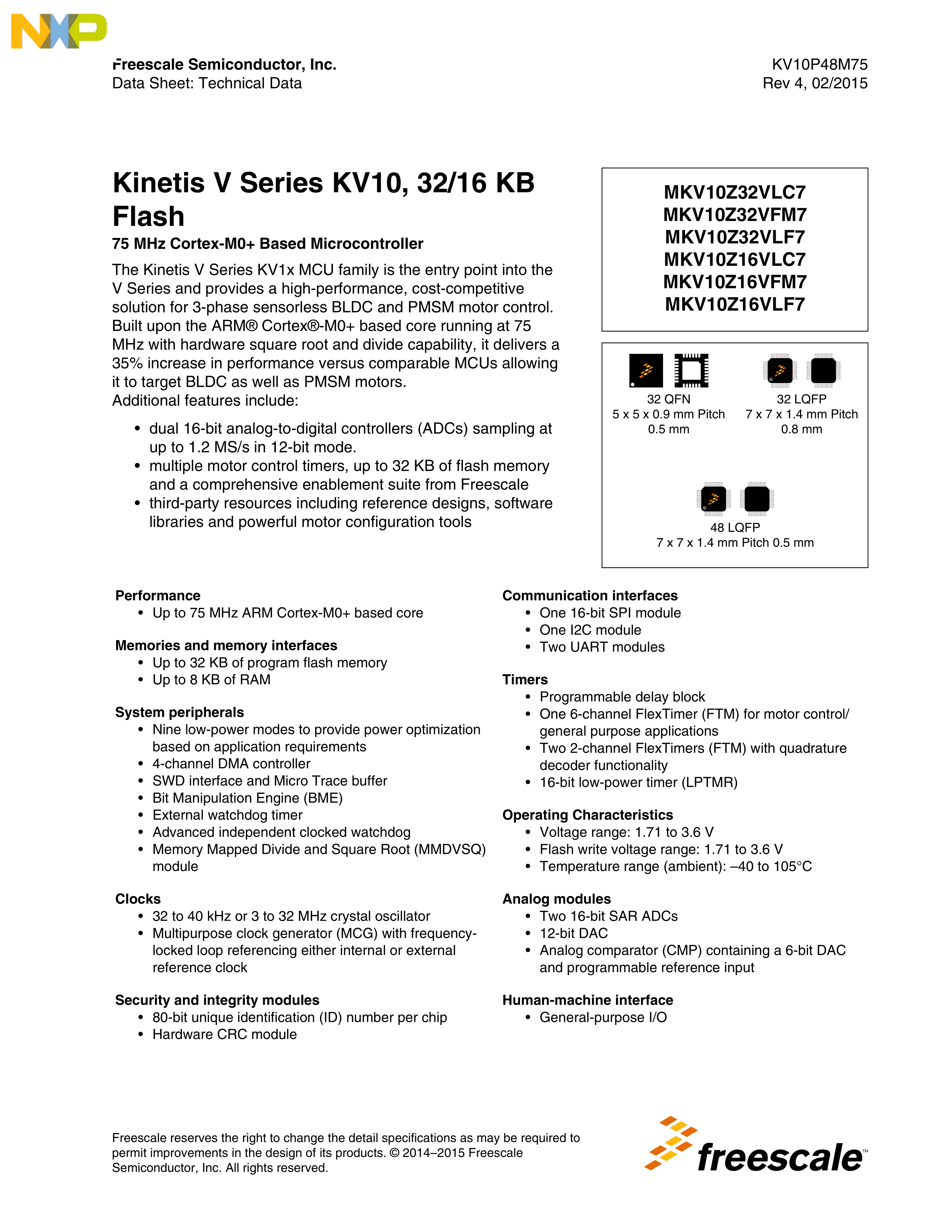 MKV10Z32VLC7数据手册LQFP-32(7x7)封装NXP(恩智浦)PDF规格书,中英文下载