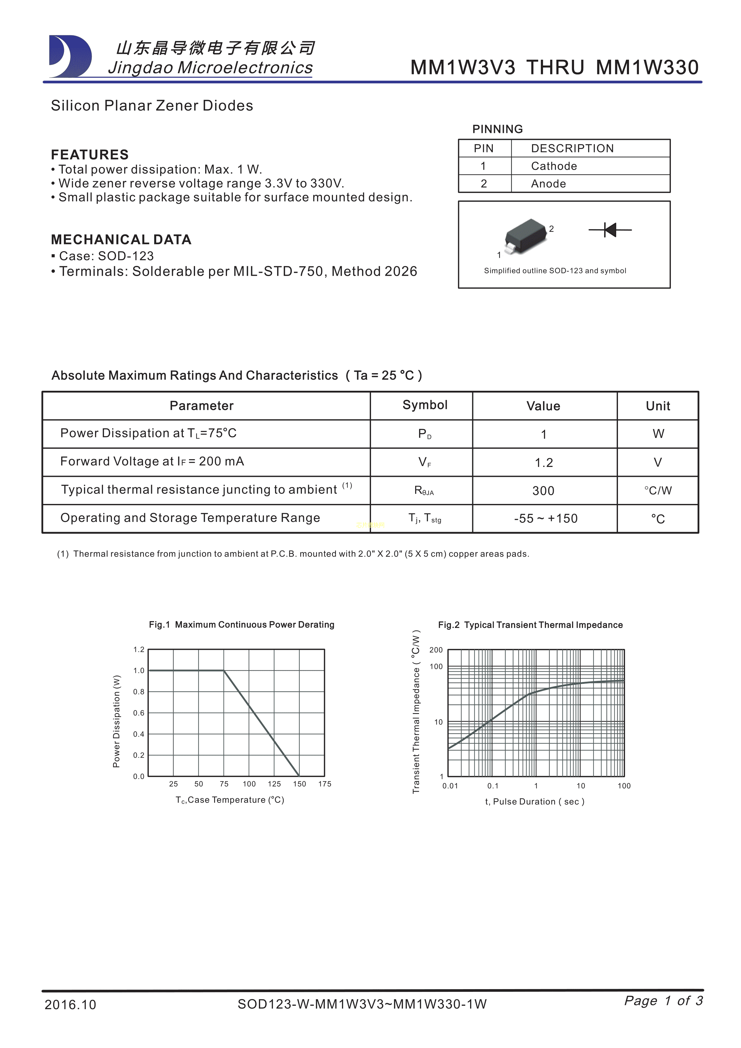 MM1W12数据手册SOD-123封装晶导微电子PDF规格书,中英文下载