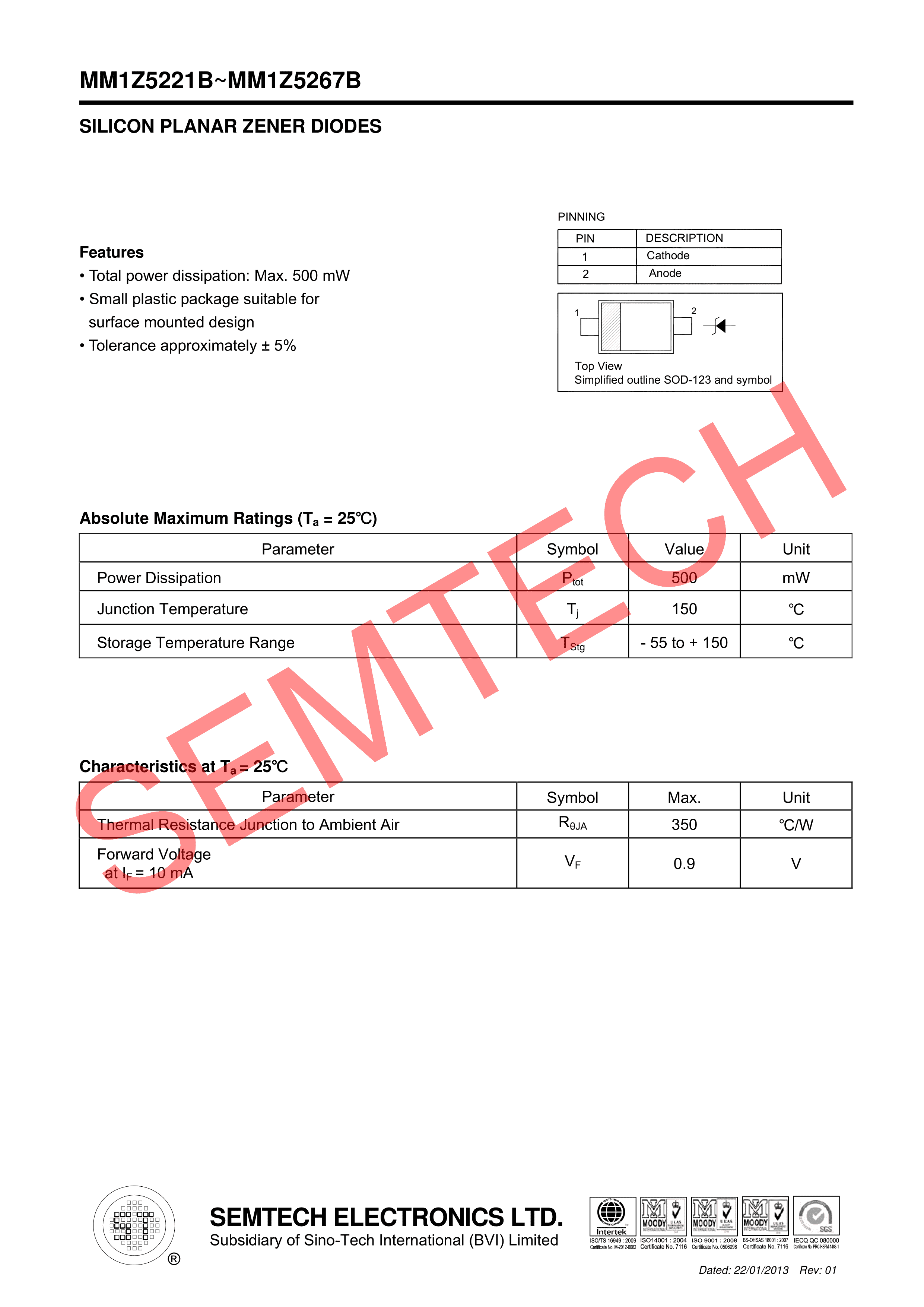 MM1Z5253B数据手册SOD-123封装ST(先科)PDF规格书,中英文下载