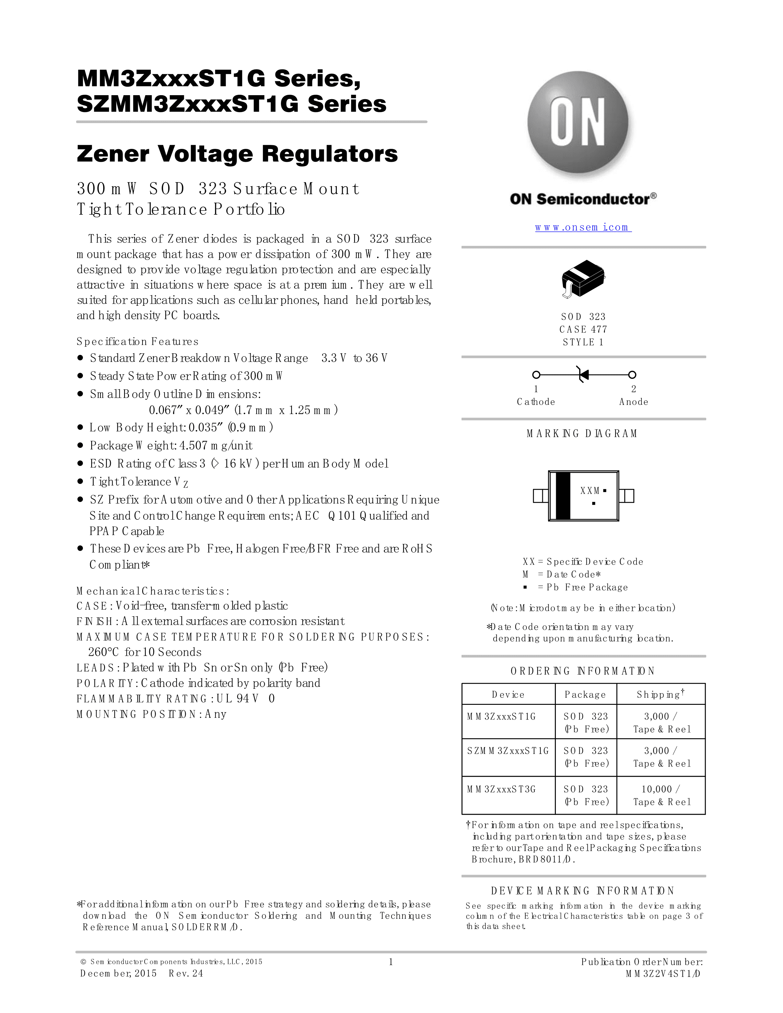 MM3Z16VST1G数据手册SC-76封装onsemi(安森美)PDF规格书,中英文下载