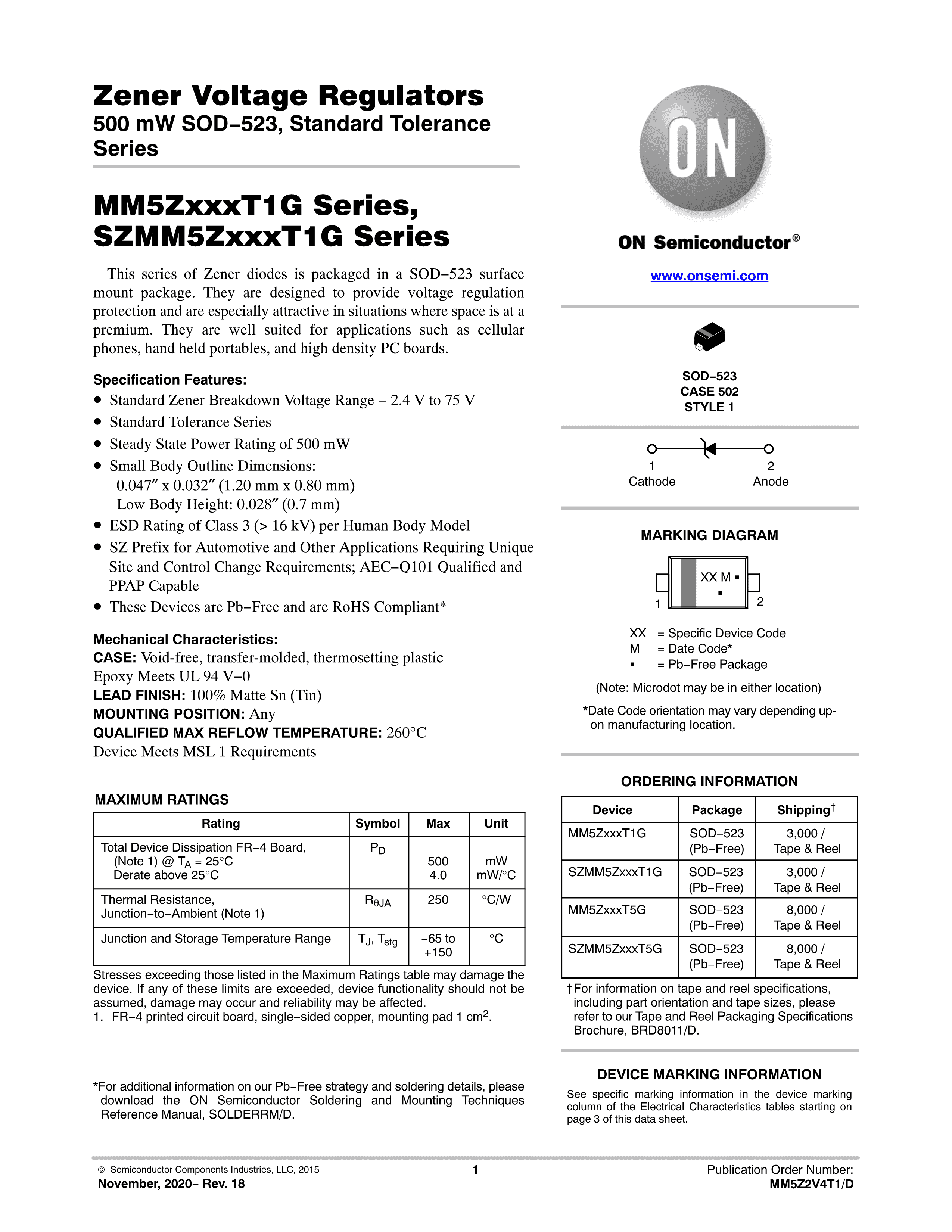 MM5Z47VT1G数据手册SOD-523封装onsemi(安森美)PDF规格书,中英文下载