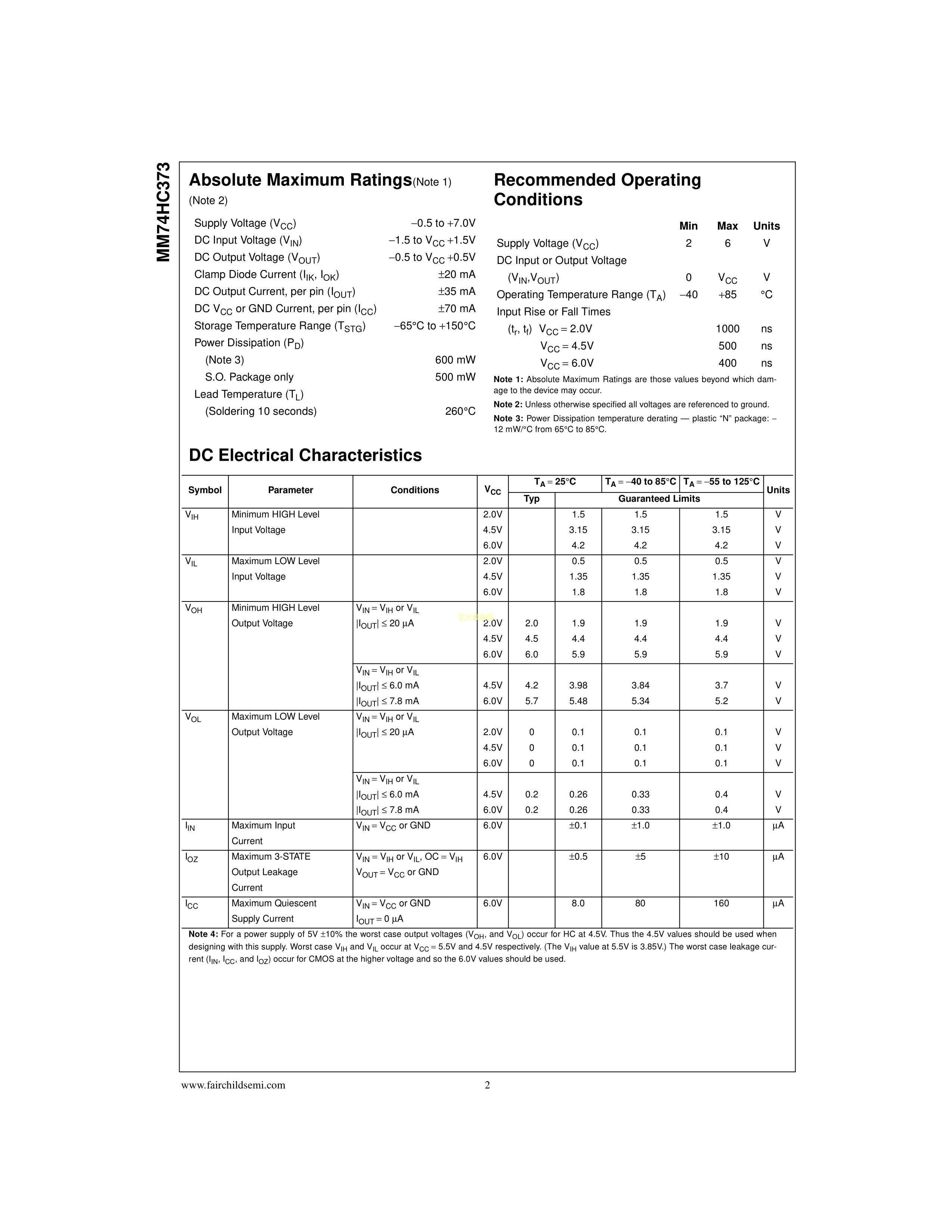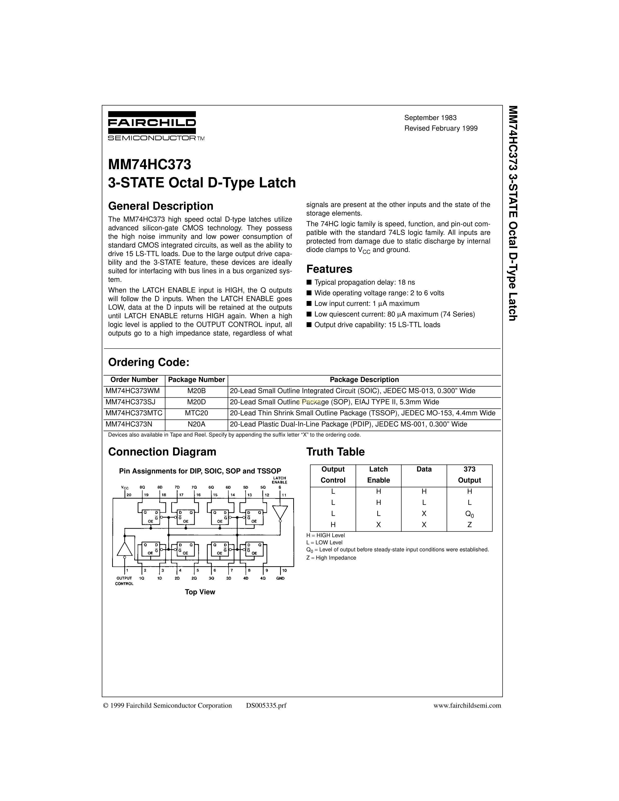 MM74HC373WMX数据手册SOIC-20_300mil封装onsemi(安森美)PDF规格书,