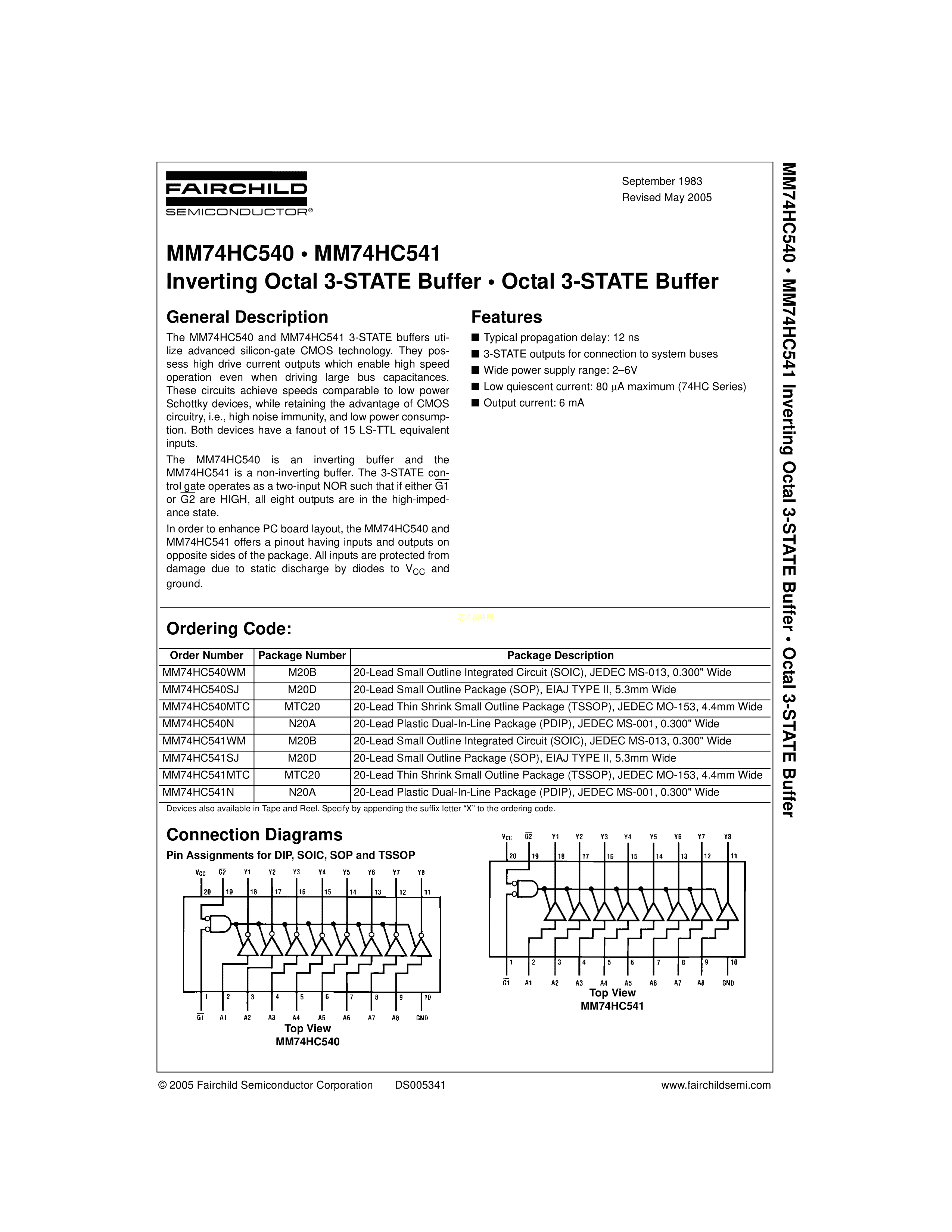 MM74HC541SJ数据手册SOP-20封装onsemi(安森美)PDF规格书,中英文下载