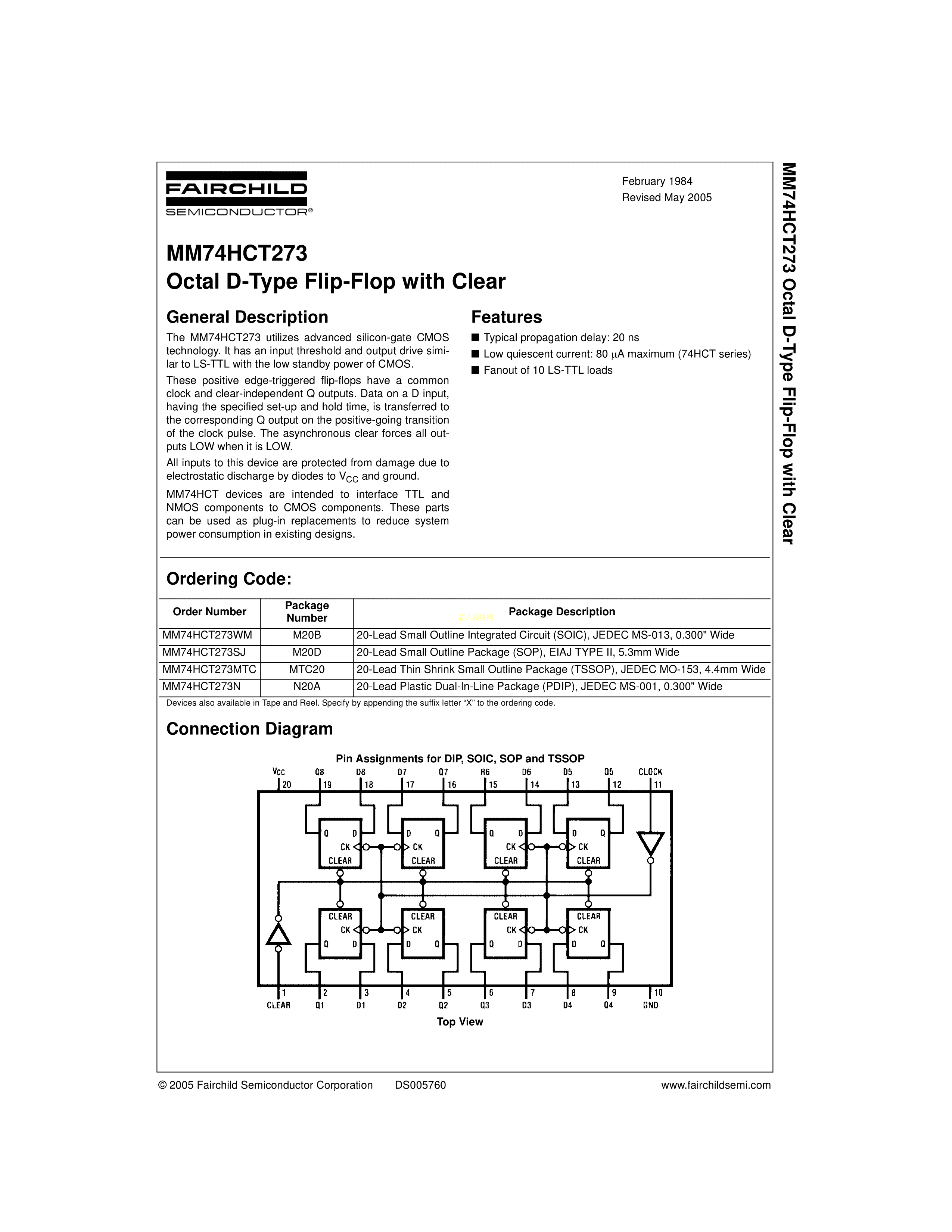 MM74HCT273WMX数据手册SOIC-20封装onsemi(安森美)PDF规格书,中英文下载