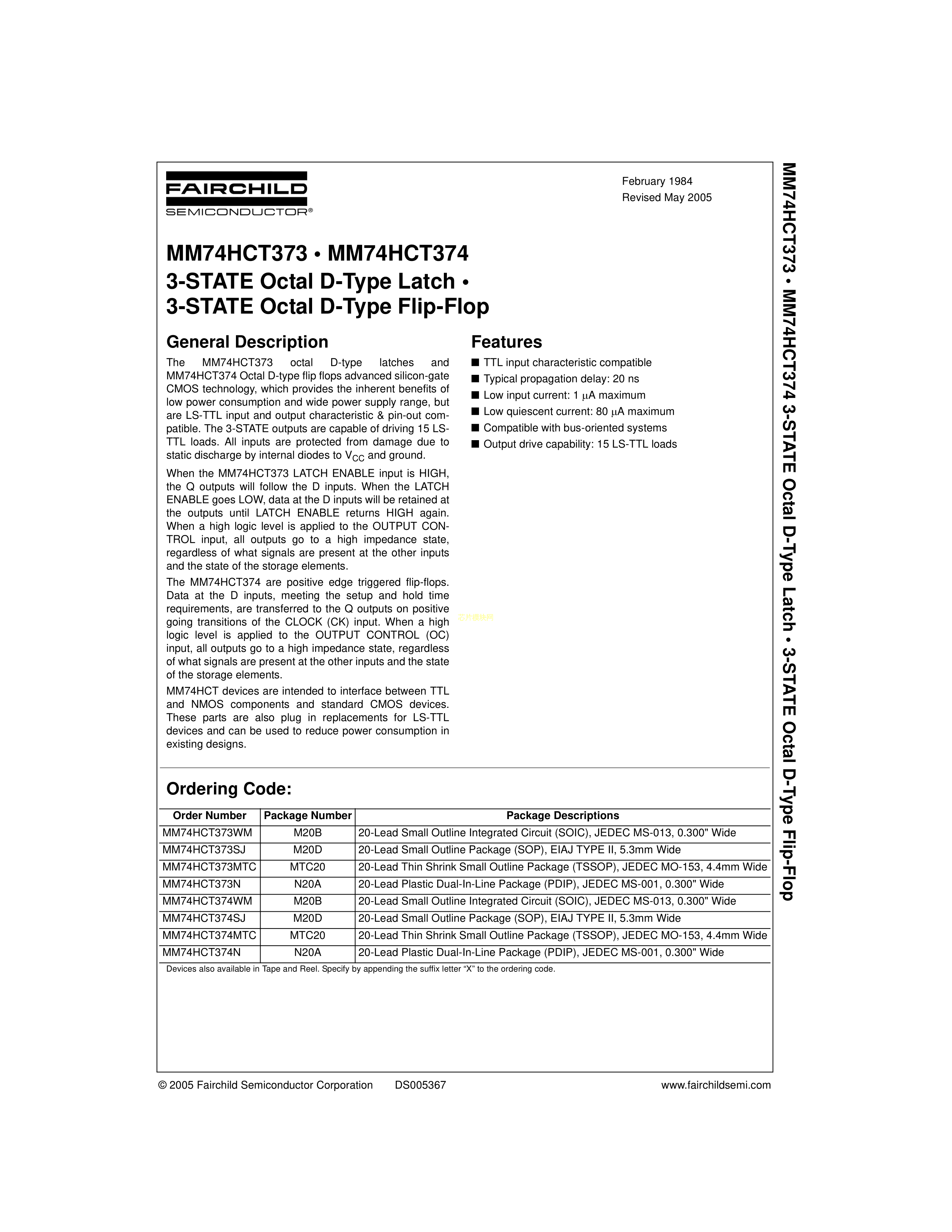 MM74HCT373MTC数据手册TSSOP-20封装onsemi(安森美)PDF规格书,中英文下载
