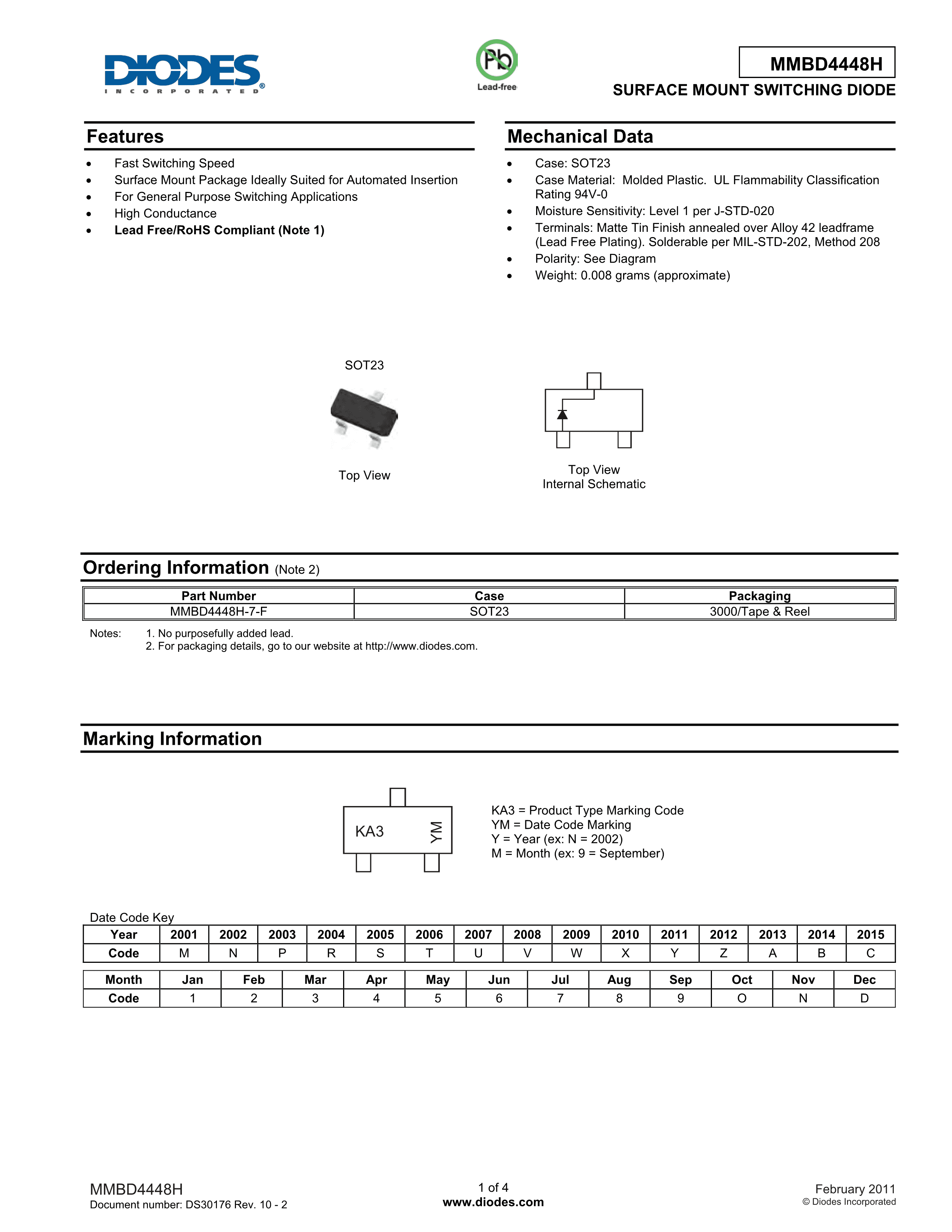 MMBD4448H-7-F数据手册SOT-23封装DIODES(美台)PDF规格书,中英文下载