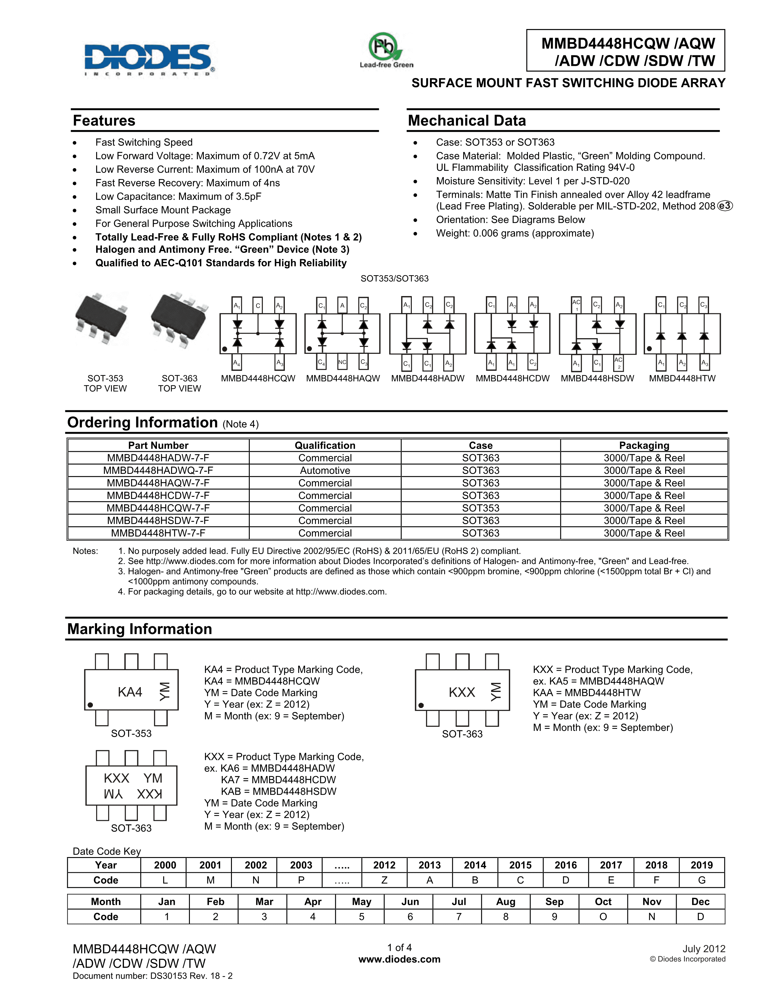 MMBD4448HADW-7-F数据手册SOT-363封装DIODES(美台)PDF规格书,中英文下