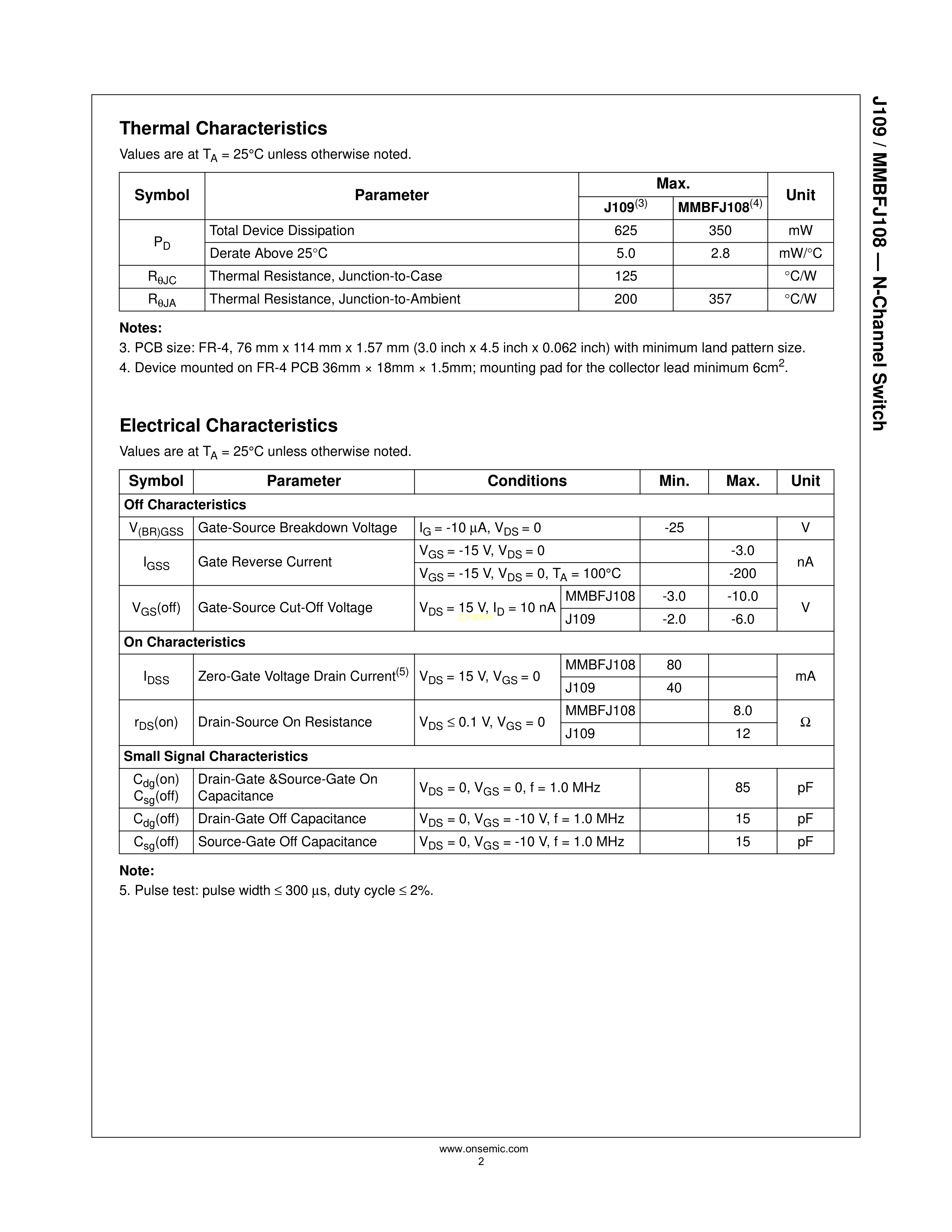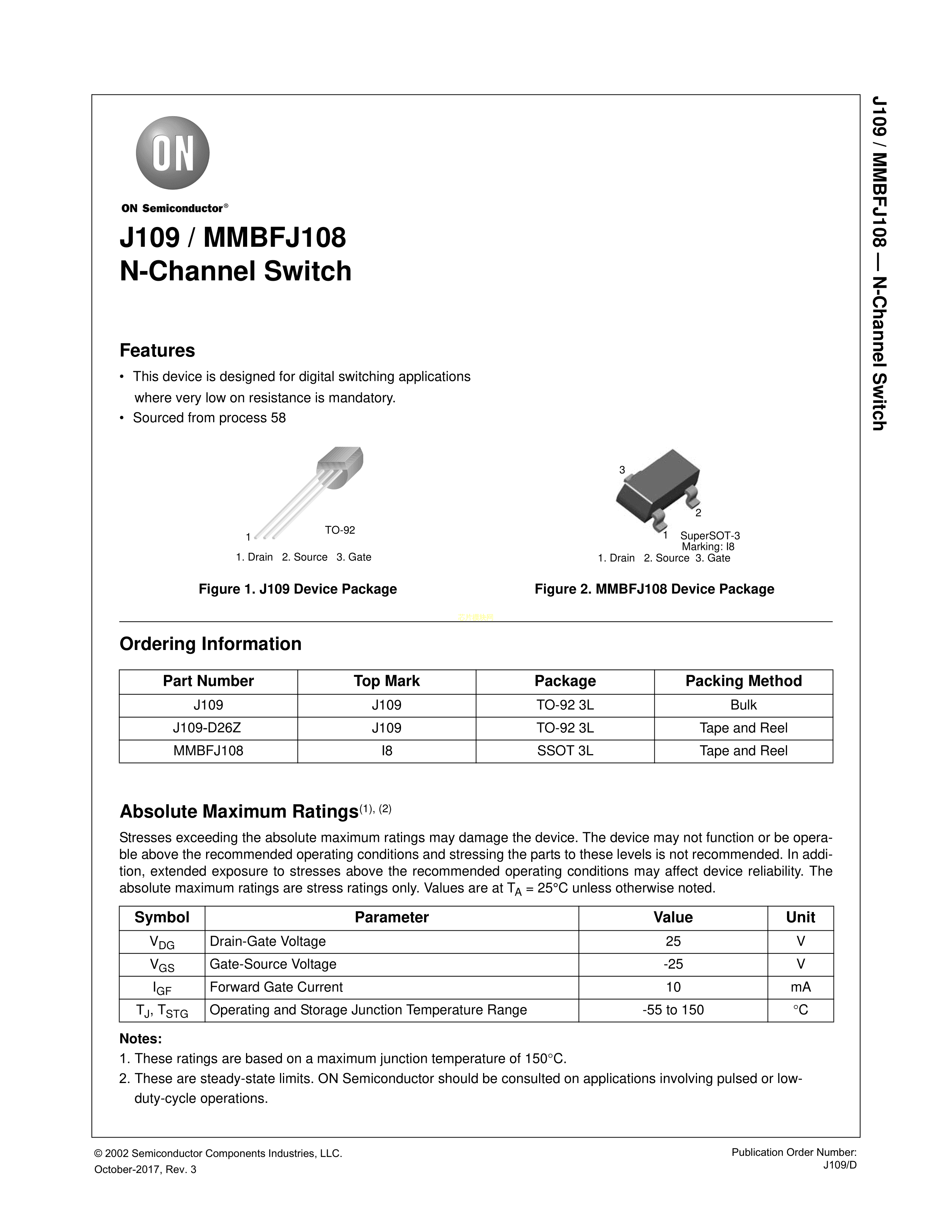 MMBFJ108数据手册SOT-3封装onsemi(安森美)PDF规格书,中英文下载