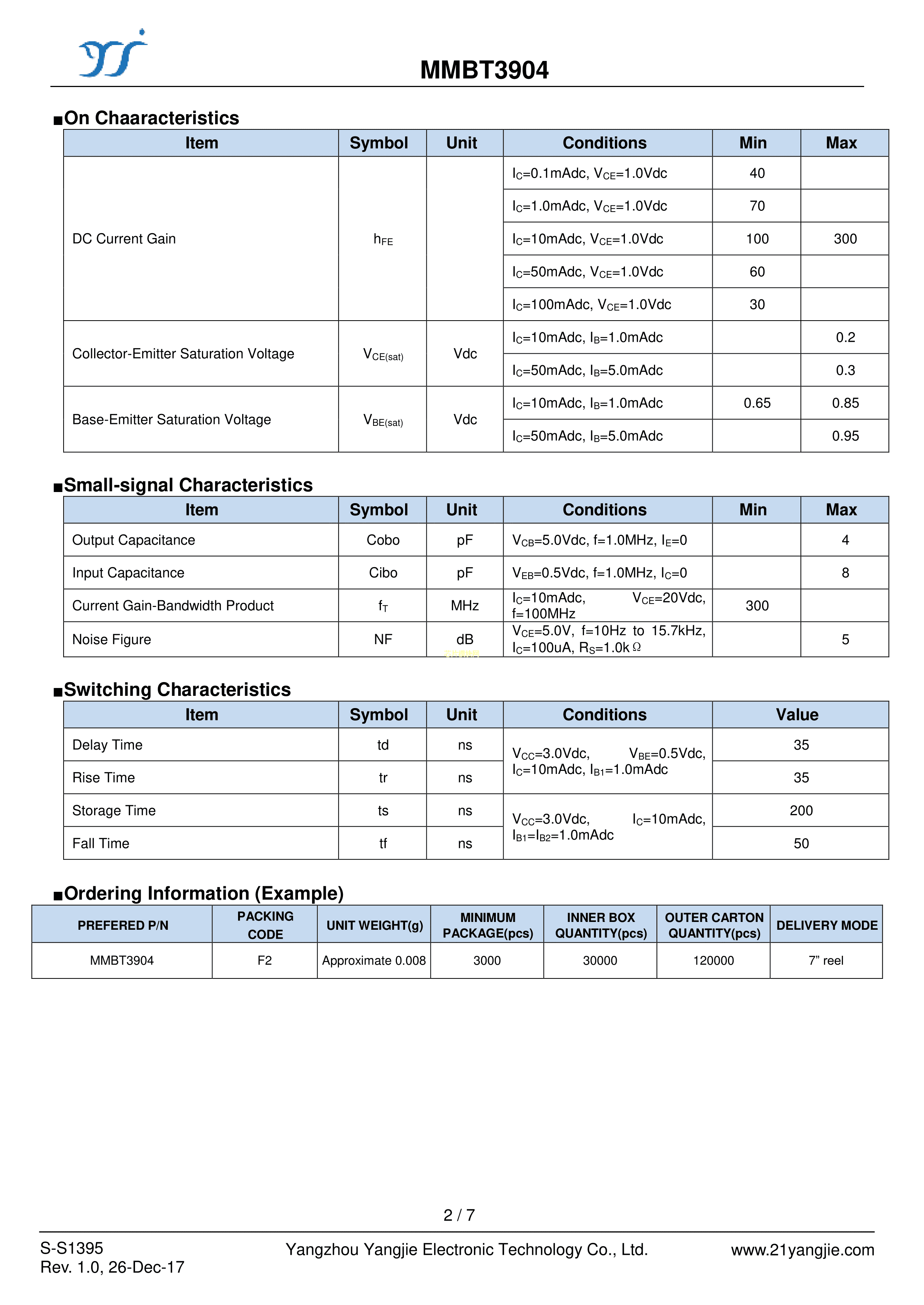 MMBT3904数据手册SOT-23(SOT-23-3)封装YANGJIE(扬杰)PDF规格书,中英