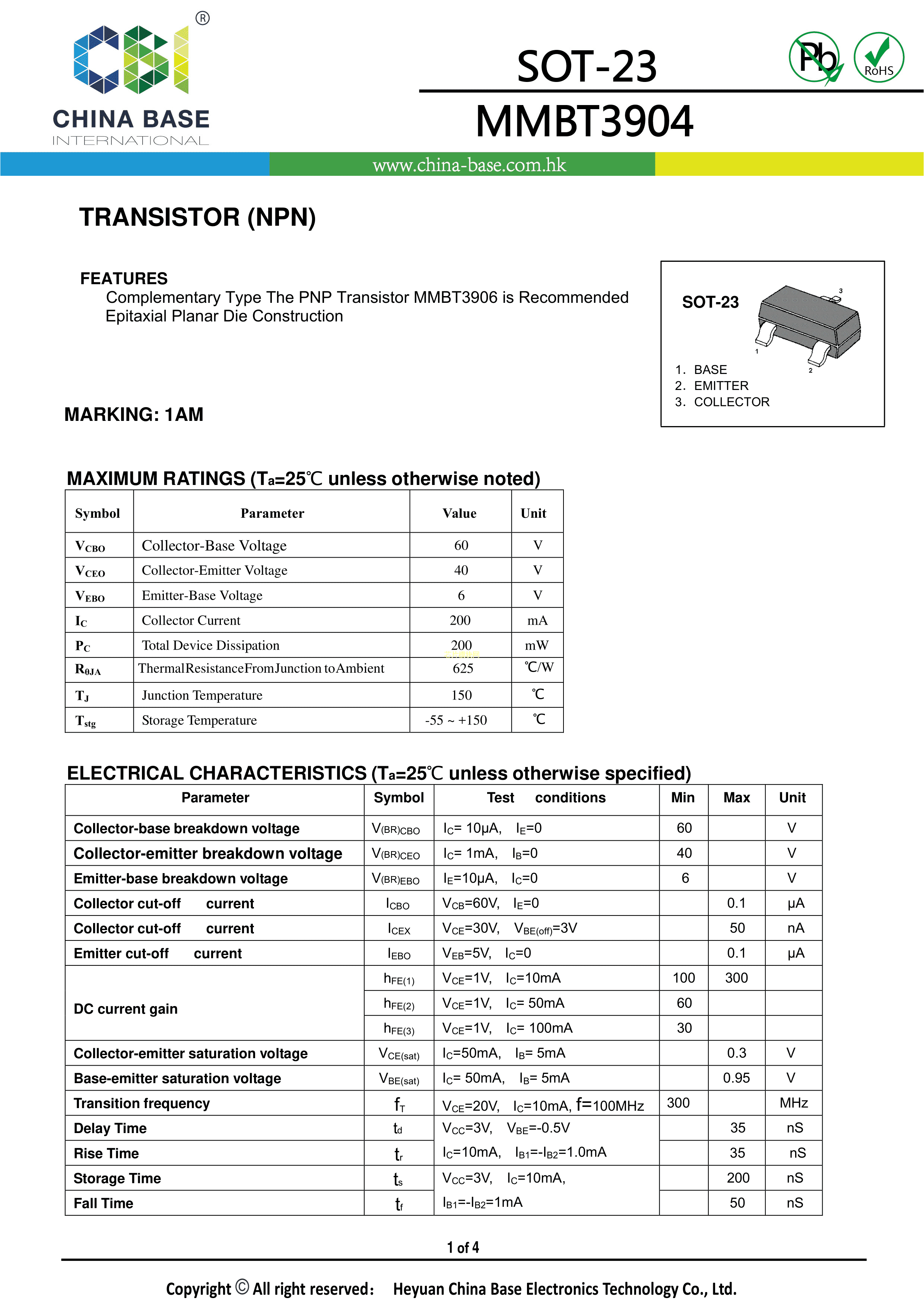 MMBT39041AM数据手册SOT-23封装CBI(创基)PDF规格书,中英文下载