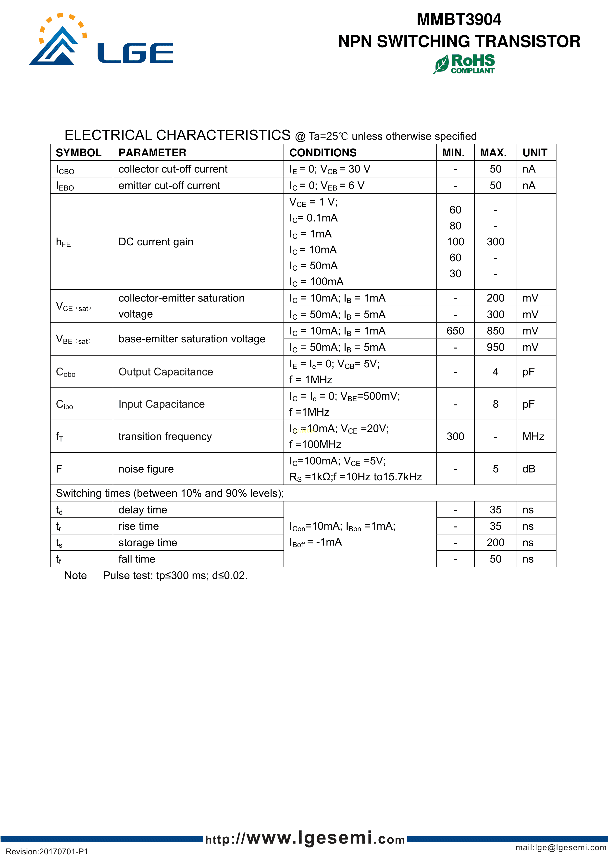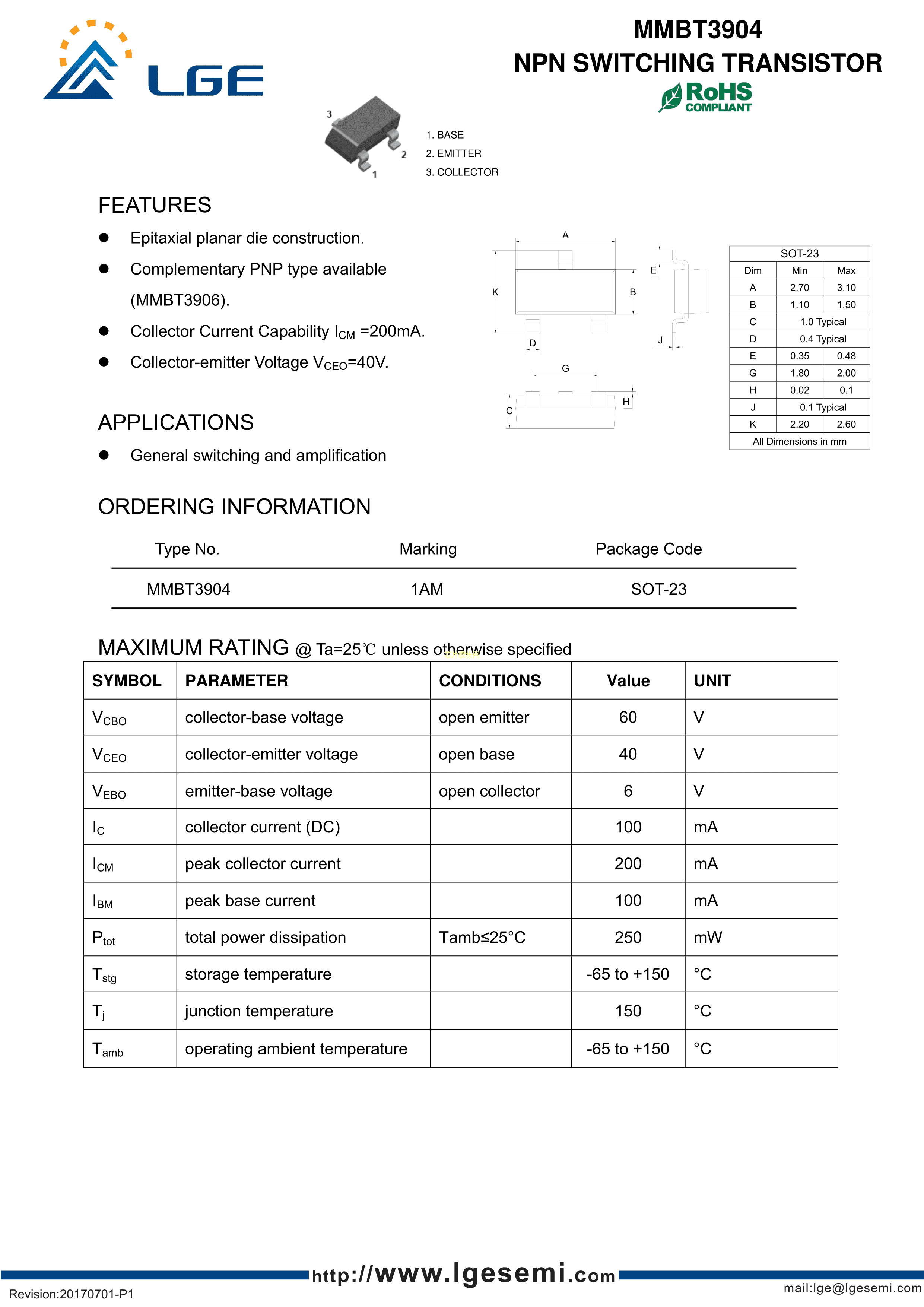 MMBT39041AM数据手册SOT-23封装LGE(鲁光)PDF规格书,中英文下载