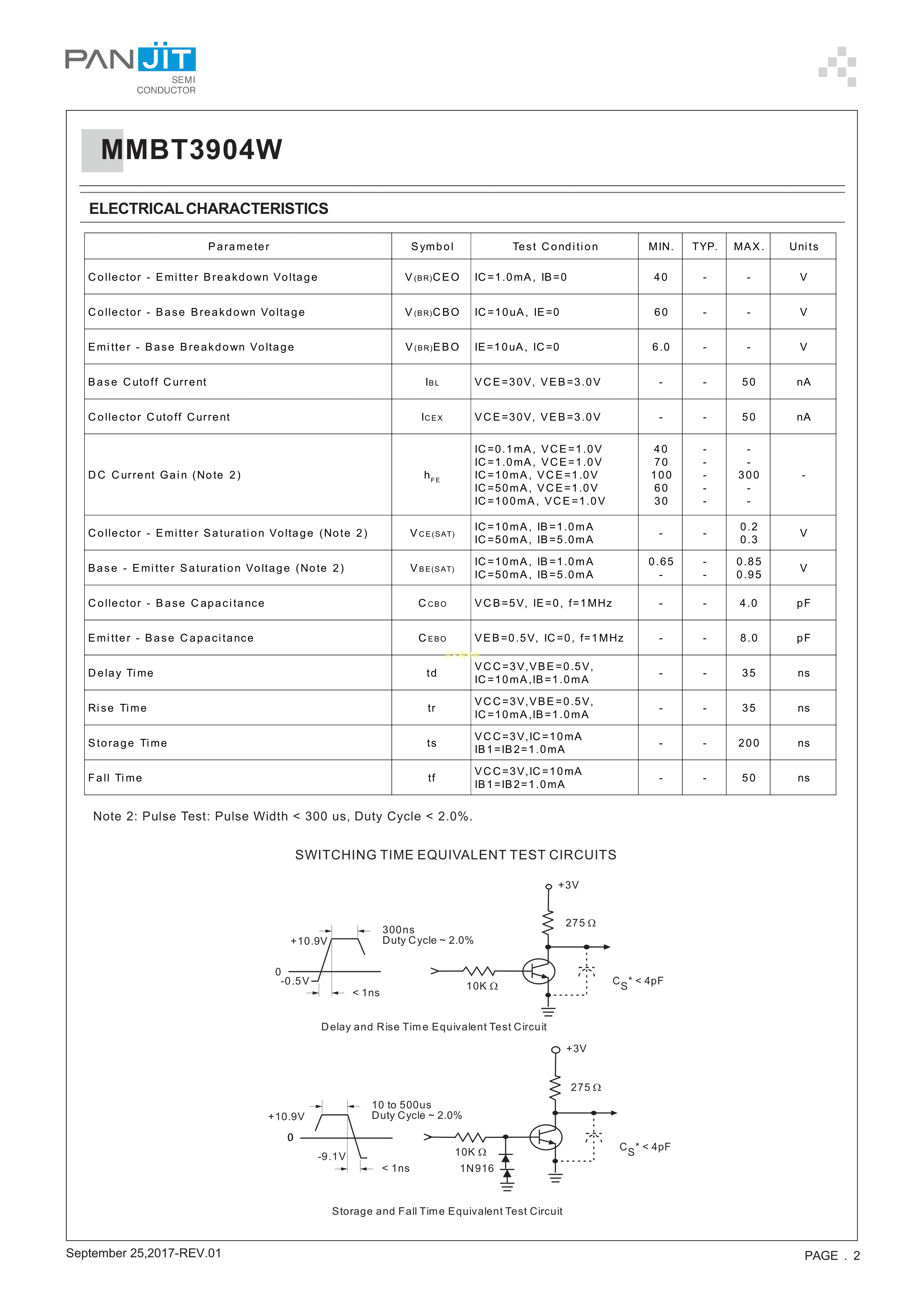 MMBT3904W_R1_00001数据手册SOT-323封装PANJIT(强茂)PDF规格书,中英