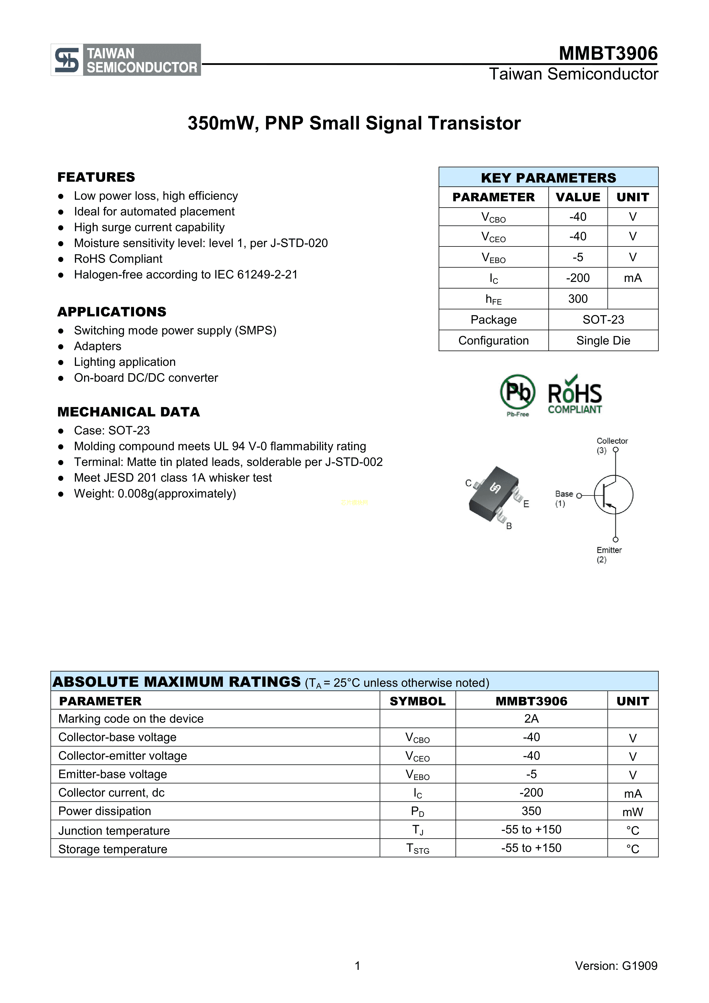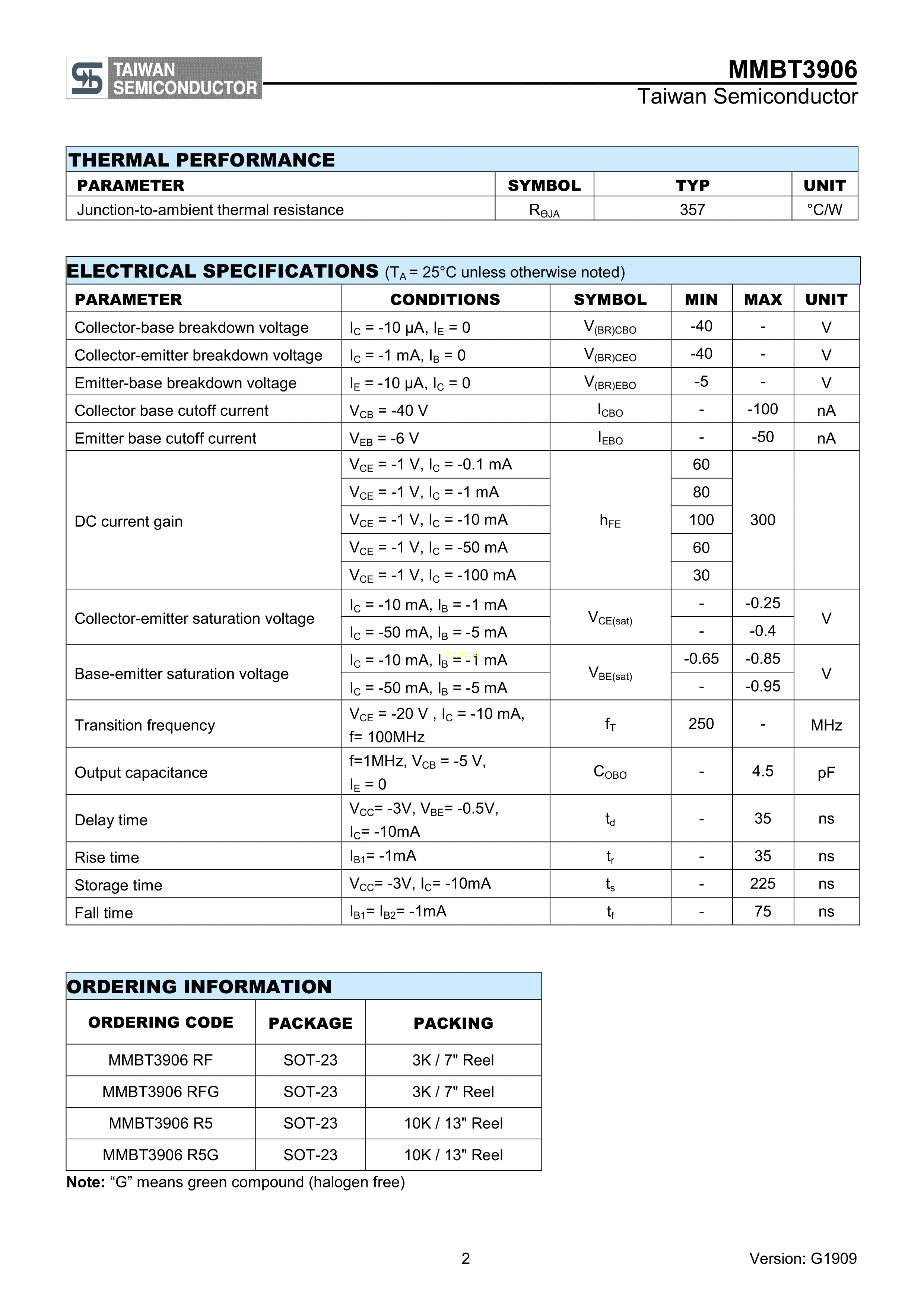 MMBT3906RFG数据手册SOT-23封装TaiwanSemiconductor(台湾半导体)P