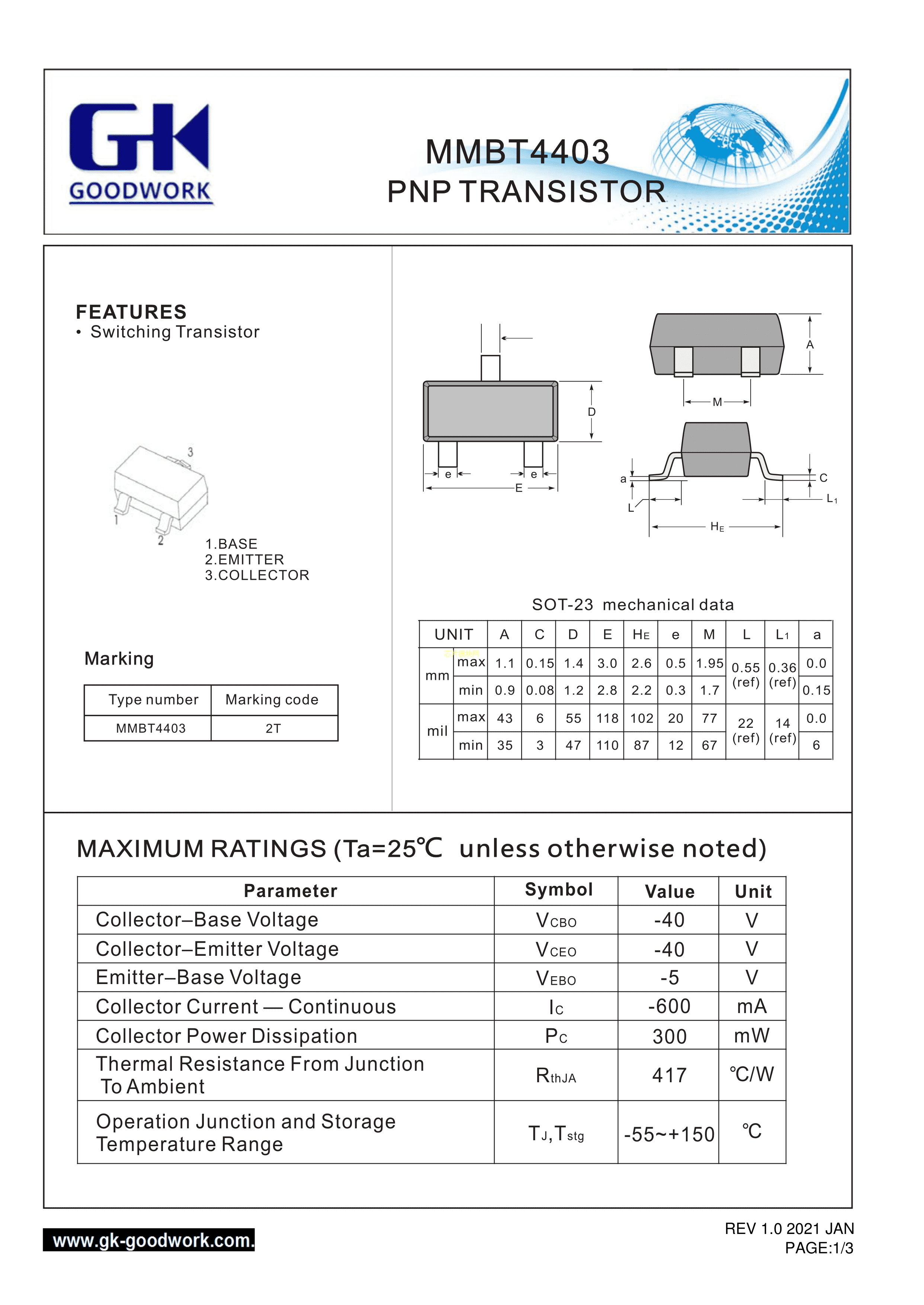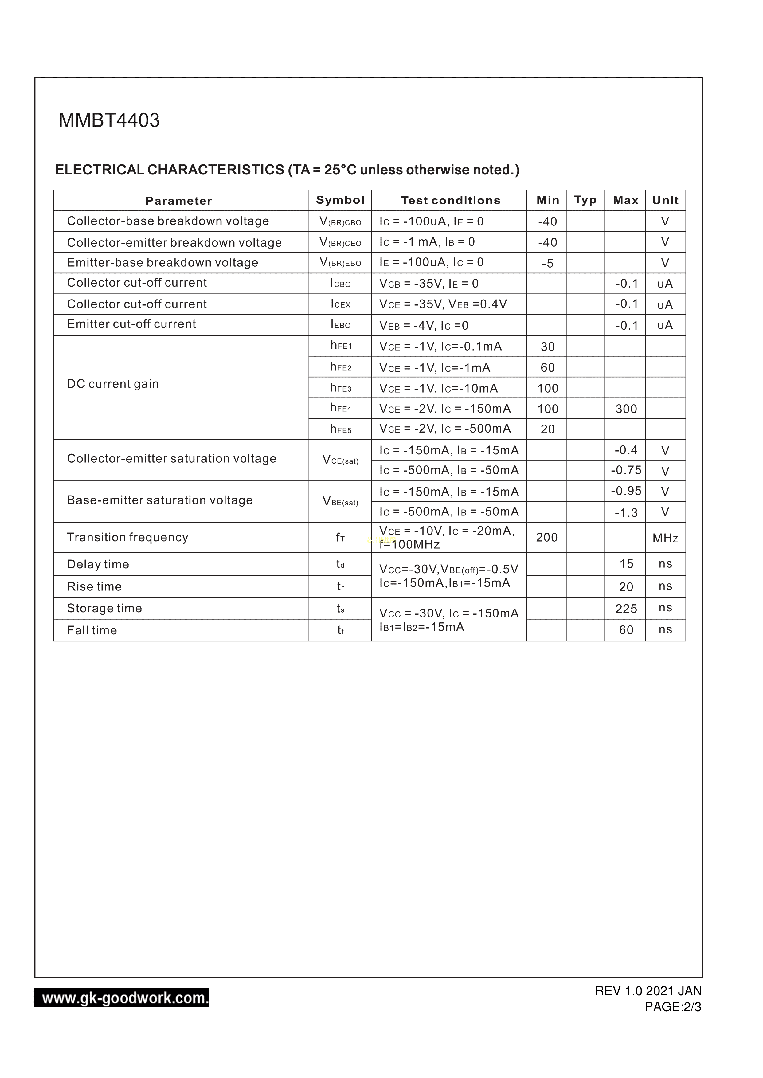 MMBT4403数据手册SOT-23封装GOODWORK(固得沃克)PDF规格书,中英文下载