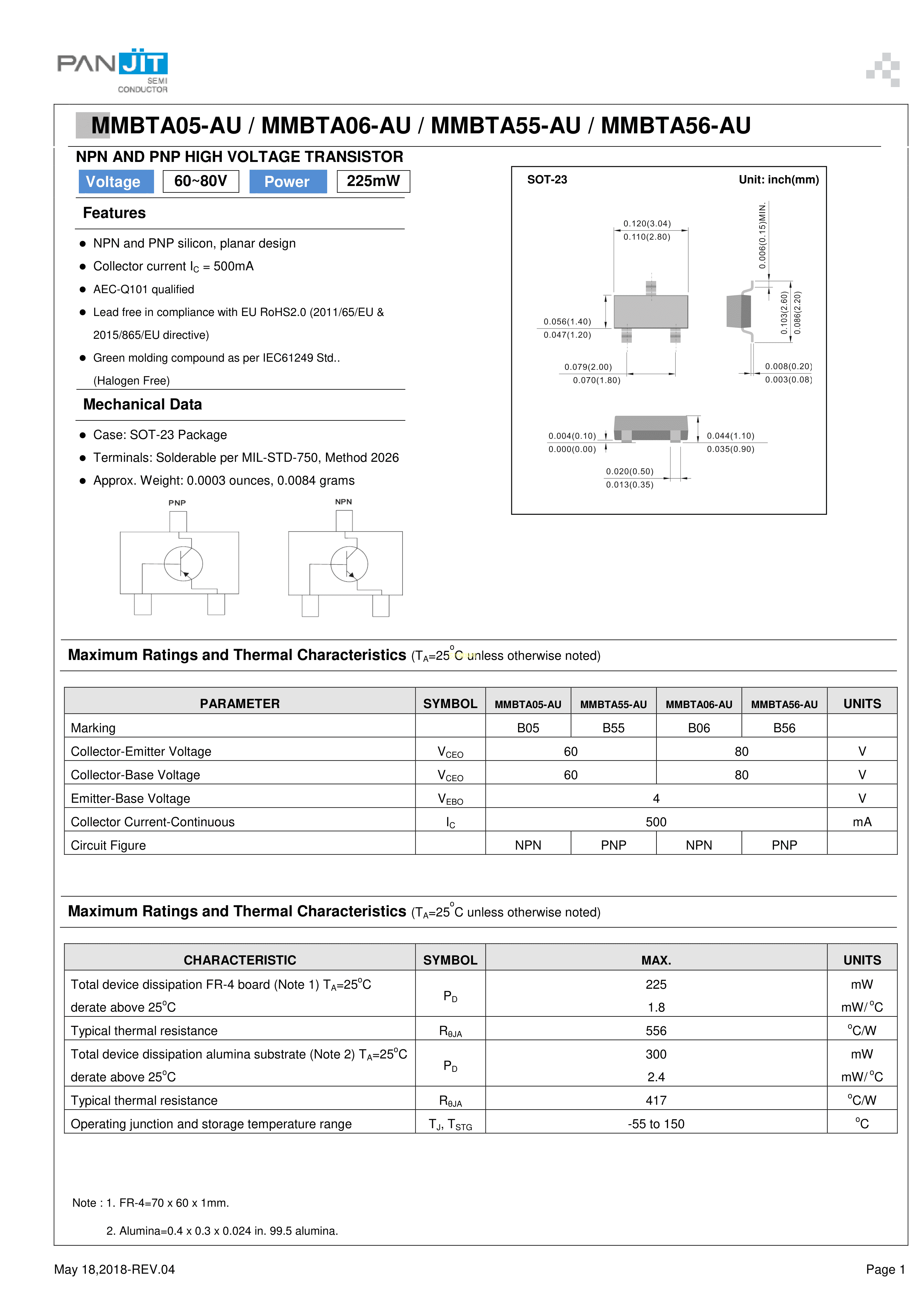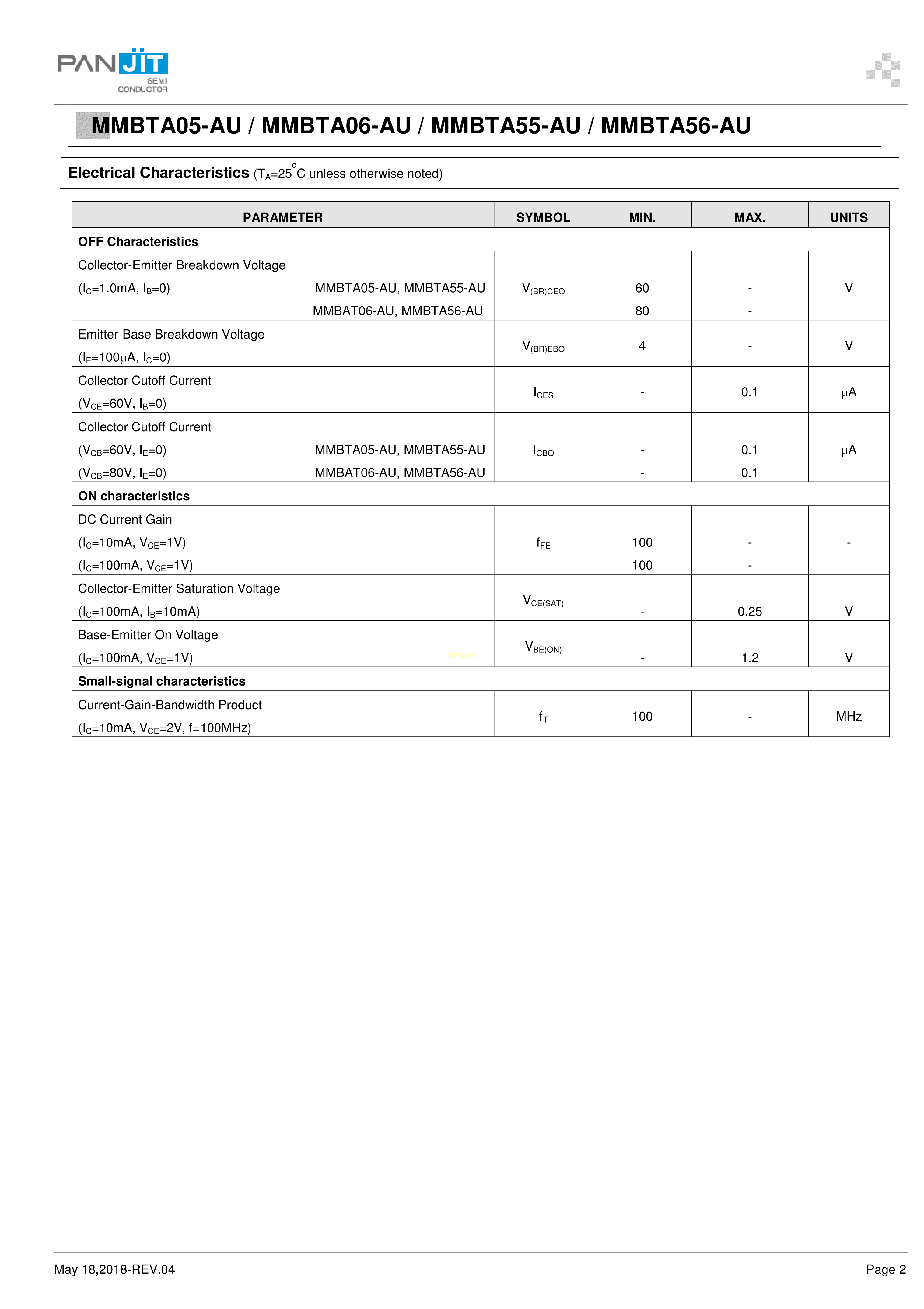 MMBTA05-AU_R1_000A1数据手册SOT-23(SOT-23-3)封装PANJIT(强茂