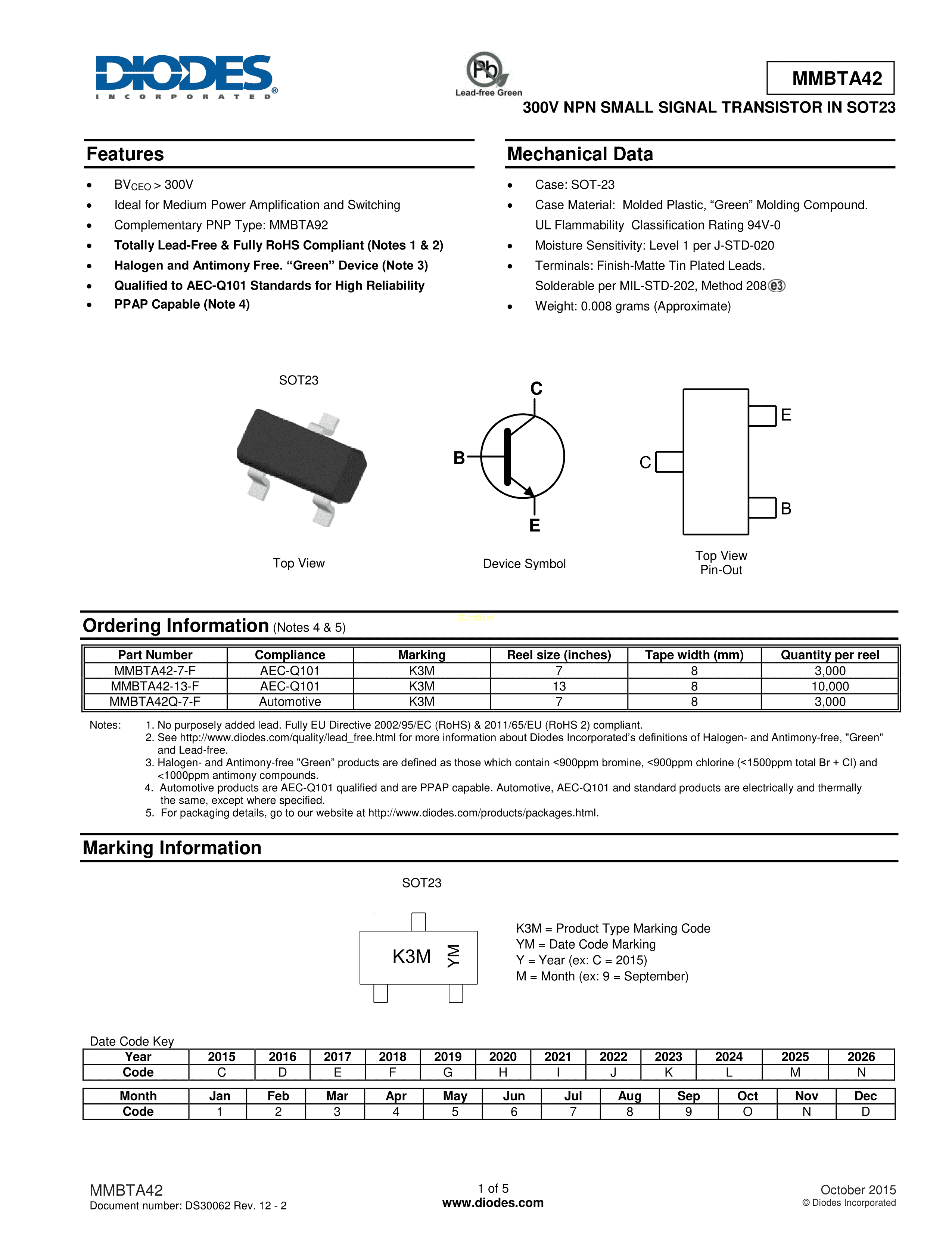 MMBTA42Q-7-F数据手册SOT-23封装DIODES(美台)PDF规格书,中英文下载